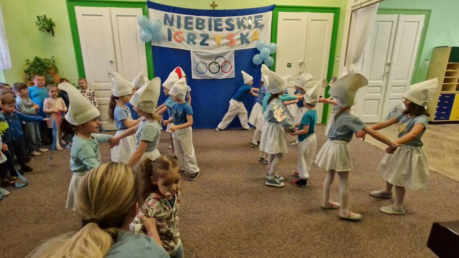 Z okazji Światowego Dna Świadomości Autyzmu w naszym przedszkolu odbyły się Niebieskie Igrzyska 2024 - ogólnopolskie wydarzenie organizowane przez Instytut Wspomagania Rozwoju Dziecka w Gdańsku. Wydarzenie składało się z dwóch części: części edukacyjnej - prezentacji multimedialnych, filmów edukacyjnych o autyzmie, warsztatów "Jesteśmy różni i pomagamy sobie"   oraz z części sportowej ? zabaw i konkurencji sportowych. Niebieskie Igrzyska mają pokazać, że każdy może być sportowcem i każdy ma szansę osiągnąć sukces.