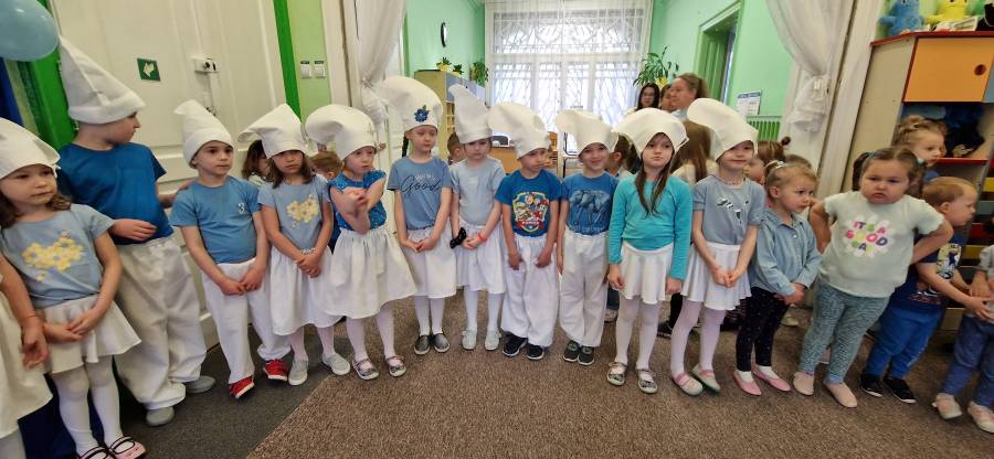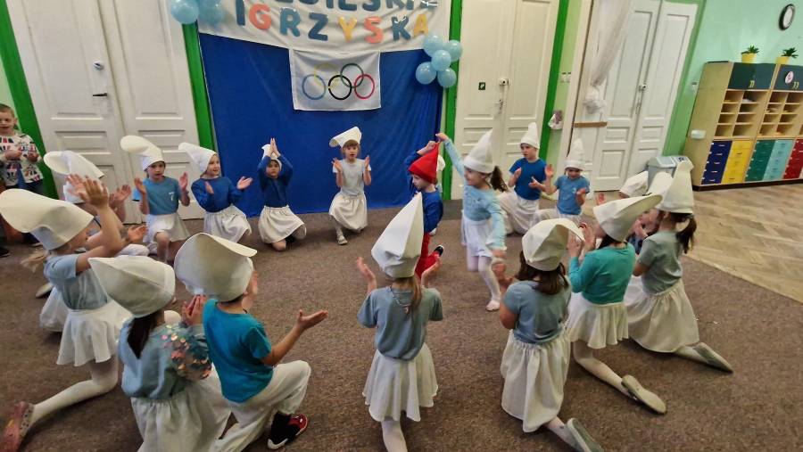 Pragnąc uczcić ten dzień 22 kwietnia w przedszkolu królował kolor niebieski, zarówno wśród naszych ubrań, jak również sale były przystrojone na niebiesko. Igrzyska rozpoczęły się od hymnu, wprowadzenia znicza olimpijskiego i zawieszenia flagi olimpijskiej. I jak na prawdziwe igrzyska przystało podczas ceremonii otwarcia była też część artystyczna ? taniec najstarszych przedszkolaków "Smerfów świat". Po oficjalnym otwarciu zorganizowaliśmy dla dzieci strefy z różnymi zadaniami do wykonania: sportową, kreatywności, fotobudkę, relaksu. Każde dziecko na koniec otrzymało niebieski medal.