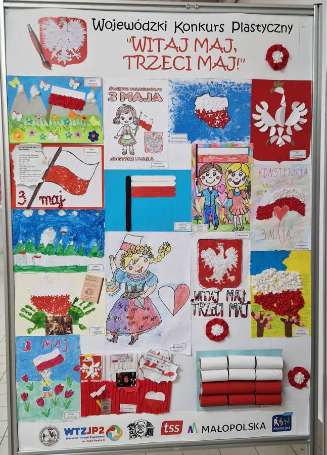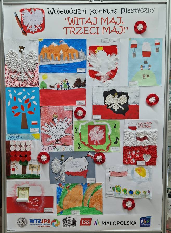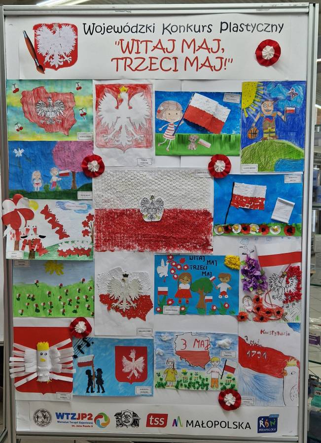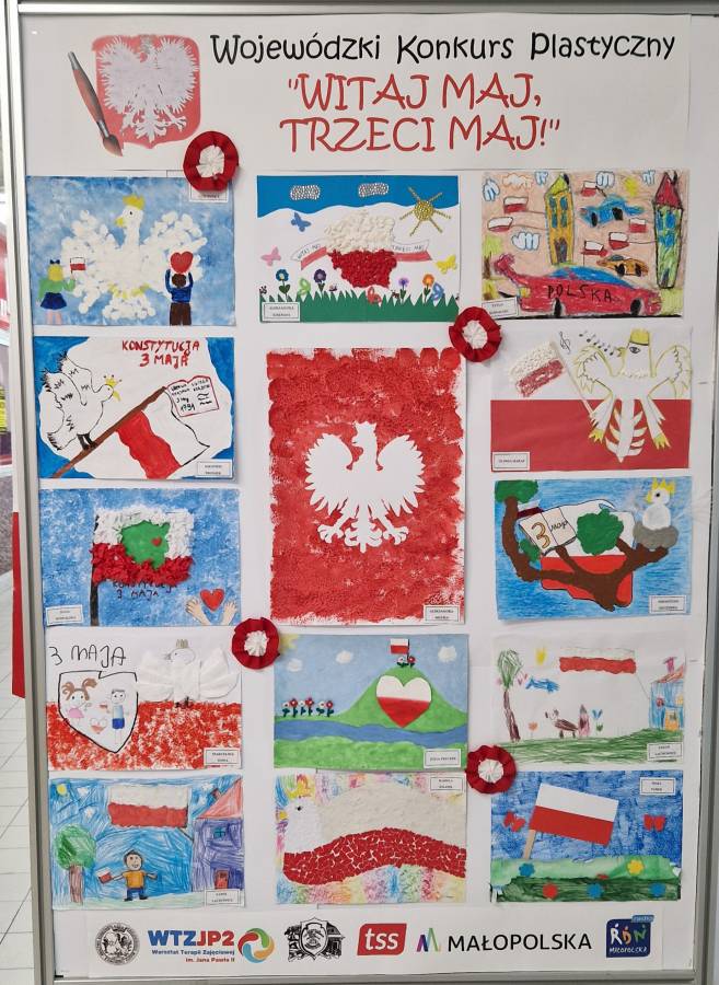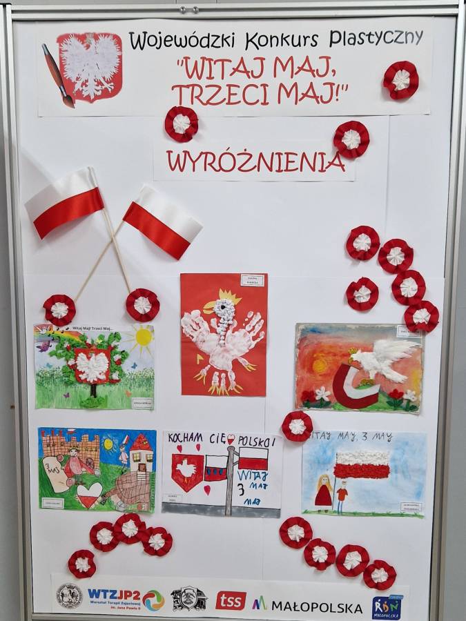 19.04.2024 odbył się Konkurs Plastyczny dla dzieci w wieku przedszkolnym " Witaj Maj Trzeci Maj" organizowany przez Bractwo Kurkowe w Ciężkowicach, Warsztaty Terapii Zajęciowej im. Jana Pawła II w Tarnowie, Społem Tarnowska Spółdzielnia Spożywców pod patronatem medialnym RDN Małopolska. Celem konkursu było wspieranie wychowania patriotycznego dzieci oraz kształtowanie dumy narodowej poprzez rozbudzanie zainteresowania historią Polski ze szczególnym uwzględnieniem polskich symboli narodowych -flagi godła hymnu. W konkursie wzięło udział prawie 200 dzieci. Nasze przedszkole reprezentowali Krystian R, Emil S, Pola P, Jakub R, Emilia R Komisja konkursowa przyznała sześć wyróżnień, w tym dla Emila S. Wszystkim uczestnikom serdecznie gratulujemy.