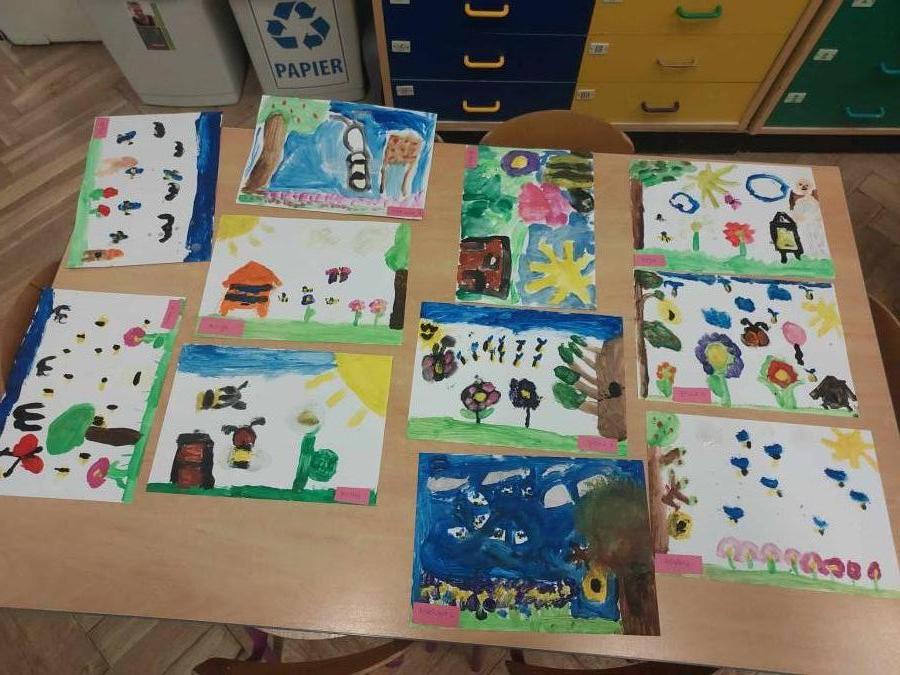 Światowy Dzień Pszczoły - 20.05.2024 Realizując zadania ogólnopolskiego programu edukacyjnego " Skąd się biorą produkty ekologiczne" z tej okazji w naszym przedszkolu przeprowadzone zostały działania, których celem było budzenie świadomości u dzieci o pożyteczności pszczół. Podczas zajęć przedszkolaki utrwaliły wiedzę dotyczącą ważnej roli życia pszczół dla ludzi, etapów narodzin pszczoły, pracy pszczelarza i narzędzi potrzebnych do jego pracy. Przedszkolaki oglądnęły filmiki edukacyjne, oraz wykonały pracę plastyczne.
