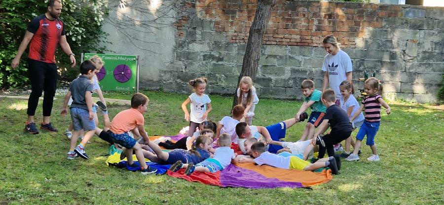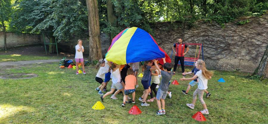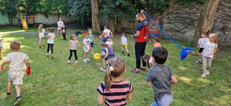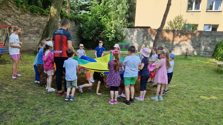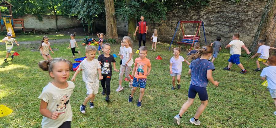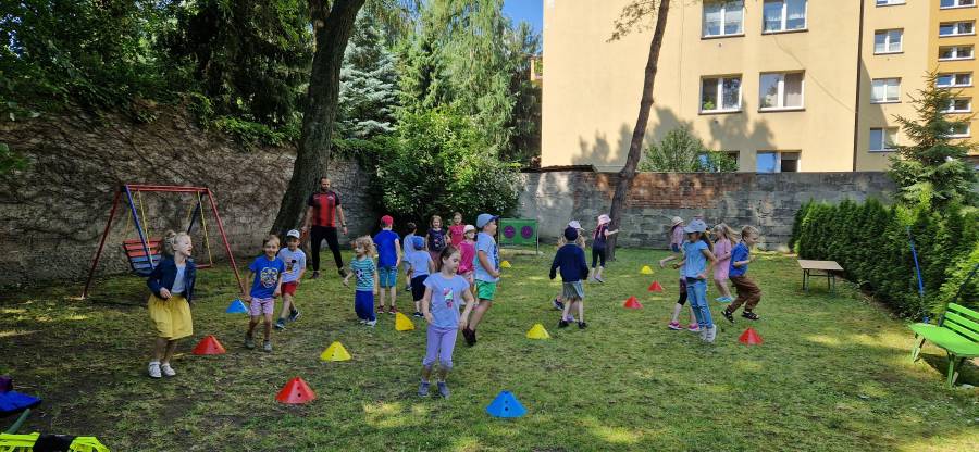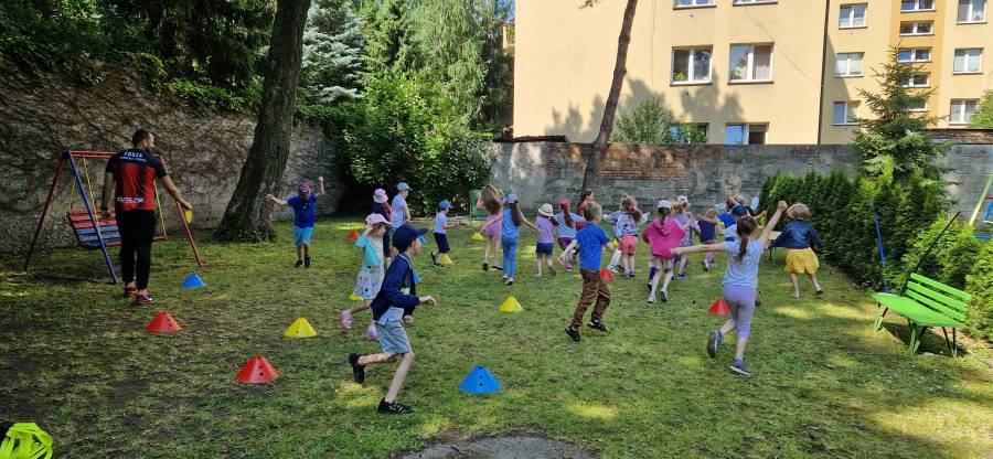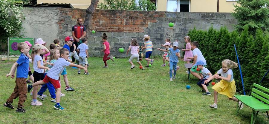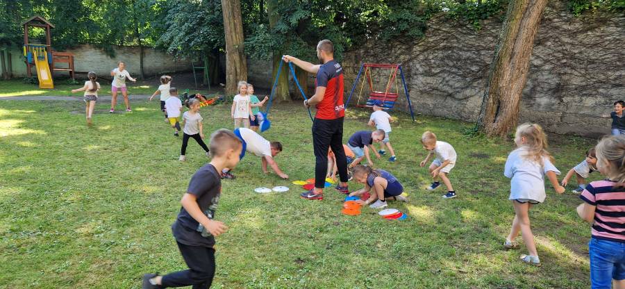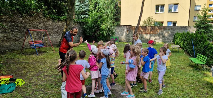 6.06.2024 Na dzisiejszych zajęciach gimnastyki korekcyjnej gościliśmy trenera Daniela z Akademii Piłkarskiej ?Forza?. Pan Daniel przeprowadził trening z dziećmi z oddziału II i III, było bardzo dużo zabaw i aktywności fizycznej. To już nasz kolejny wspólny trening, bardzo dziękujemy