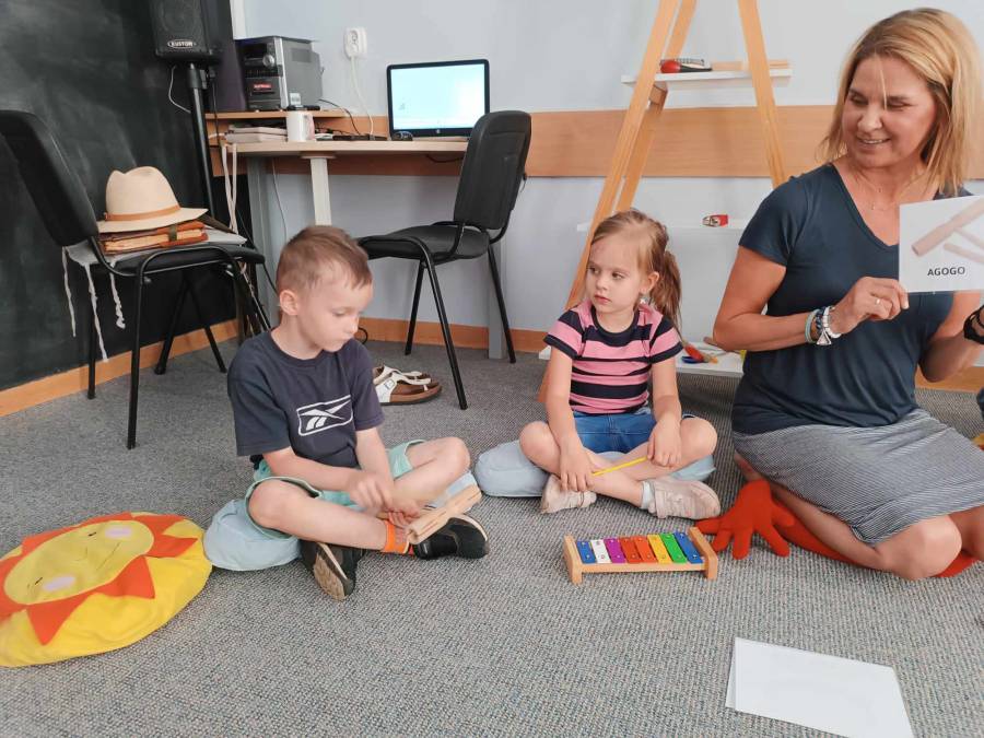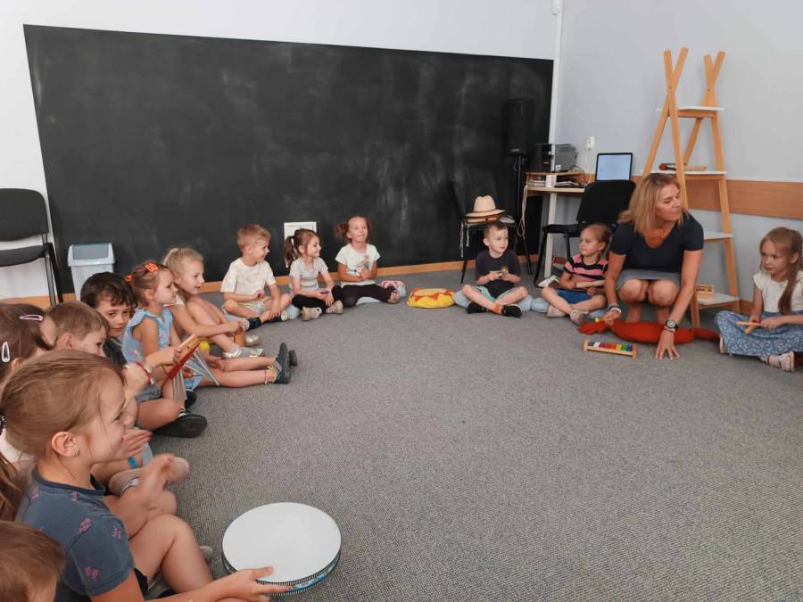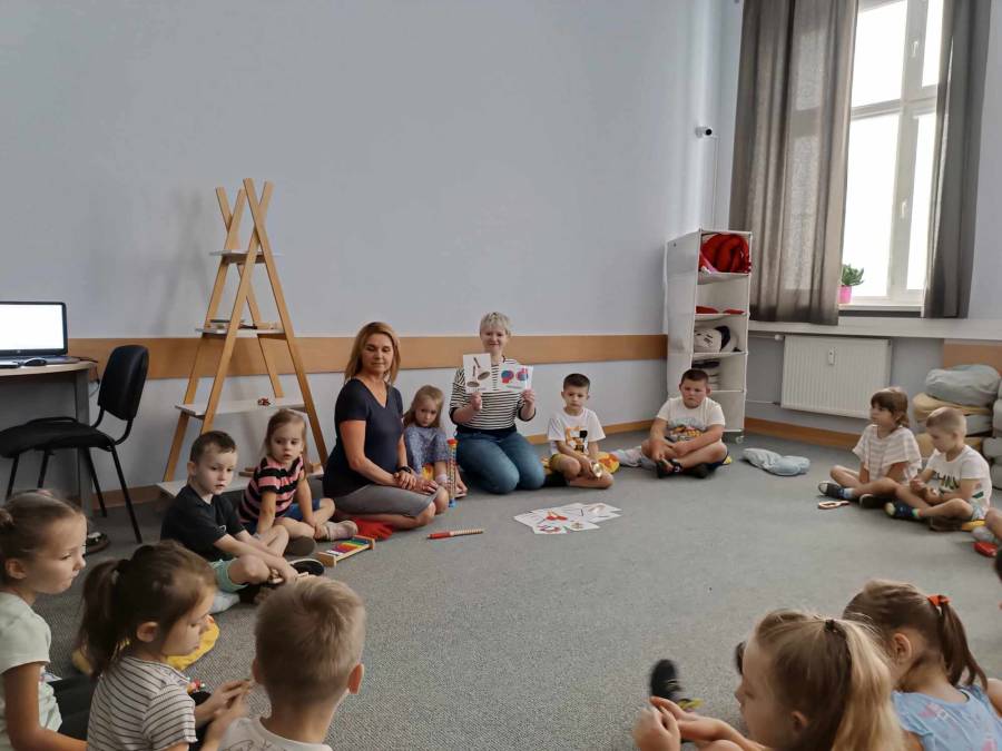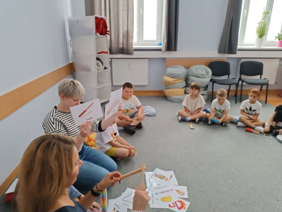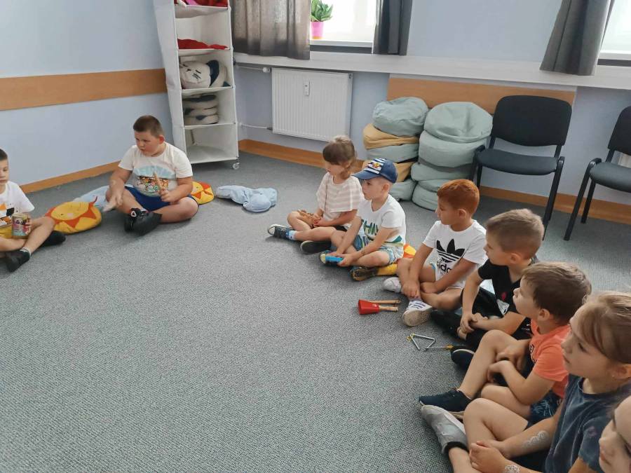 Dnia 6.06.2024r .dzieci z oddziału ll udały się do Biblioteki Pedagogicznej na kolejne zajęcia pt.,,Muzyczne warsztaty terapeutyczne - z dźwiękiem wśród książek ".