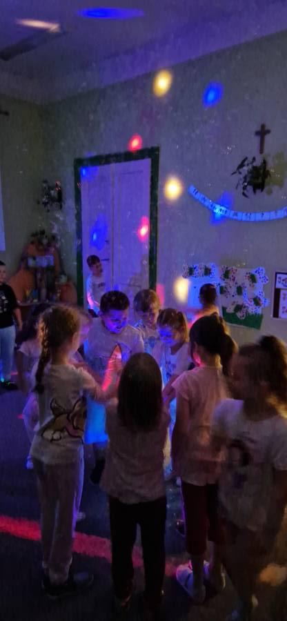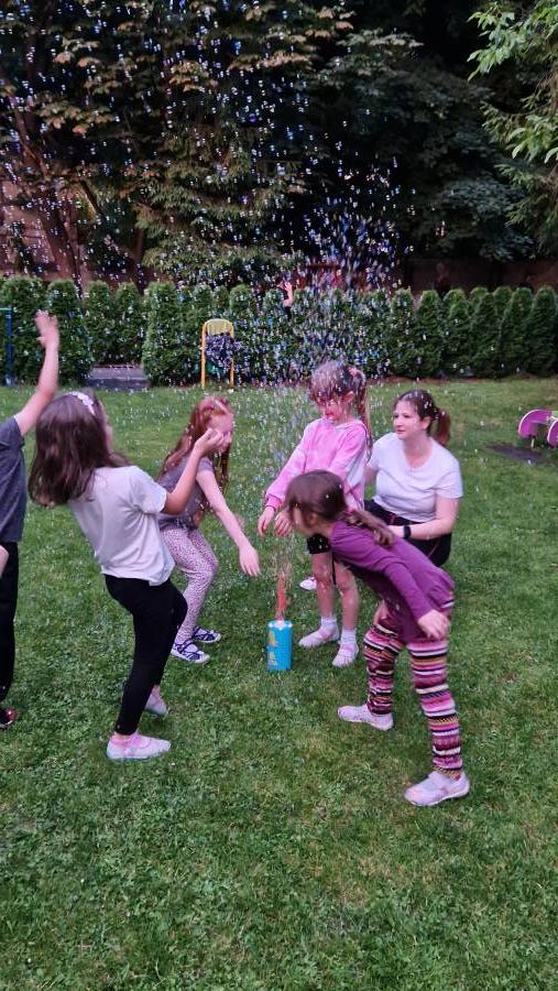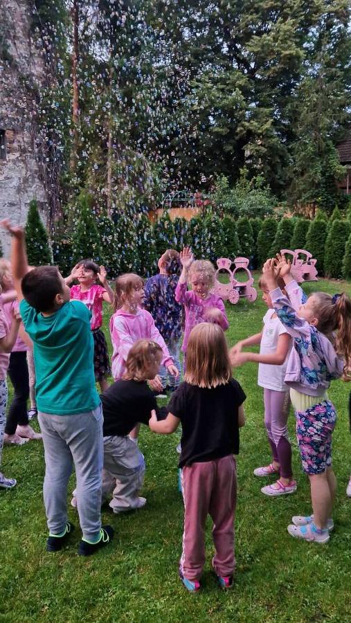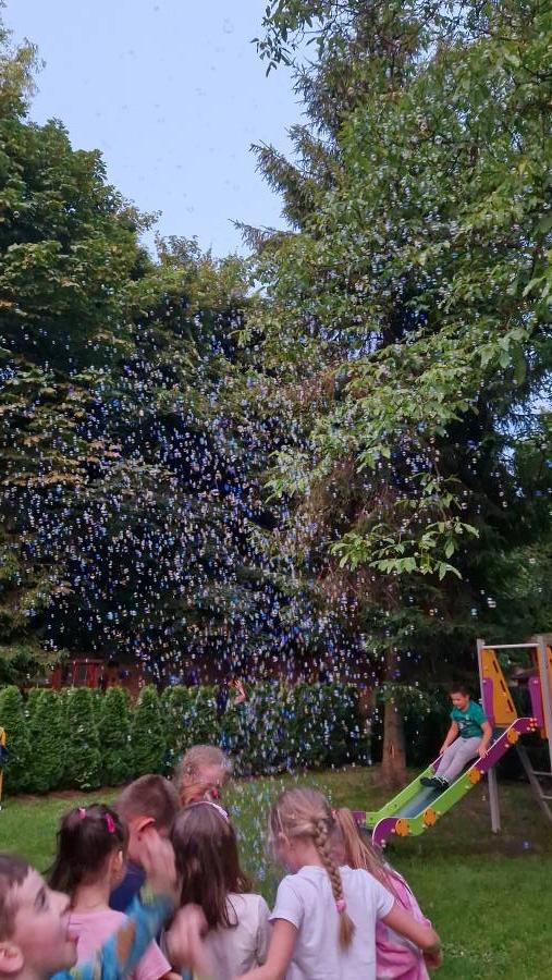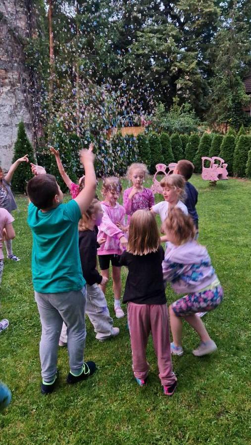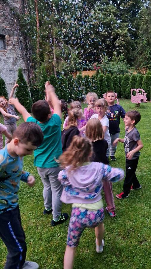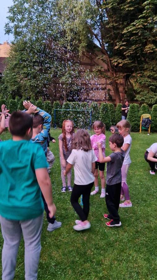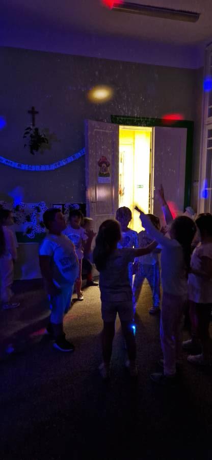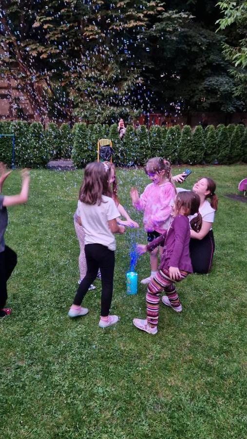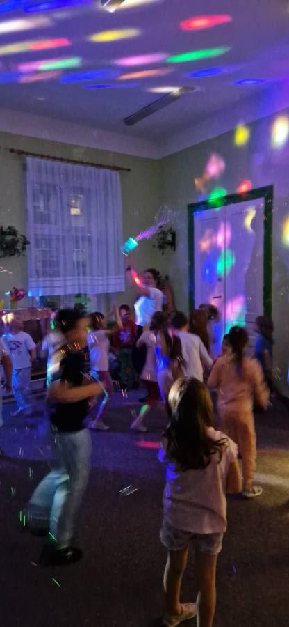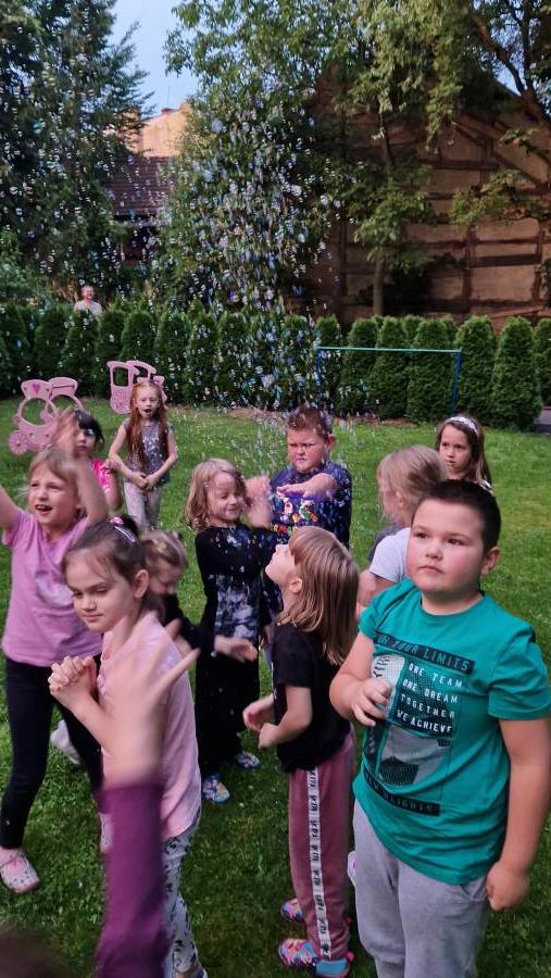 Ostatnie dni w przedszkolu, najstarszej grupy wiekowej, to niezwykły czas. Dla naszych najstarszych przedszkolaków została zorganizowana tzw. nocka w przedszkolu. Dla niektórych była to pierwsza noc bez mamy, taty i bliskich, ale za to z kolegami, koleżankami i paniami z grupy przedszkolnej. Cała przygoda rozpoczęła się o godzinie 18.00 i trwała do 9.00 rano następnego dnia, dzieci miały stroje sportowe w tym dniu i przyszły zaopatrzone w śpiwory, poduszeczki, piżamy i przytulanki. Była zumba w ogrodzie, kiełbaski z grilla, gry i zabawy, pokaz baniek mydlanych, dyskoteka w piżamkach, wykonanie pracy plastycznej ?gwieździste niebo? oraz seans w przedszkolnym kinie. Oj działo się działo J. Na koniec wszyscy zasnęliśmy bez problemu. To była super nocka.