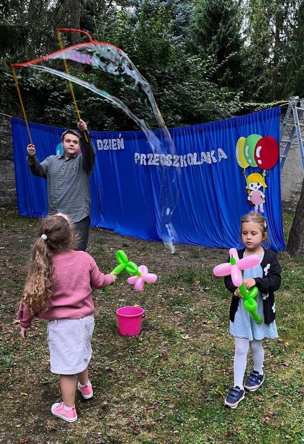 W naszym przedszkolu uroczyście obchodziliśmy Dzień Przedszkolaka. Występy dzieci, zabawy sportowe, malowanie twarzy, skręcanie balonów, strefa artystyczna( malowanie na streczu, balonami, breloczki decoupage) uświetniły naszą wspólną zabawę integrującą naszą przedszkolną społeczność. Zrelaksować się mogliśmy w naszej kawiarence przy pysznym ciasteczku, kawie, herbacie czy lemoniadzie. Jeszcze tylko pamiątkowe zdjęcie całej rodzinki przy fotobudce i mamy przepis na miło spędzony czas w naszym przedszkolu.I mimo , że pogoda kaprysiła to nie popsuła naszej zabawy.