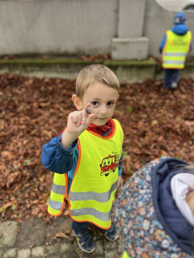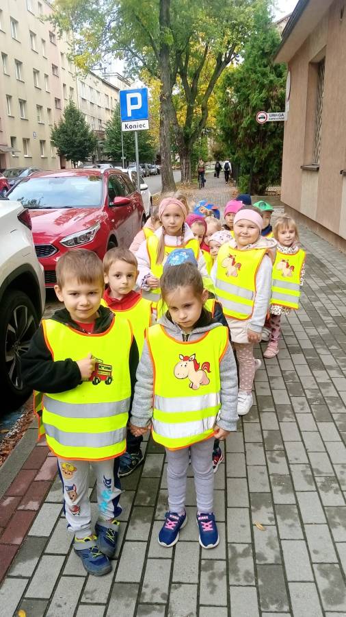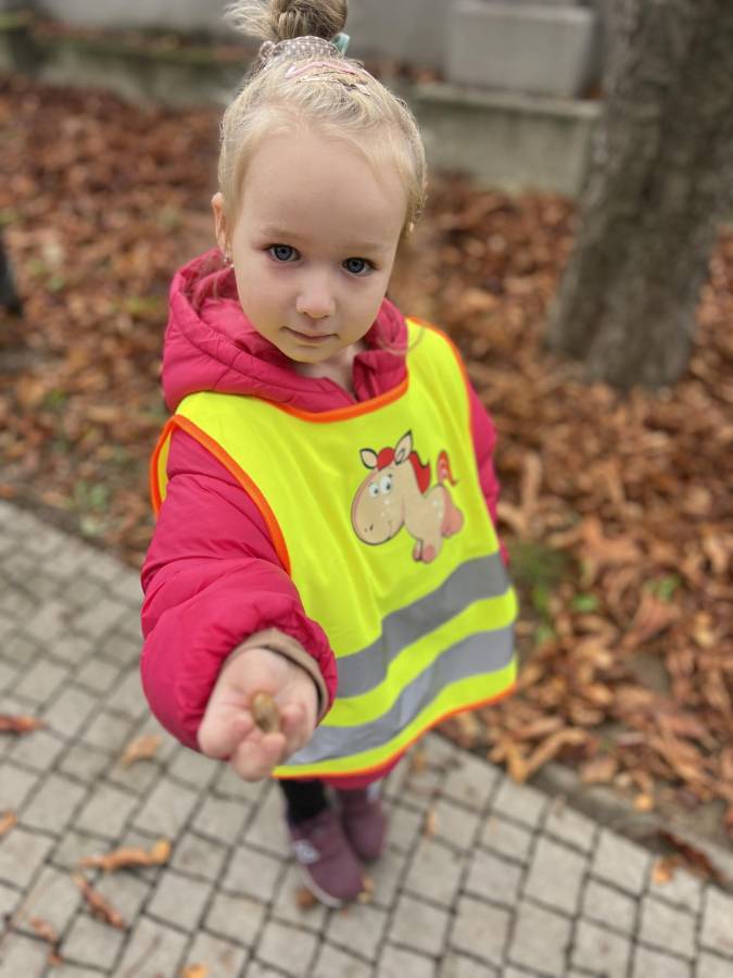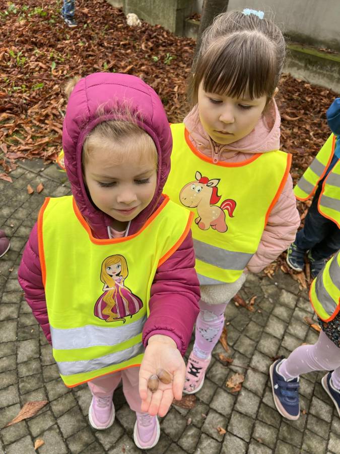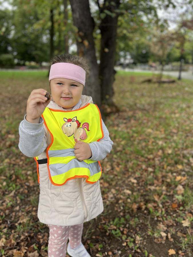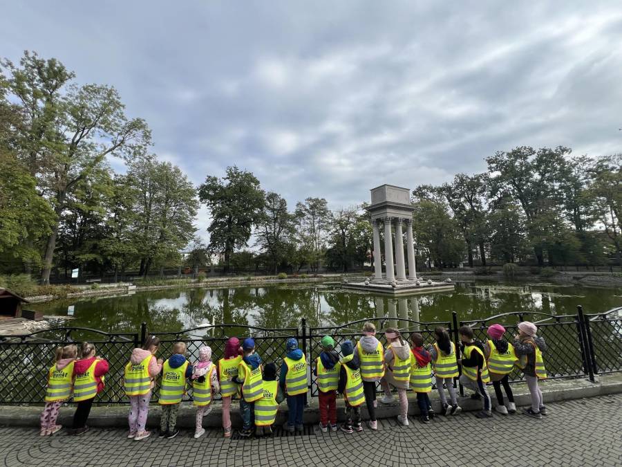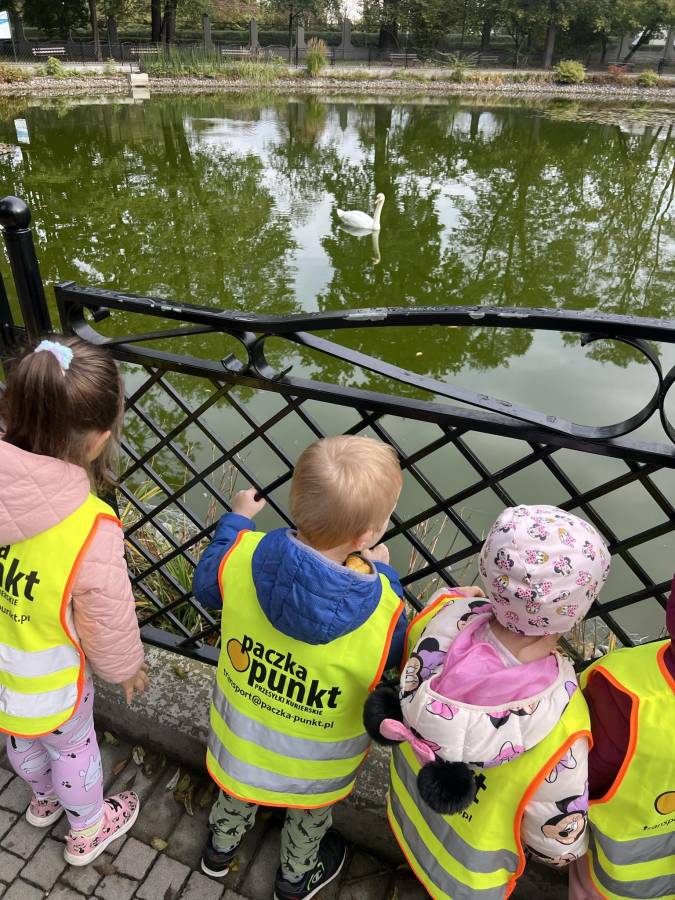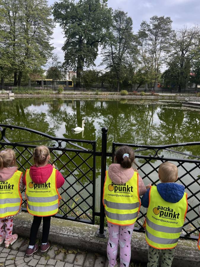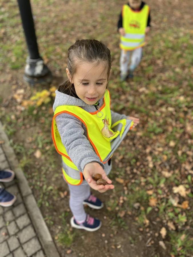 Realizując zadania z programu własnego " Przedszkolak mały patriota i obywatel" dzieci z oddziału II udały się na wycieczkę do Parku Strzeleckiego. Park odkrył przed nami swe piękno. Podziwialiśmy jesienne barwy, rosnące krzewy i drzewa. Bacznie przyglądaliśmy się przyrodzie: korze drzew, liściom, rozmawialiśmy o zwierzętach i ptakach żyjących w parku. Spotkaliśmy nawet wiewiórkę, łabędzie , kaczki. Rozmawialiśmy na temat Mauzoleum gen. Józefa Bema. Najwięcej radości sprawiło dzieciom zbieranie żołędzi i kasztanów, którymi przyozdobiliśmy nasz kącik przyrody. Zadowoleni, z kieszeniami pełnymi żołędzi i kasztanów wróciliśmy do naszego przedszkola.