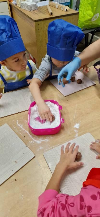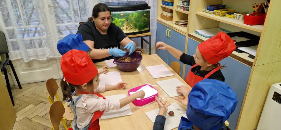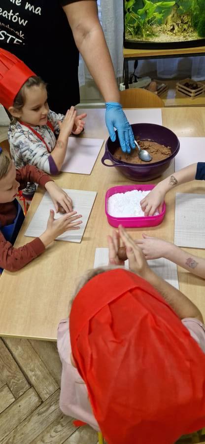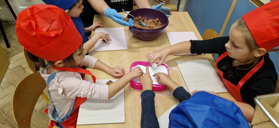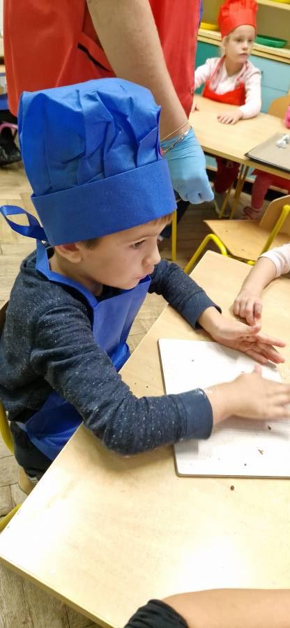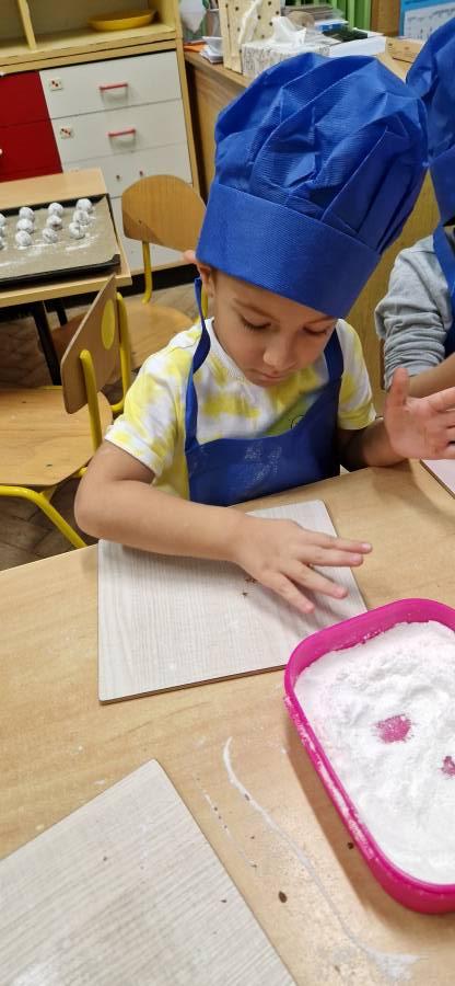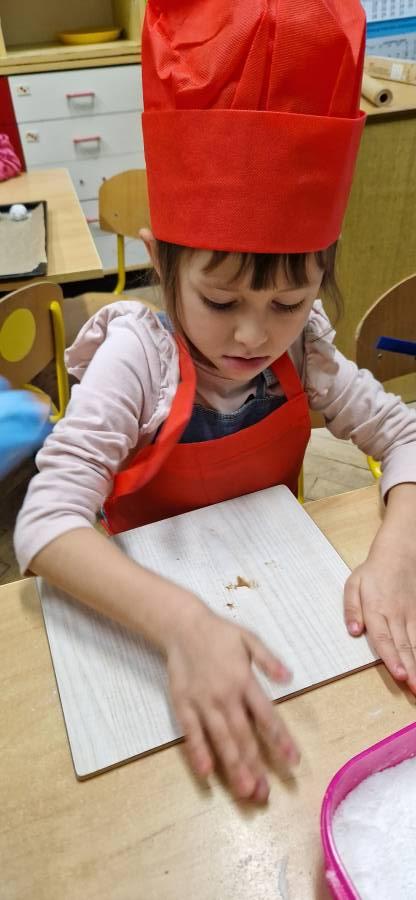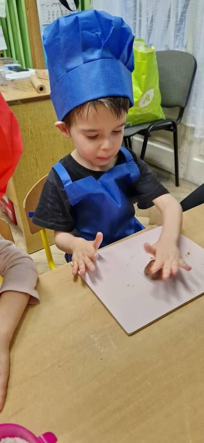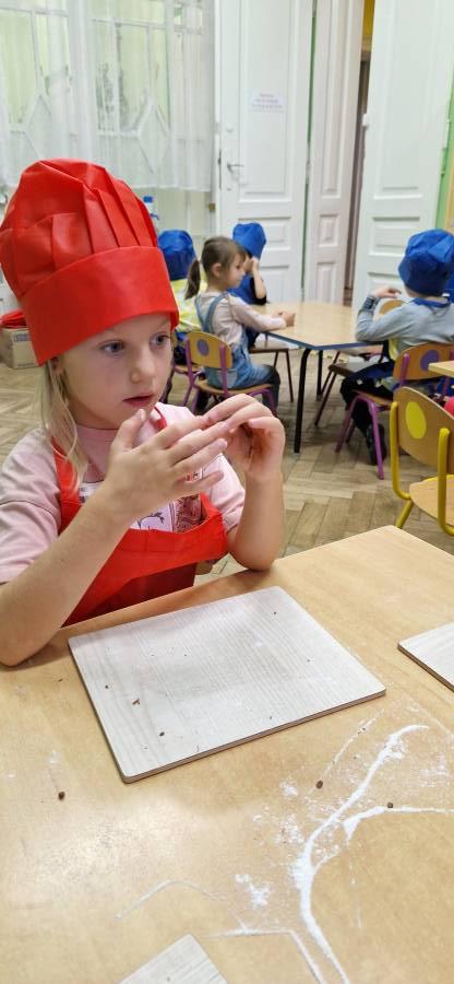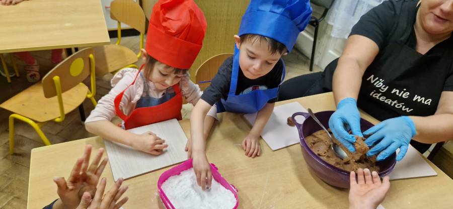 Ostatnie piątkowe przedpołudnie przedszkolaki spędziły niezwykle pracowicie. Z okazji zbliżającego się Święta Edukacji Narodowej grupa Starszaków przygotowywała ciasteczka dla wszystkich Pracowników przedszkola. Każdy przedszkolak miał szansę spróbować swoich sił kulinarnych, dzieci z radością pomagały w przygotowaniu ciasteczek. Wspólne pieczenie było przyjemną zabawą. Działania w ramach programu ,,Skąd się biorą produkty ekologiczne?"