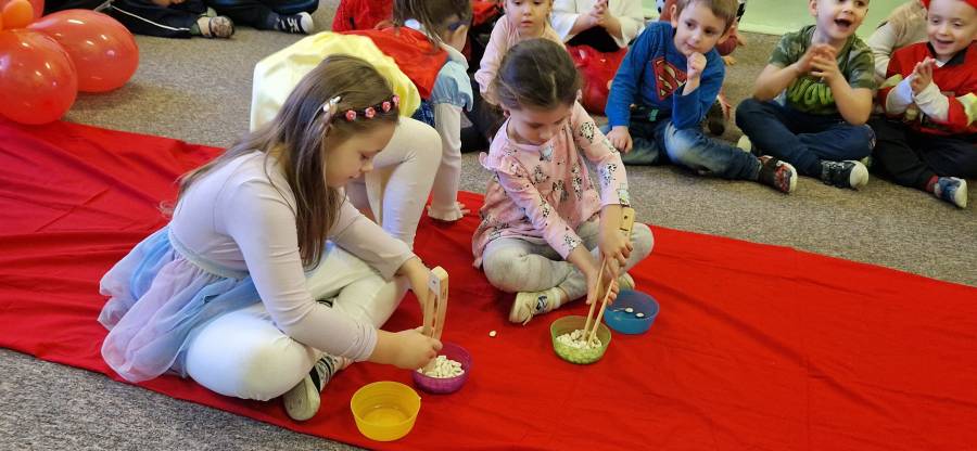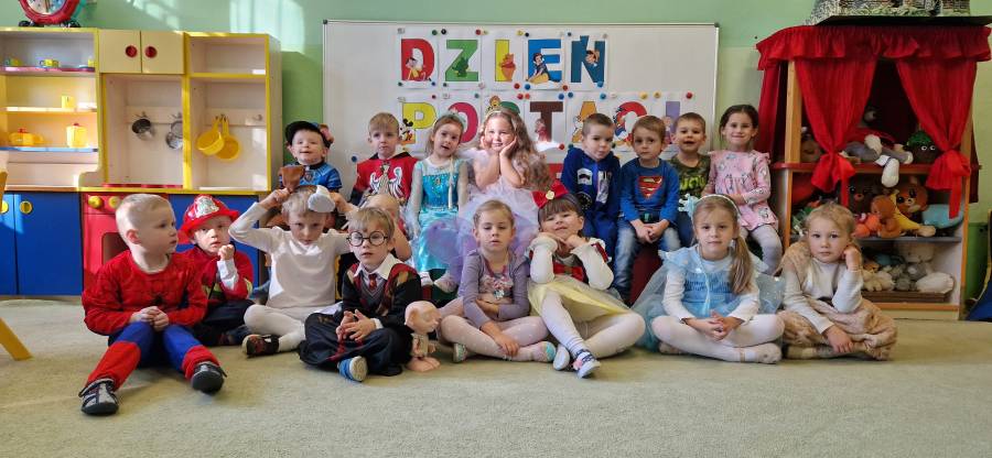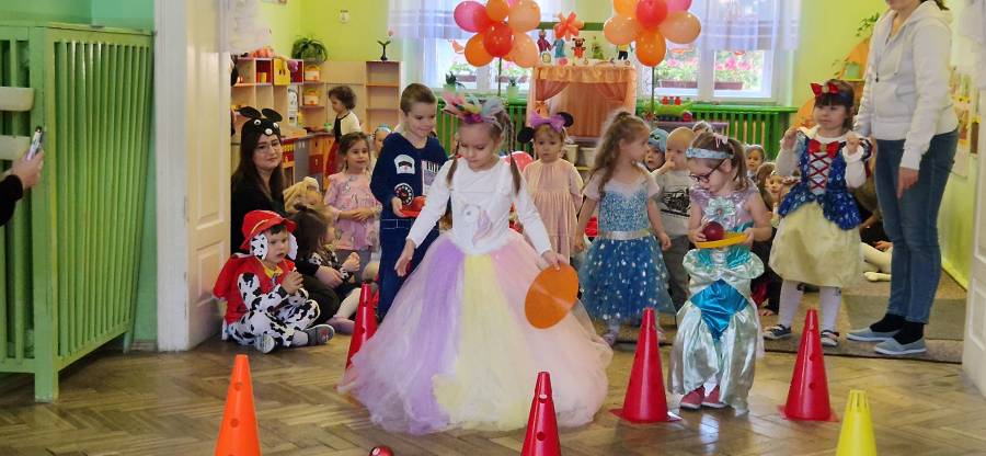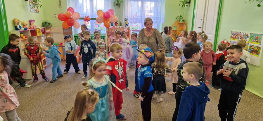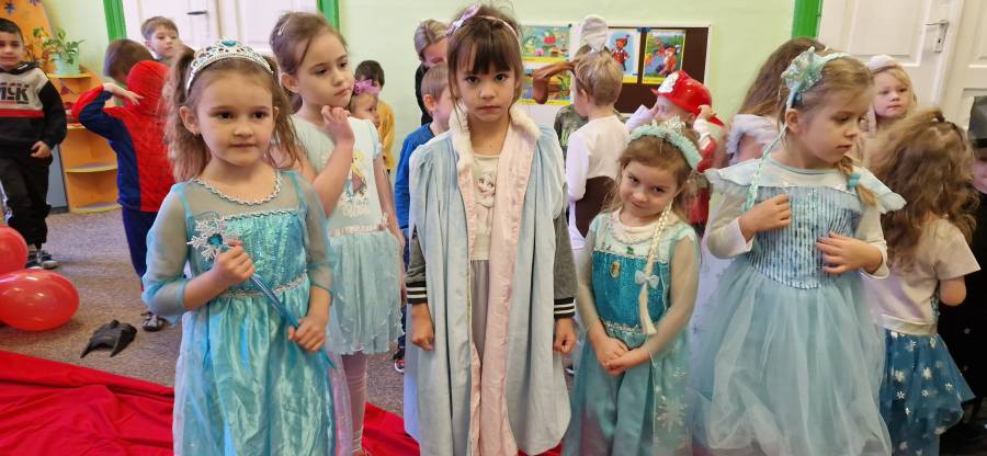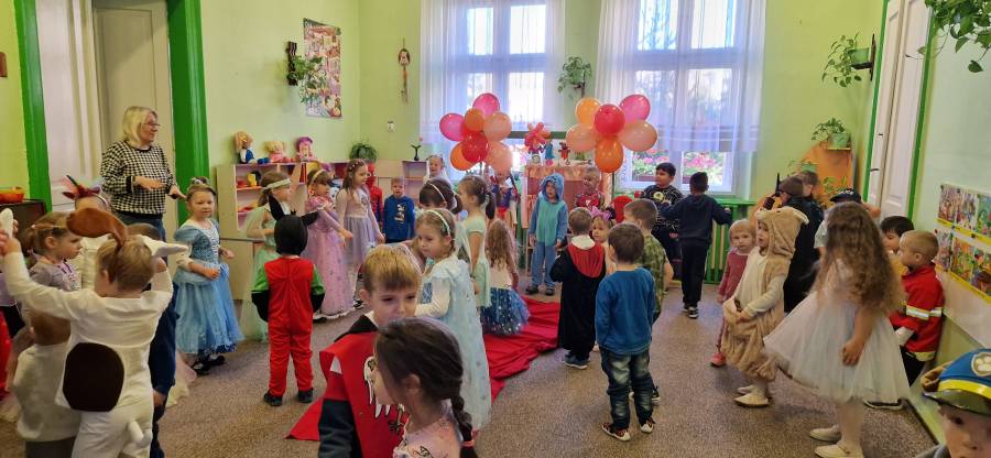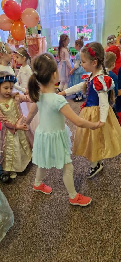5.11.2024 w przedszkolu na czerwonym dywanie pojawiły się ulubione postaci z bajek. Był to dzień kolorowy i wesoły. Dzień ten przypomniał jak ważne w życiu dziecka są bajki. Czytane codziennie przez rodziców, nauczycieli dostarczają wiele korzyści w rozwoju dziecka. Na naszej scenie odbył się bal. Zagadki , tańce , zabawy ruchowe i muzyczne wywołały uśmiech na wielu dziecięcych twarzach.