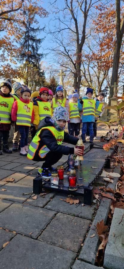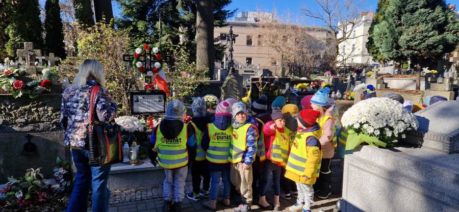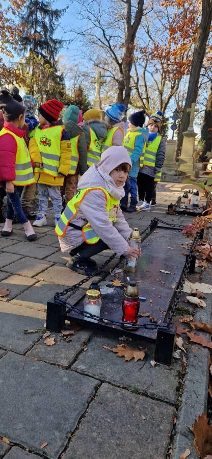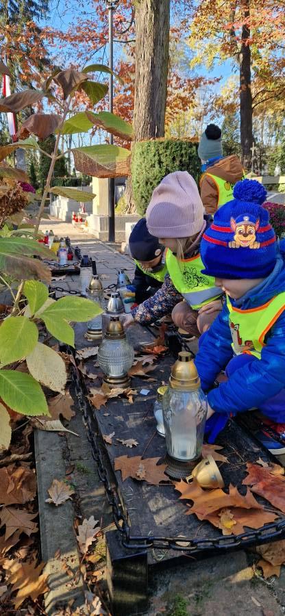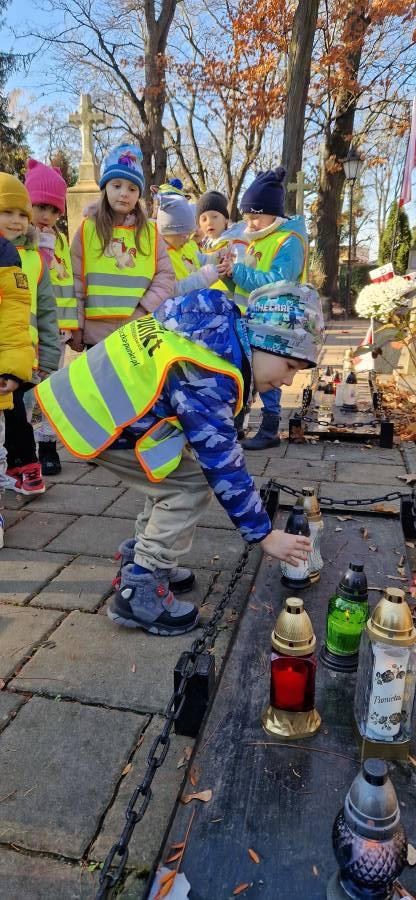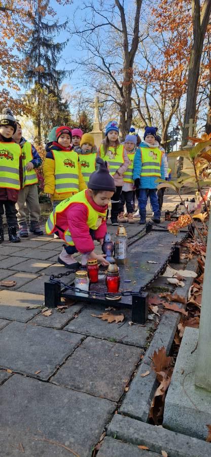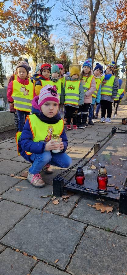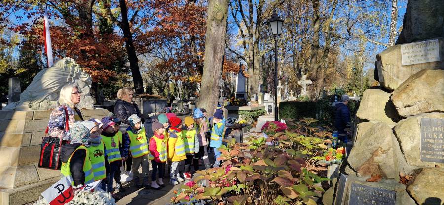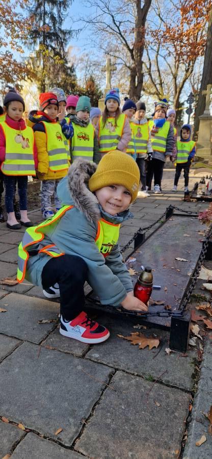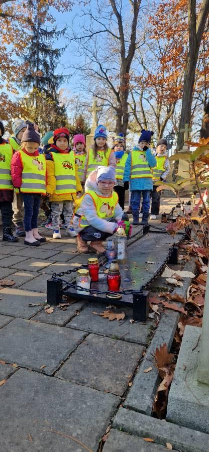 Dnia 6 .11 dzieci z oddziału ll i lll wybrały się na Stary Cmentarz. Głównym celem wycieczki było uczczenie pamięci żołnierzy poległych w walkach o niepodległość Polski. Na miejscu dzieci mogły zapalić przyniesione znicze. Dla naszych przedszkolaków była to ważna lekcja wychowania rodzinnego, obywatelskiego i patriotycznego.