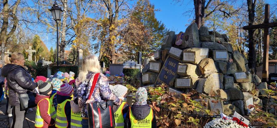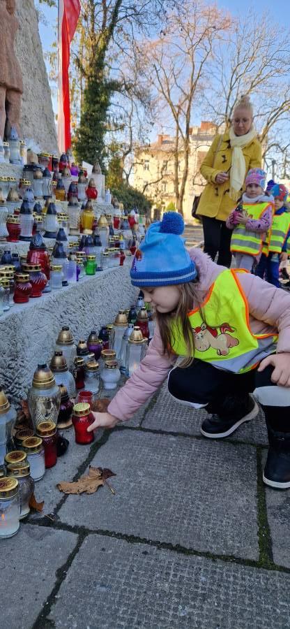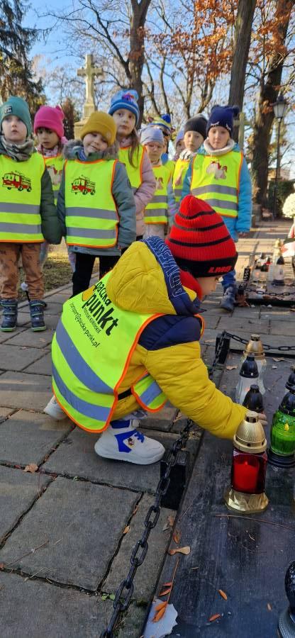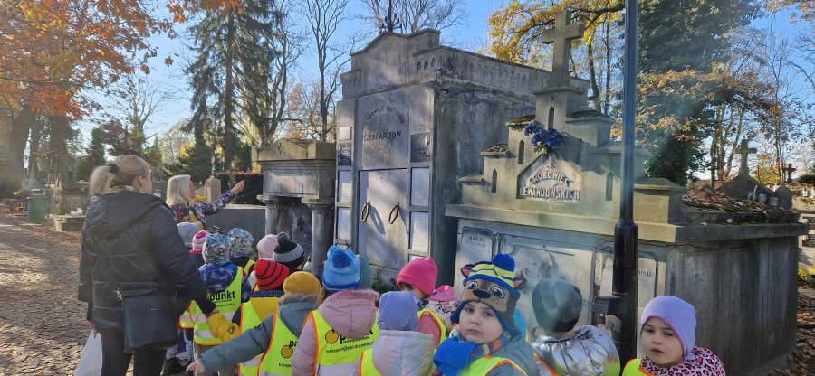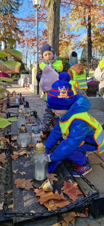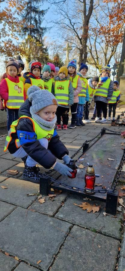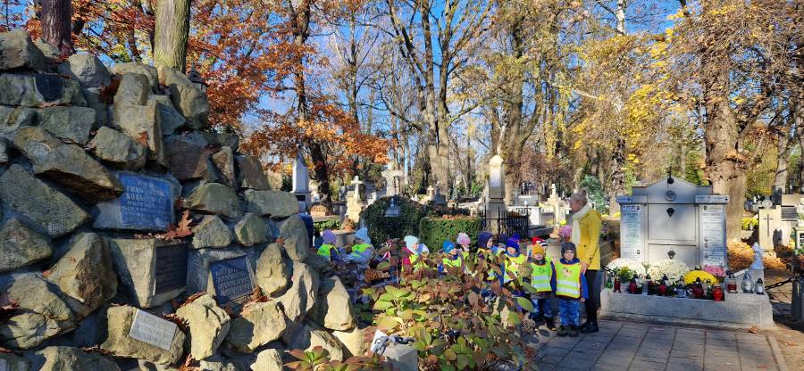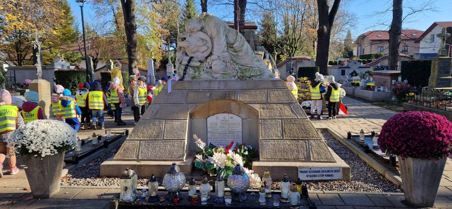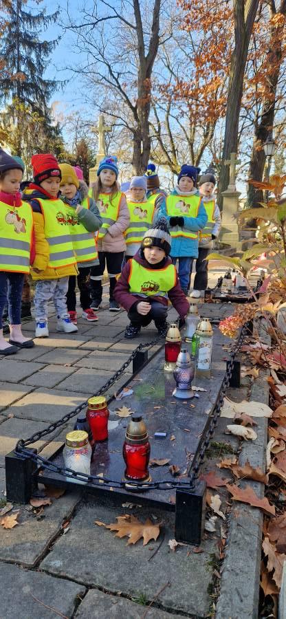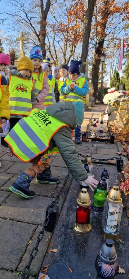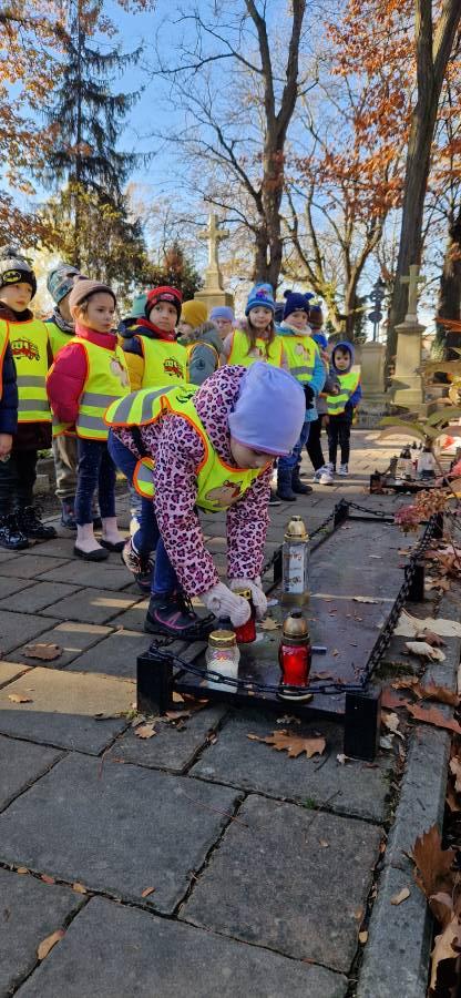 Dnia 6 .11 dzieci z oddziału ll i lll wybrały się na Stary Cmentarz. Głównym celem wycieczki było uczczenie pamięci żołnierzy poległych w walkach o niepodległość Polski. Na miejscu dzieci mogły zapalić przyniesione znicze. Dla naszych przedszkolaków była to ważna lekcja wychowania rodzinnego, obywatelskiego i patriotycznego.