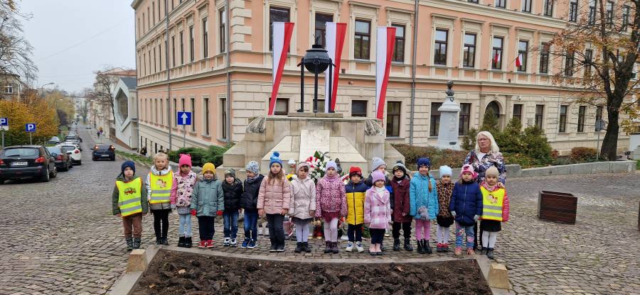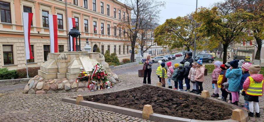 Uroczysta akademia z okazji Dnia Niepodległości przygotowana przez dzieci z oddziału III. Po akademii przedszkolaki udały się na Grób Nieznanego Żołnierza zapalić znicze.