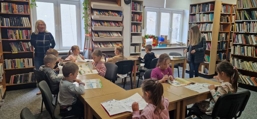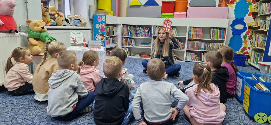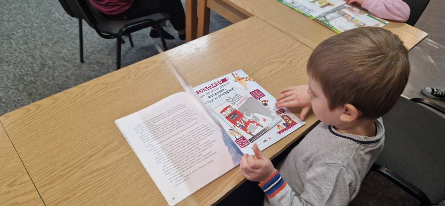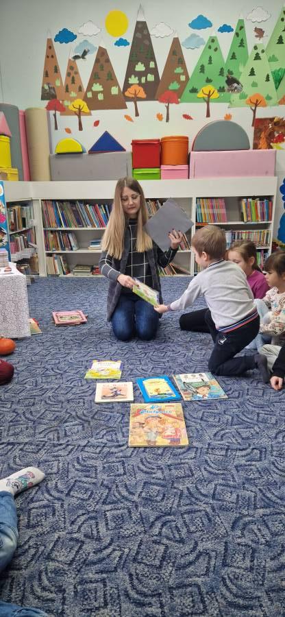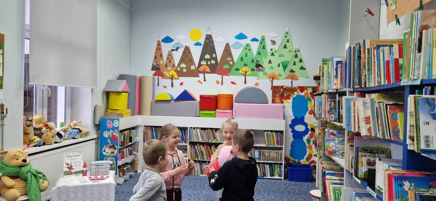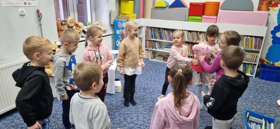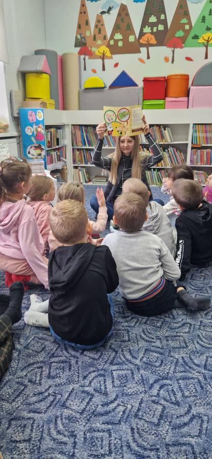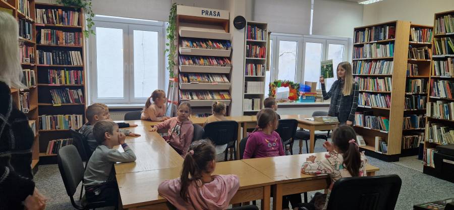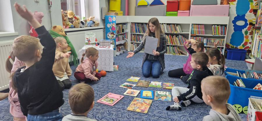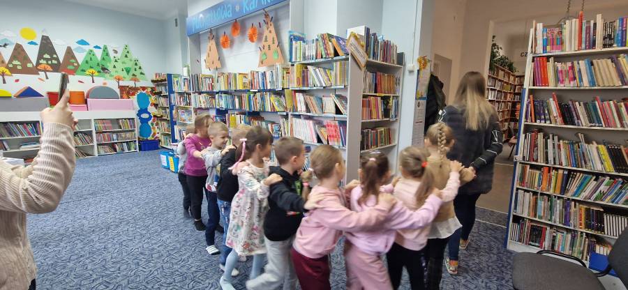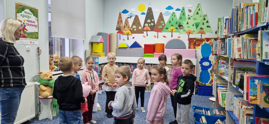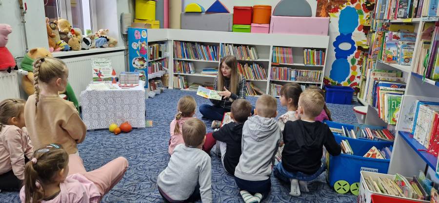 Dnia 15.11 starszaki udały się do Miejskiej Biblioteki Publicznej im. Juliusza Słowackiego na zajęcia ,,Poznajemy bibliotekę". Dla niektórych była to pierwsza taka wizyta. Celem zajęć było -zapoznanie z biblioteką i jej rolą, zapoznanie dzieci z zasadami korzystania z biblioteki, rozbudzanie zainteresowań czytelniczych wśród dzieci, zachęcanie do wypożyczania książek . Utrwaliły pojęcie -biblioteka, bibliotekarz, księgarnia, księgarz.