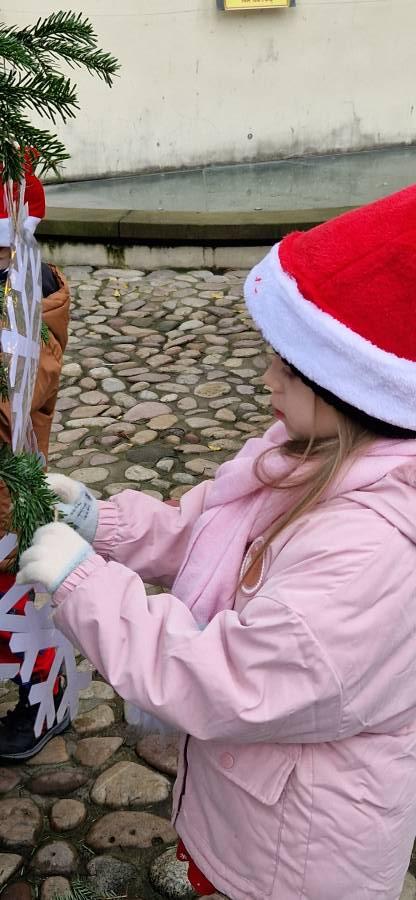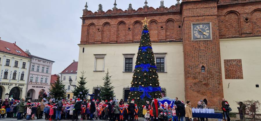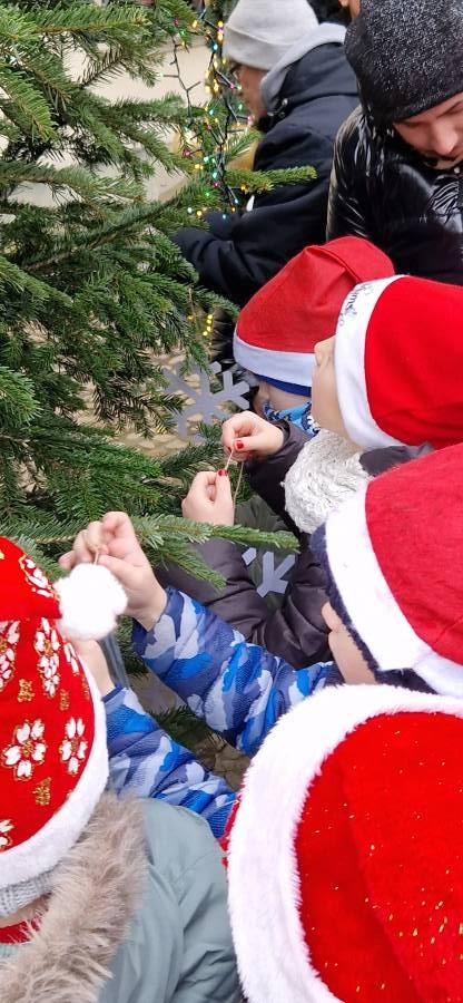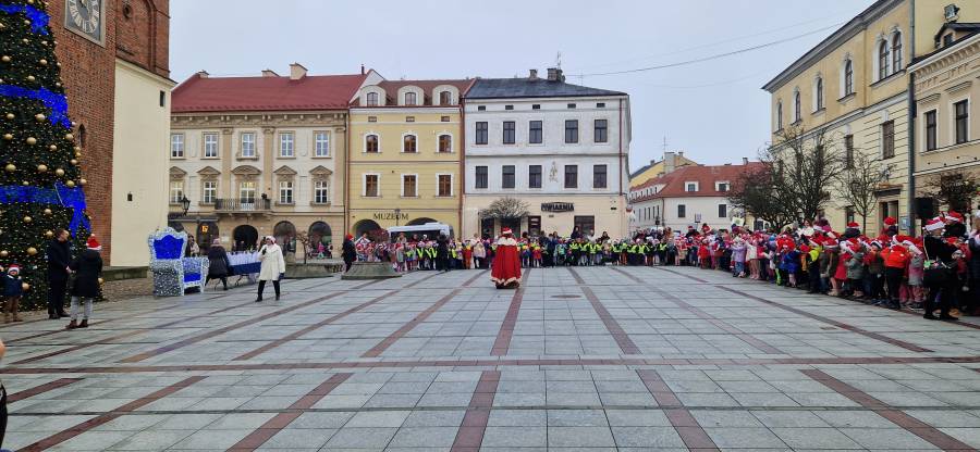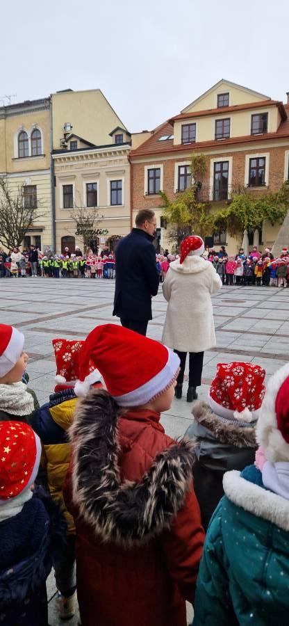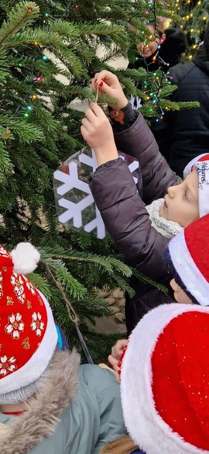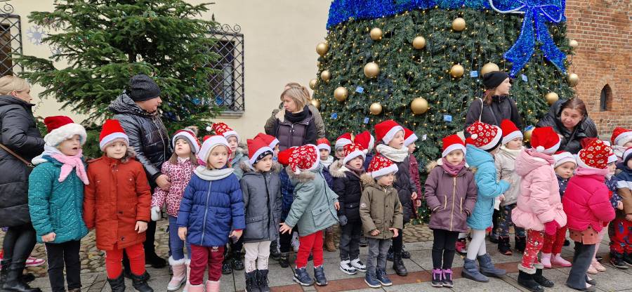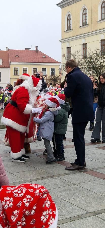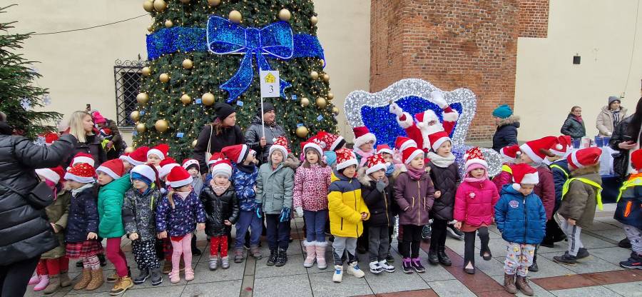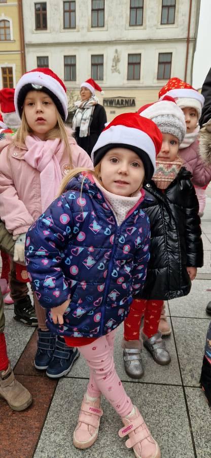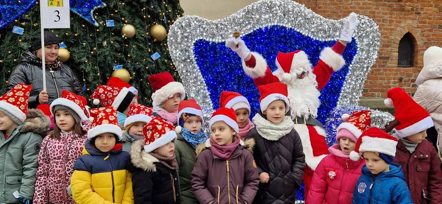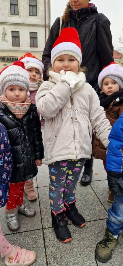 5.12.2024 W dniu dzisiejszym dzieci z oddziału II i III udały się na Tarnowski Rynek , aby spotkać się z długo oczekiwanym gościem - Mikołajem. Ogromna radość i wzruszenie towarzyszyło najmłodszym mieszkańcom naszego miasta. Śpiewaliśmy wspólnie piosenki, dzieci ubrane były w piękne, czerwone mikołajkowe czapki. Wykonane w przedszkolu białe śnieżynki zawiesiliśmy na choinkach , aby zdobiły nasz rynek. Jeszcze tylko pamiątkowe zdjęcia z Mikołajem, słodkości od Pana Prezydenta Jakuba Kwaśnego i pełni emocji wróciliśmy do przedszkola. Zachęcamy rodziców, aby aktywnie spędzając czas z dziećmi udali się na rodzinny spacer po tarnowskim rynku.