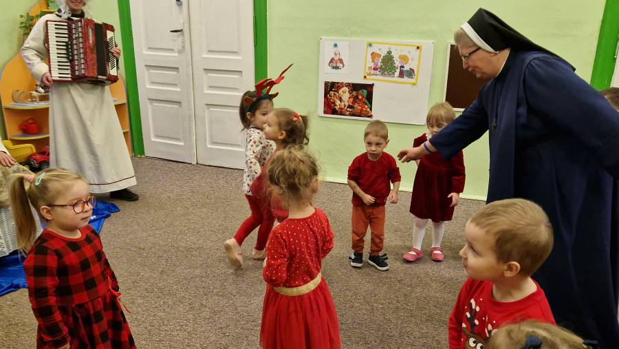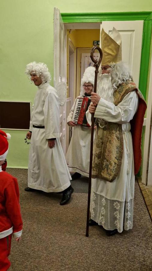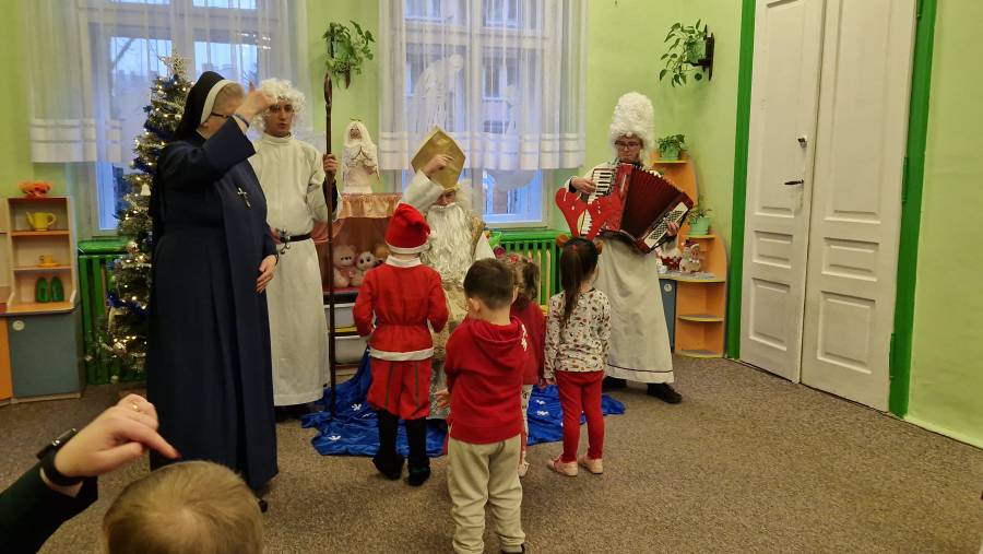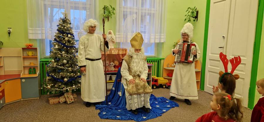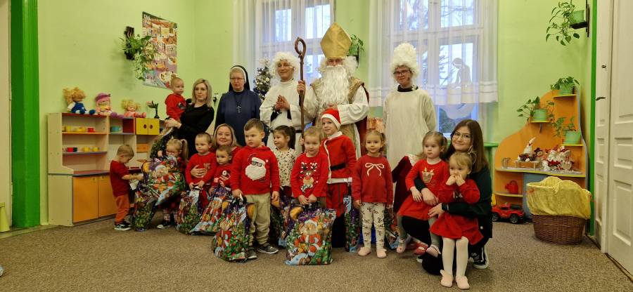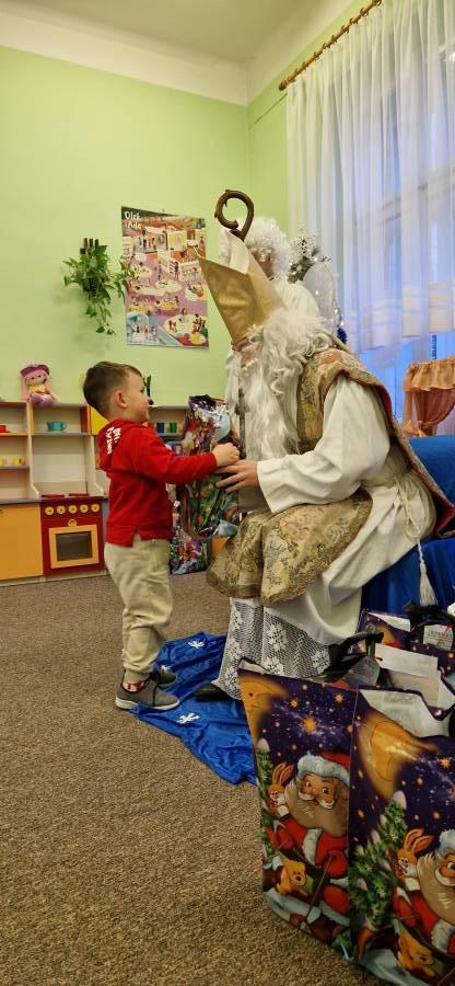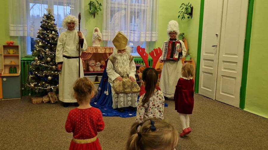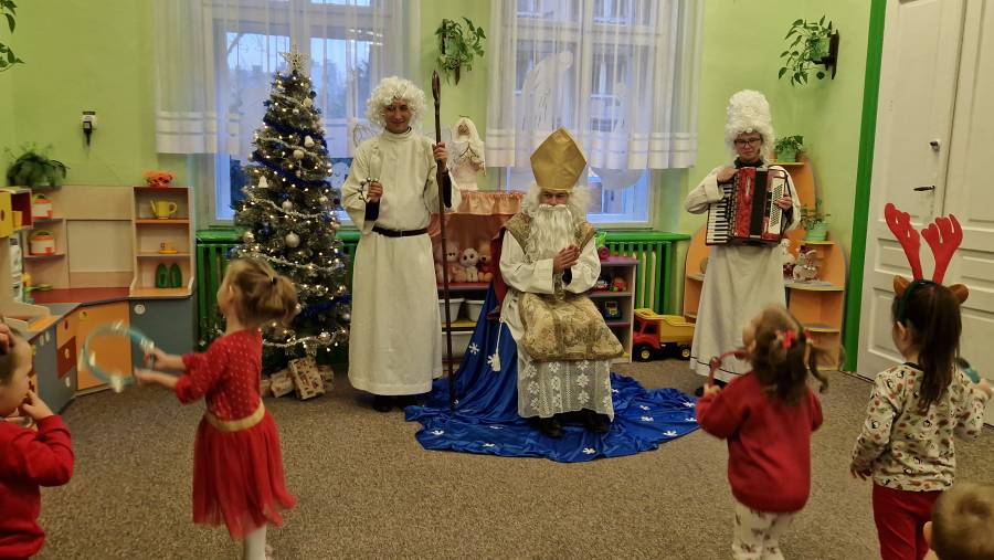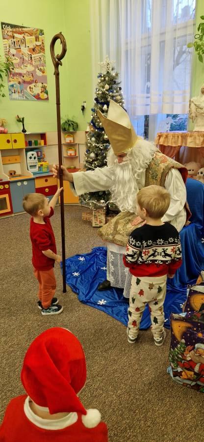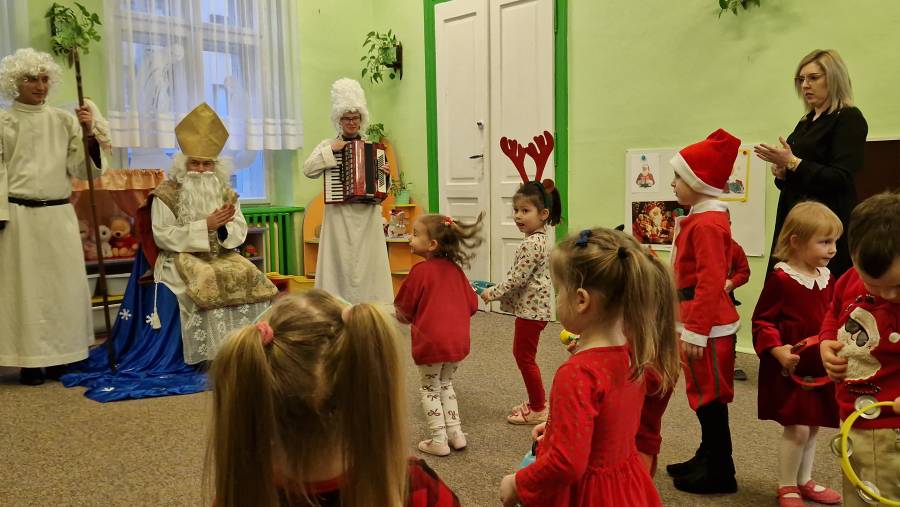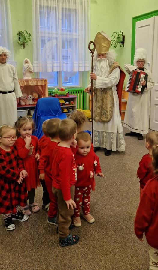 Mikołaj Mikołaj przybył dziś do przedszkola z dalekiego kraju. Grzeczne dzieci go witały, a niegrzeczne przepraszały. Wszystkie radosne uśmiechy przysyłały, chociaż niektóre troszeczkę się bały. Zaśpiewały , zatańczyły , wesołą zabawą gościa ugościły. W podzięce Mikołaj rzekł nam dobre słowo, prezenty rozdawał,a na koniec obiecał wzruszony serdecznie , że za rok odwiedzi nas jeszcze.
