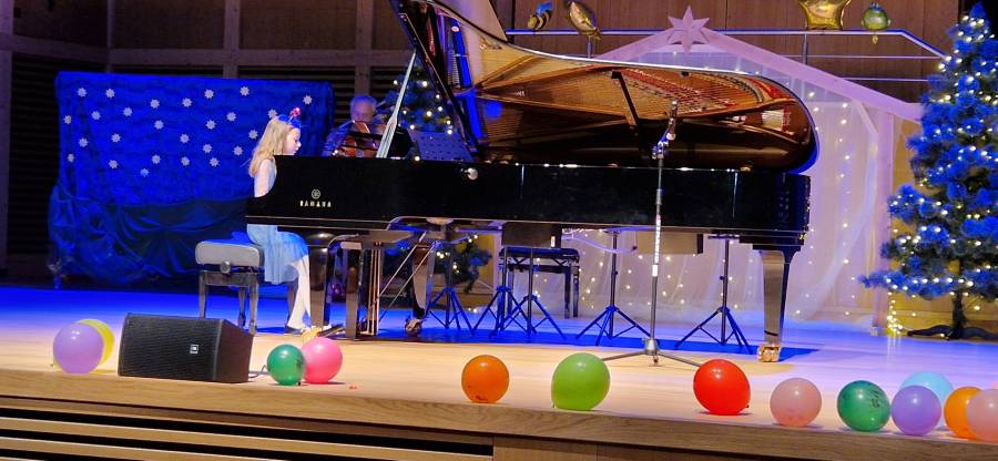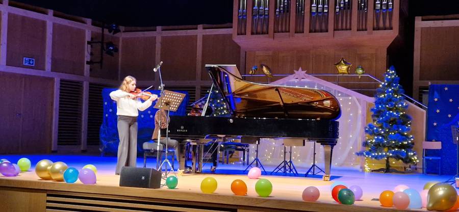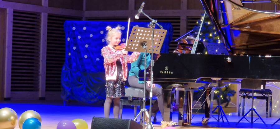 W dniu15.01.2025 r.dzieci z oddziału ll i lll zostały zaproszone na koncert w Państwowej Szkole Muzycznej w Tarnowie. W koncercie brali udział uczniowie szkoły, którzy zaprezentowali nam grę na różnych instrumentach. Młodzi muzycy dali popis umiejętności gry na fortepianie, gitarze, skrzypcach. Nasi przedszkolacy mieli doskonałą okazję zobaczyć instrumenty, jak również posłuchać ich barwy i dźwięków.