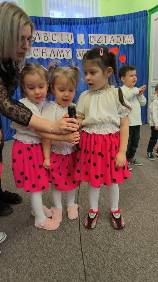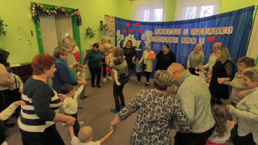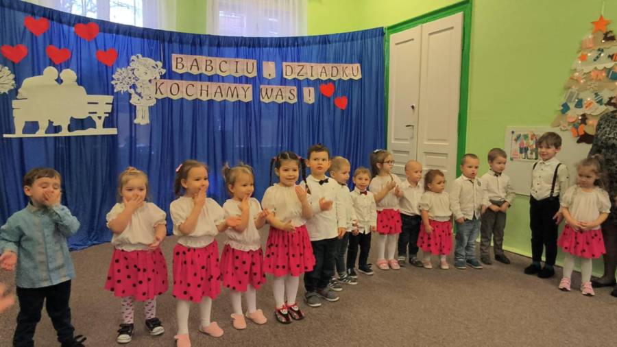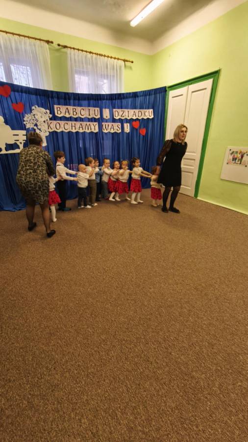 Babci i Dziadziu to słowa które kojarzą się z miłością, ciepłem. W dniu dzisiejszym najmłodsze przedszkolaki zaprosiły swoich ukochanych dziadków na uroczystość z tej okazji. Dzieci z niecierpliwością wyczekiwały zaproszonych gości. Prezentowały swoje umiejętności artystyczne, zaprosiły dziadków do wspólnej zabawy, oraz na słodki poczęstunek. To była naprawdę wyjątkowa uroczystość , pełna uśmiechu, radości i dumy. Szczęśliwe i rozpromienione twarze babć i dziadków dały wyraz tego, jak ważne są takie spotkania i chwile spędzone wspólnie z wnukami.