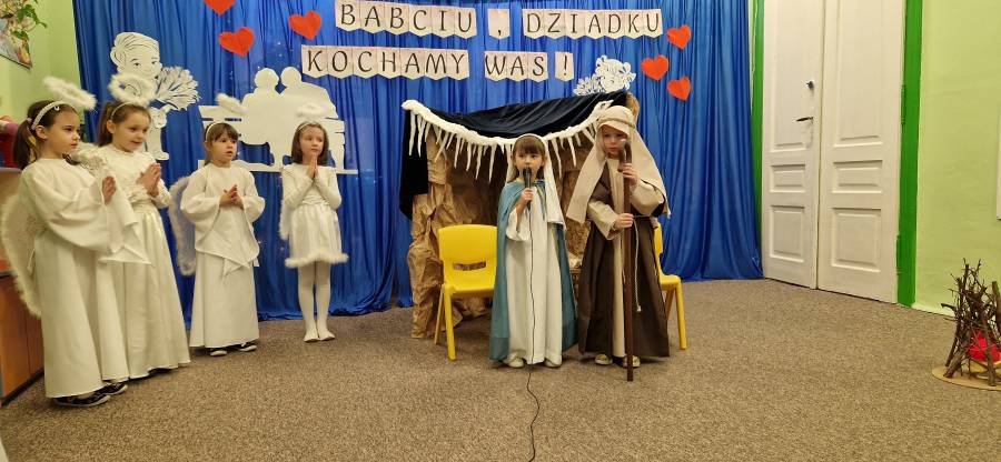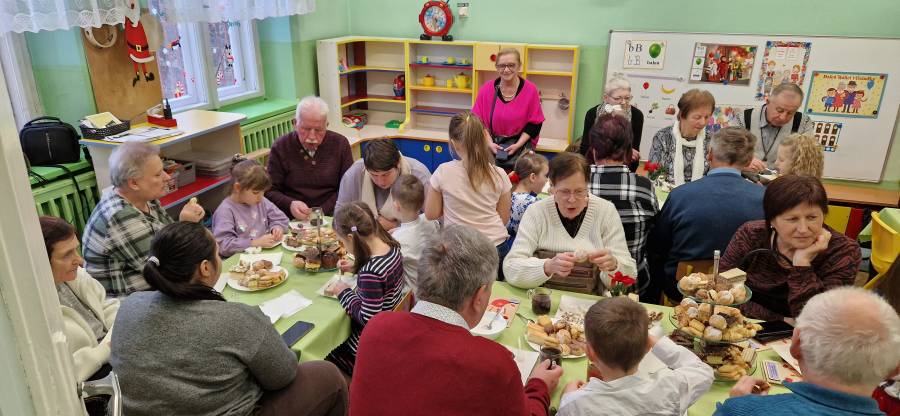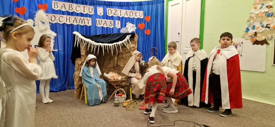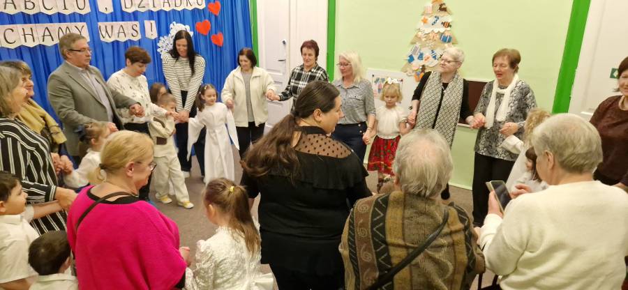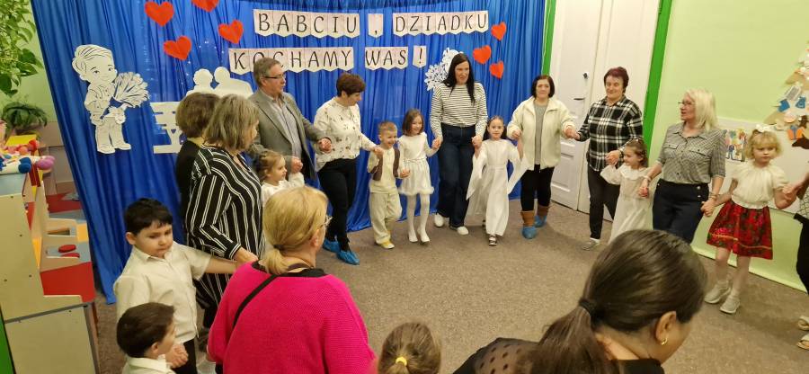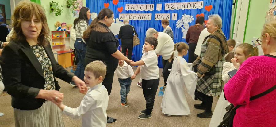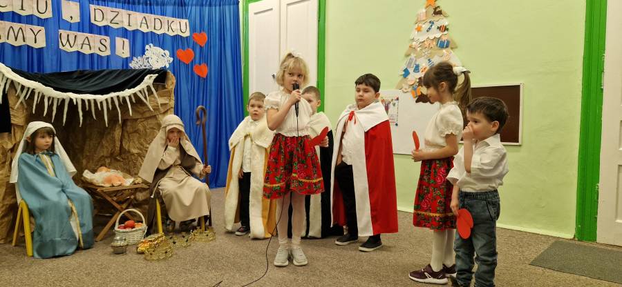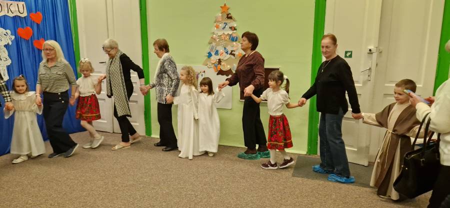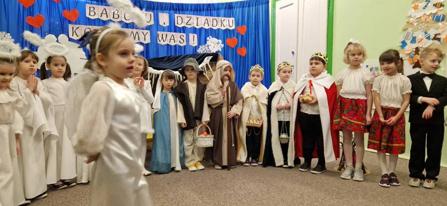 16.01.2025 Dzieci z oddziału III przywitały w przedszkolnych progach ukochanych gości- swoje Babcie i Dziadków. Był to niezwykły dzień, nie tylko dla dzieci, ale również dla dziadków . Czas miłych wrażeń i uśmiechów. Dzieci przedstawiły część artystyczną Jasełka, śpiewały, złożyły życzenia. Wszyscy razem tańczyli przy muzyce. Na naszych gości czekał wspaniały poczęstunek. Dzisiejszy dzień zapamiętamy na długo i zachowamy w dziecięcych serduszkach.