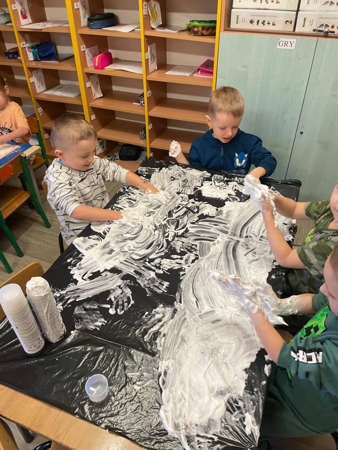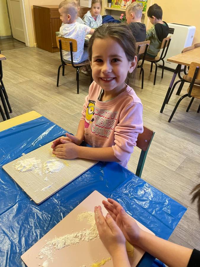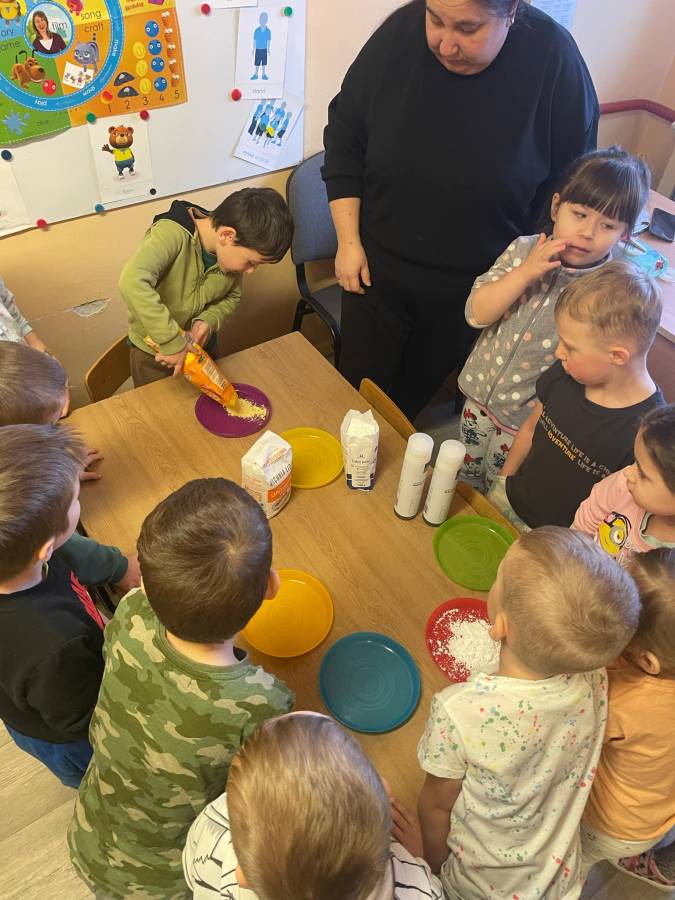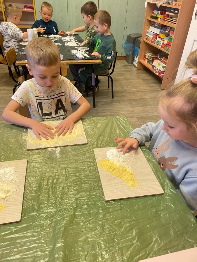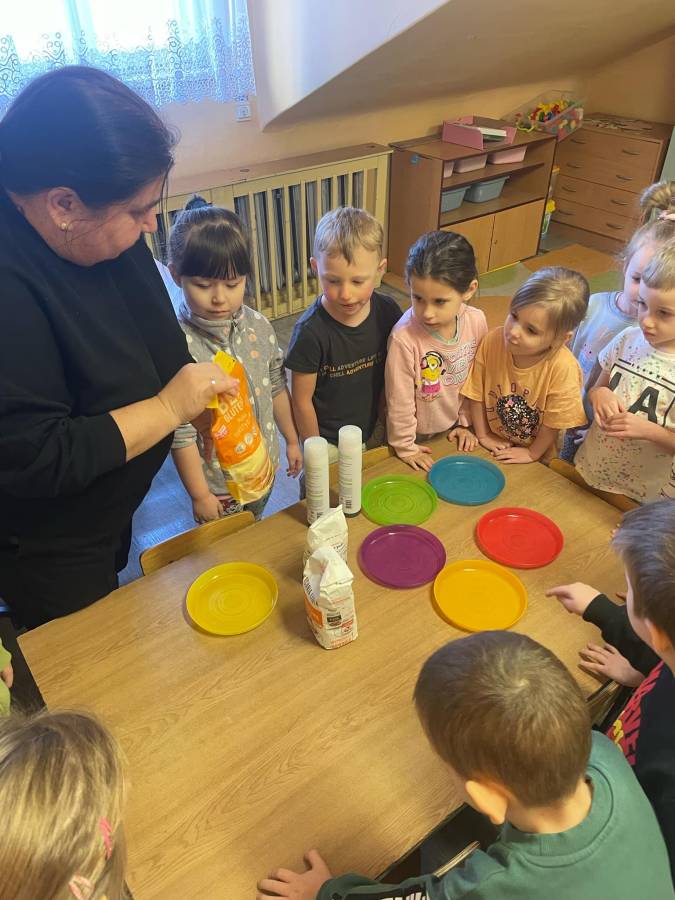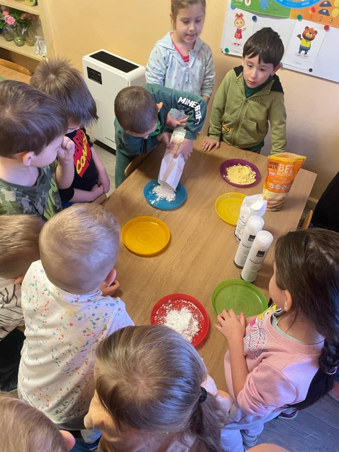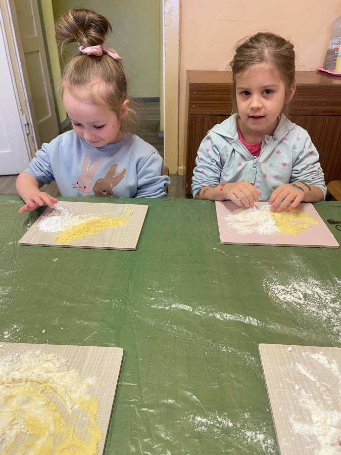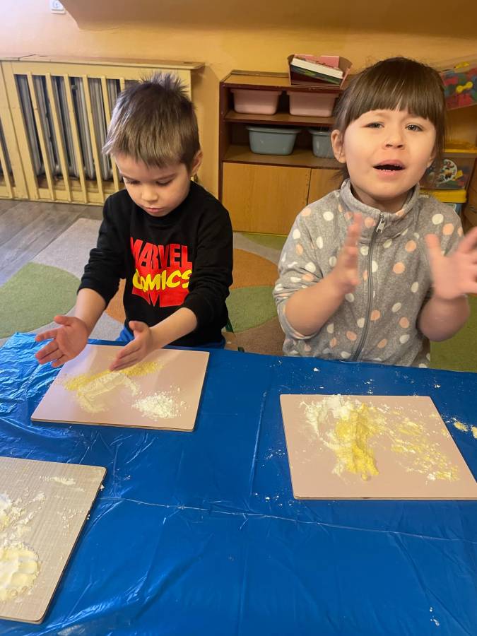 10.02.2025 zabawy sensoryczne z użyciem mąki pszennej, mąki kukurydzianej, cukru pudru i pianki w oddziale II . Zabawa tymi masami pobudza zmysły, zachęca do ich dotykania, wąchania, obserwowania. Przedszkolaki miały możliwość ?eksplorowania świata poprzez swoje zmysły, co sprzyja lepszemu przyswajaniu? wiedzy i ?rozwijaniu ?umiejętności poznawczych. Nasze dzisiejsze zabawy sensoryczne sprawiły dzieciom dużo radości.