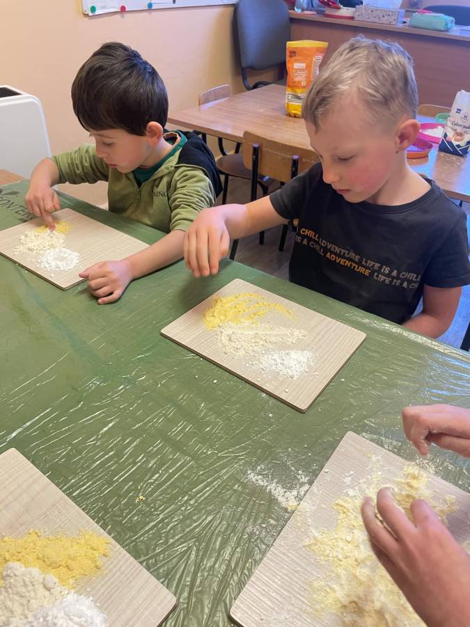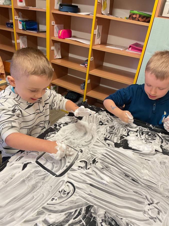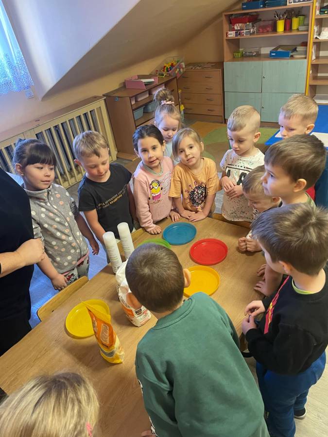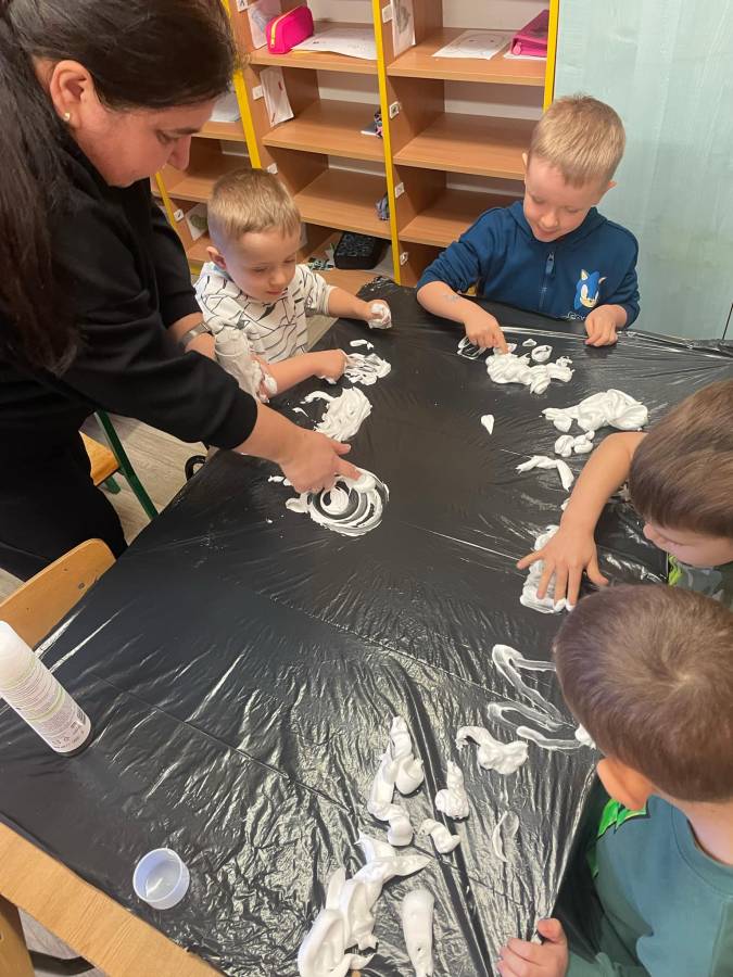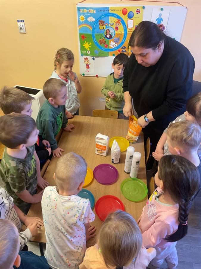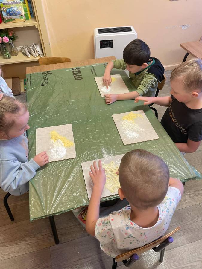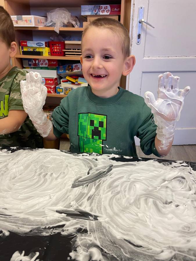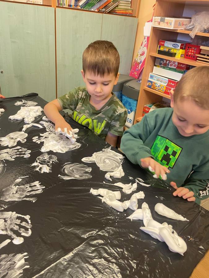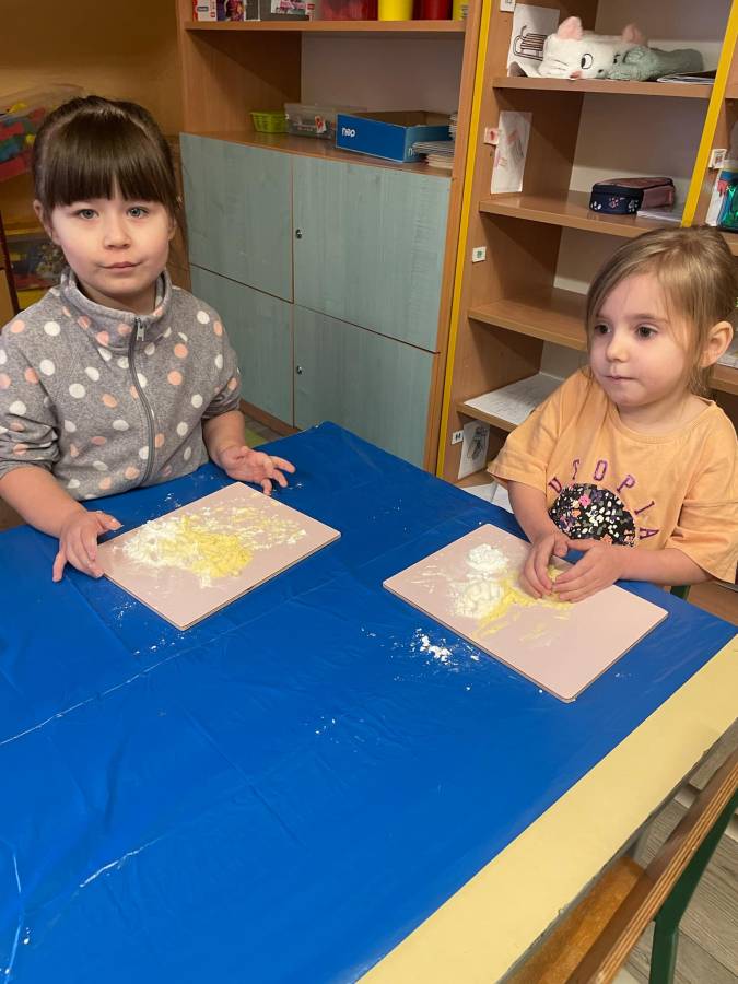 10.02.2025 zabawy sensoryczne z użyciem mąki pszennej, mąki kukurydzianej, cukru pudru i pianki w oddziale II . Zabawa tymi masami pobudza zmysły, zachęca do ich dotykania, wąchania, obserwowania. Przedszkolaki miały możliwość ?eksplorowania świata poprzez swoje zmysły, co sprzyja lepszemu przyswajaniu? wiedzy i ?rozwijaniu ?umiejętności poznawczych. Nasze dzisiejsze zabawy sensoryczne sprawiły dzieciom dużo radości.