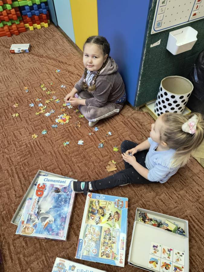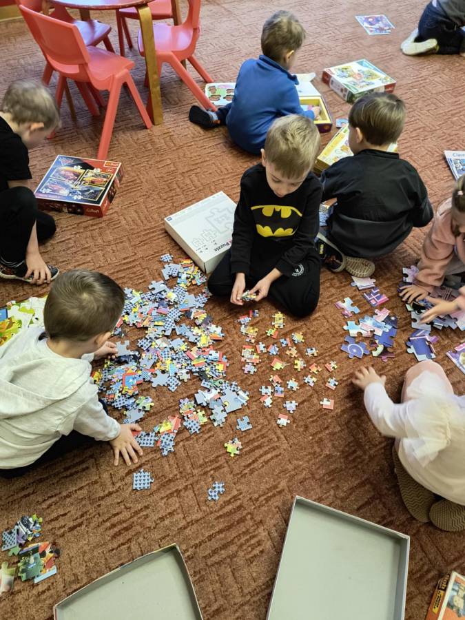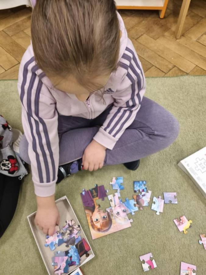 Światowy Dzień Puzzli. Przez kilka dni puzzle służyły do różnych zadań ? nie tylko układania obrazka. Dzięki zabawom z puzzlami dzieci kształtowały szereg umiejętności związanych z analizą i syntezą wzrokową.