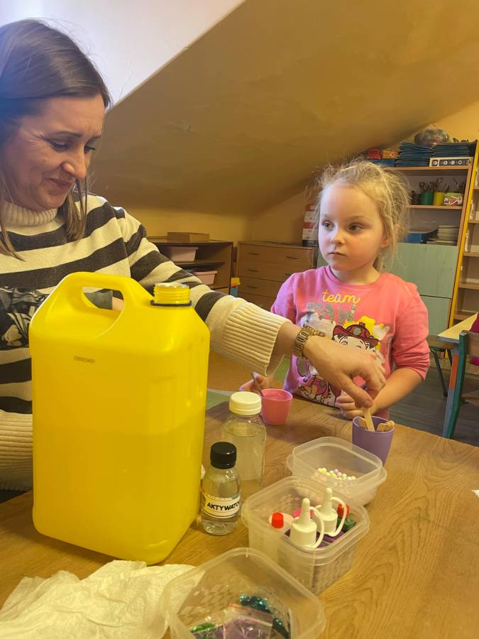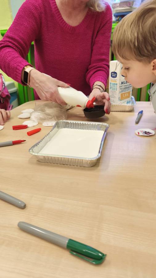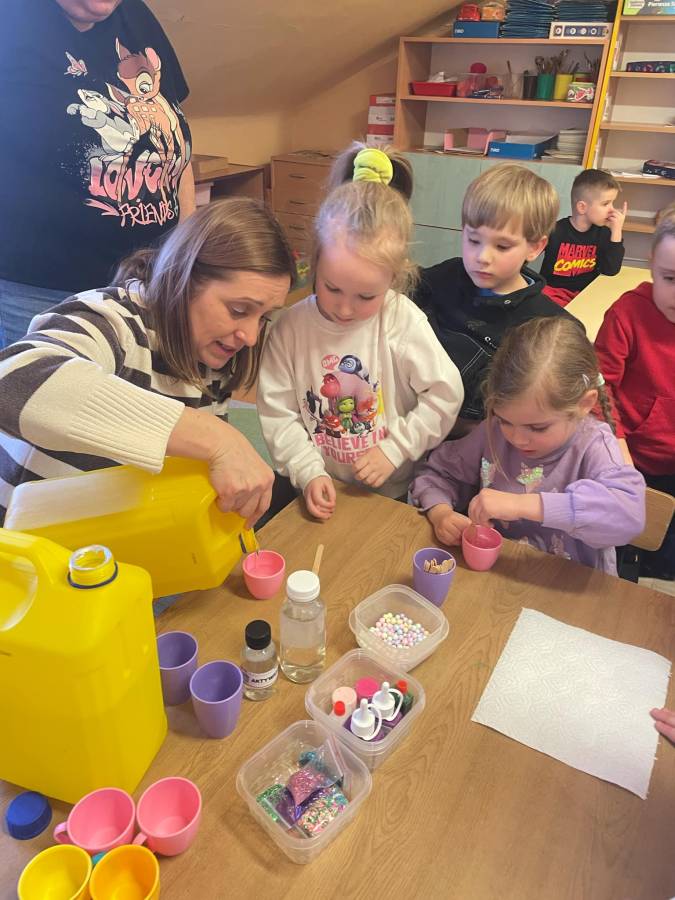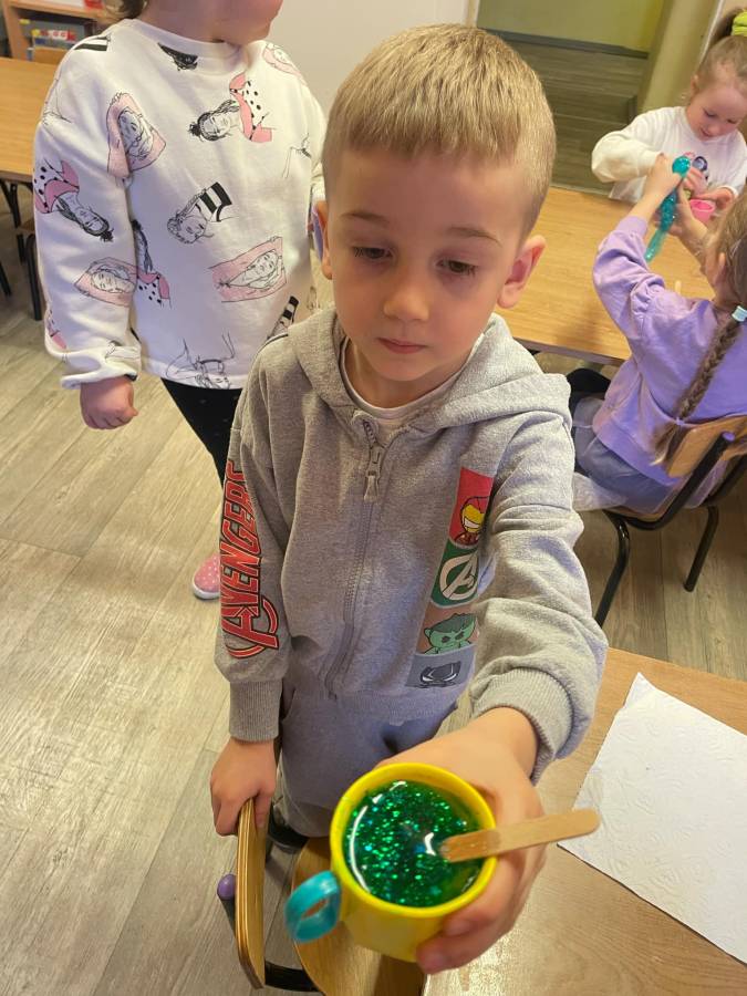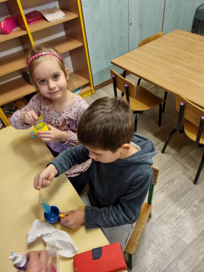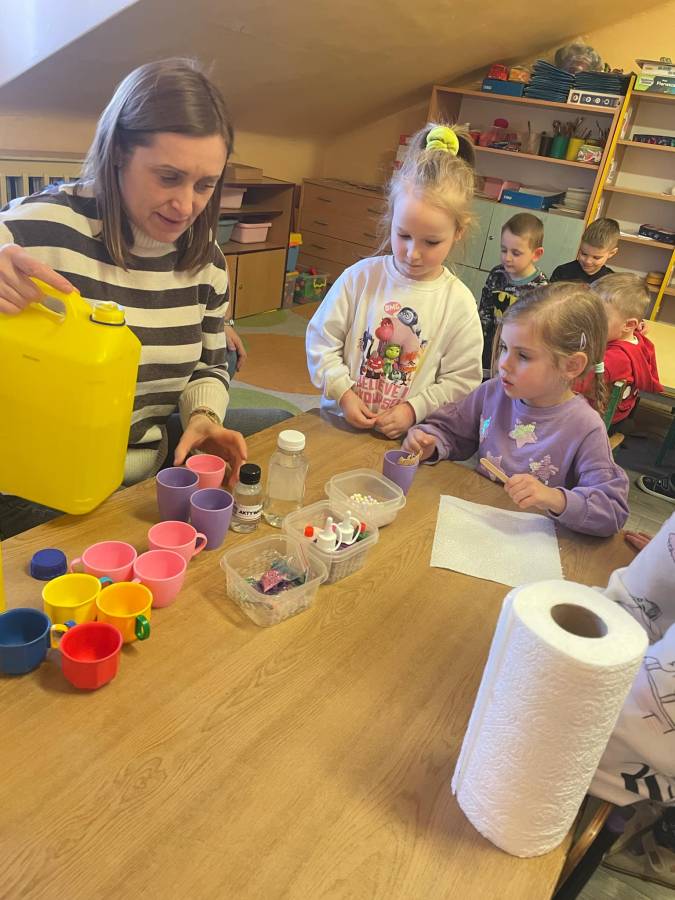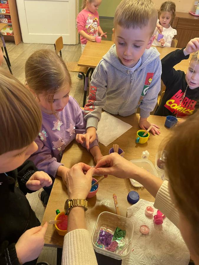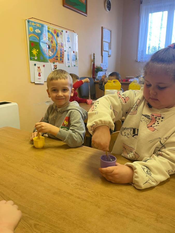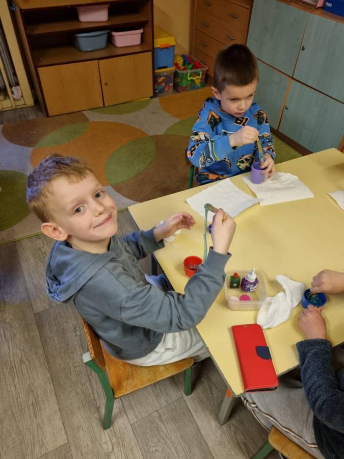Bawiliśmy się wykorzystując ciekawe zajęcia plastyczne- slimy, magnesy. Wykonaliśmy pracę plastyczną " zajączek". Byliśmy aktywni w trakcie zabawy sportowych. Było też coś smacznego dla naszego podniebienia. Przygotowywaliśmy pyszny deser. Na koniec nadszedł czas eksperymentów i dużo ciekawostek. Serdecznie dziękujemy dzieciom , które nas odwiedziły i wspólnie z nami spędziły czas. Mamy nadzieję, że od września będziecie już z nami na stałe.