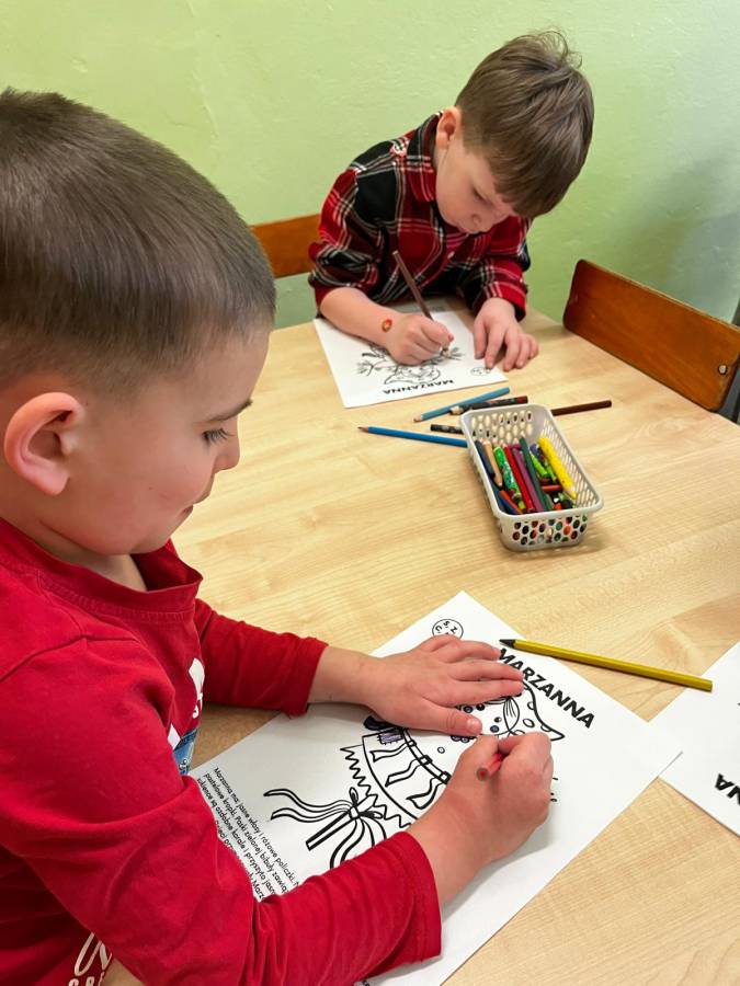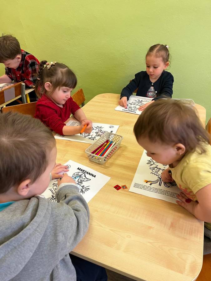 W dniu dzisiejszym w naszym przedszkolu obchodziliśmy "Światowy Dzień Logopedy". Dzieci ze wszystkich oddziałów utrwaliły wiadomości związane z pracą logopedy. Podopieczni ćwiczyli trudne głoski: "sz", "cz", "dz" oraz "rz" poprzez odpowiadanie na zadane przez nauczyciela zagadki logopedyczne. Wszyscy wzięli udział również w zabawie, w której musiały wyłowić rybki oraz wypowiedzieć na głos to co dana rybka przestawiała. Na koniec dzieci pomalowały kolorowanki - kodowanki związane z literkami i trudnymi głoskami.