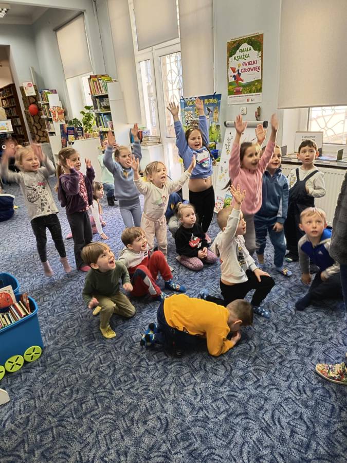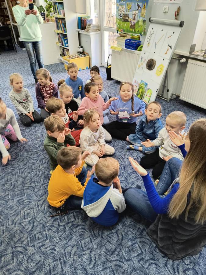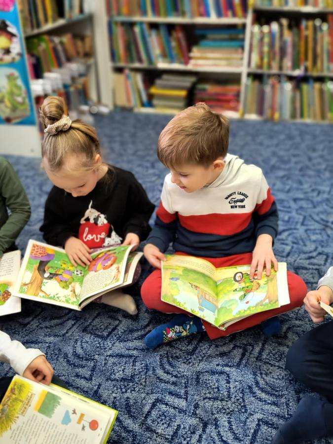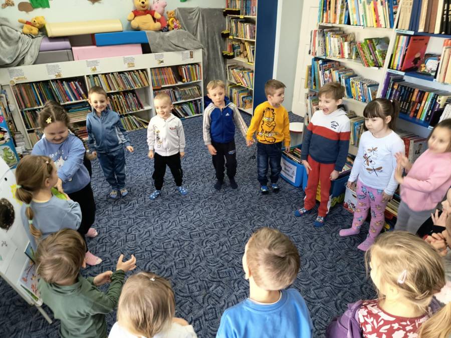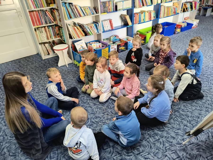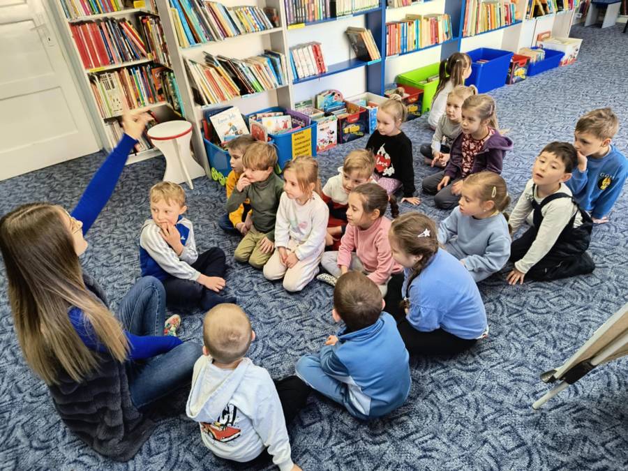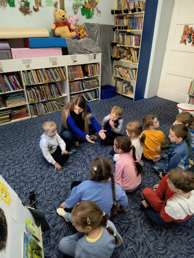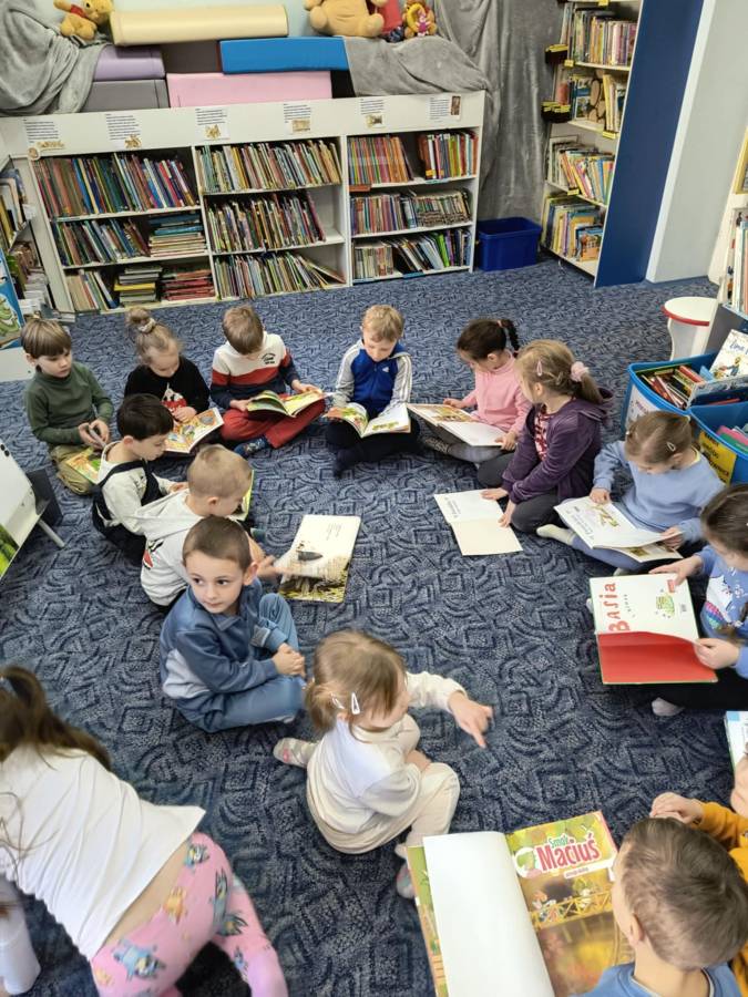 Średniaki wybrały się do Biblioteki Miejskiej. Pani bibliotekarka zapoznała je ze specyfiką tego miejsca, a także dzieciaki uczestniczyły w kilku zabawach. Na zakończenie pani przeczytała dzieciom wybraną bajeczkę. Przedszkolakom bardzo spodobały się kolorowe i bogato ilustrowane książeczki, które z chęcią oglądały. Spotkanie odbywało się w miłej, pełnej uśmiechów i wrażeń atmosferze. Dla wielu przedszkolaków, była to pierwsza wizyta w ?domu książek?, ale na pewno nie ostatnia.