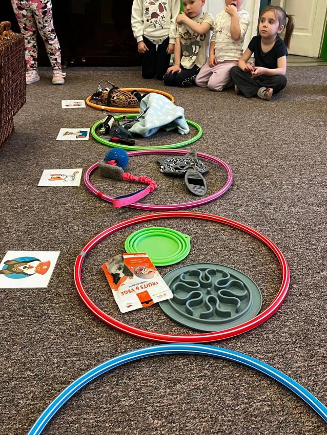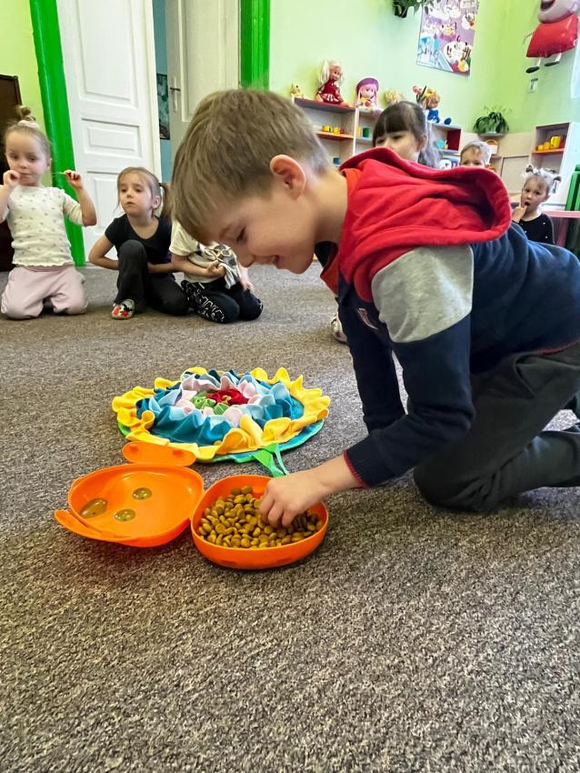 W naszym przedszkolu na zajęciach odwiedzili nas interesujący goście , był to pies Bonita i jego właścicielka. W czasie tego spotkania dzieci uczyły się prawidłowych zachowań w bezpośrednim kontakcie z psem. Przedszkolaki dowiedziały się co to znaczy mieć zwierzę i jakie wiążą się z tym obowiązki: karmienie, pielęgnacja, spacery, zabawa i ? sprzątanie po swoim psie. Dzieci poznały zasady zachowania się w stosunku do psa którego nie znają. Zajęcia te sprawiły dzieciom wiele radości, były interesujące i pouczające.