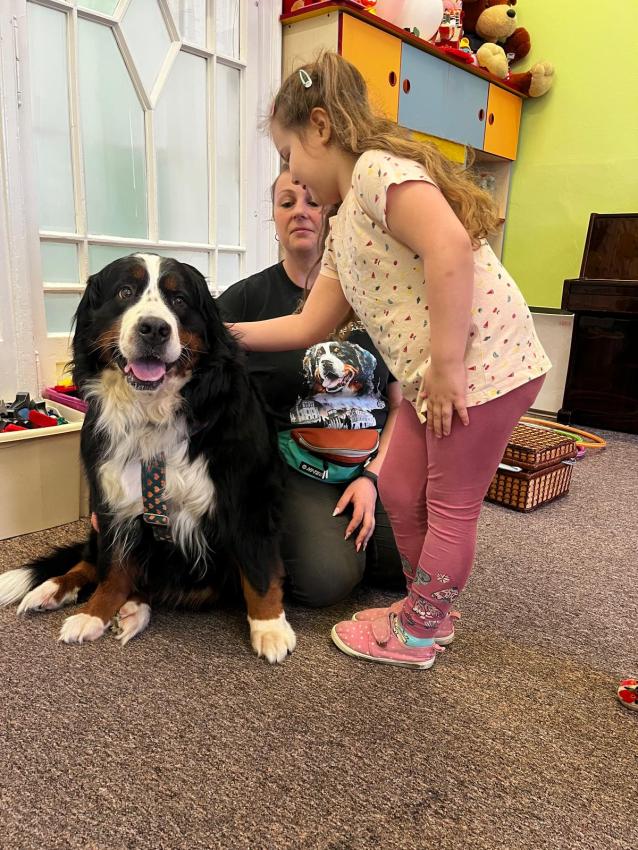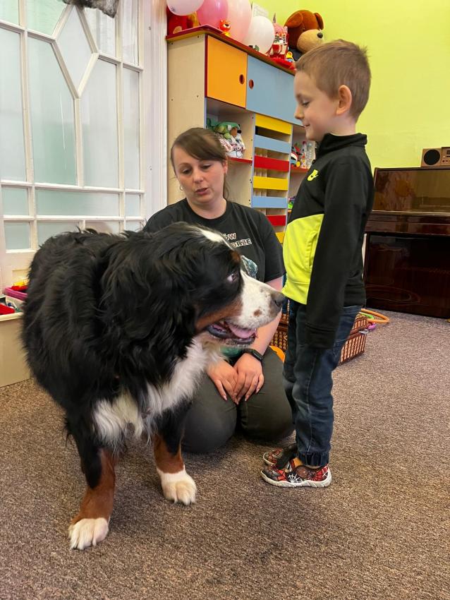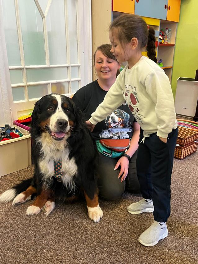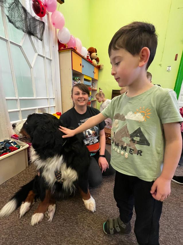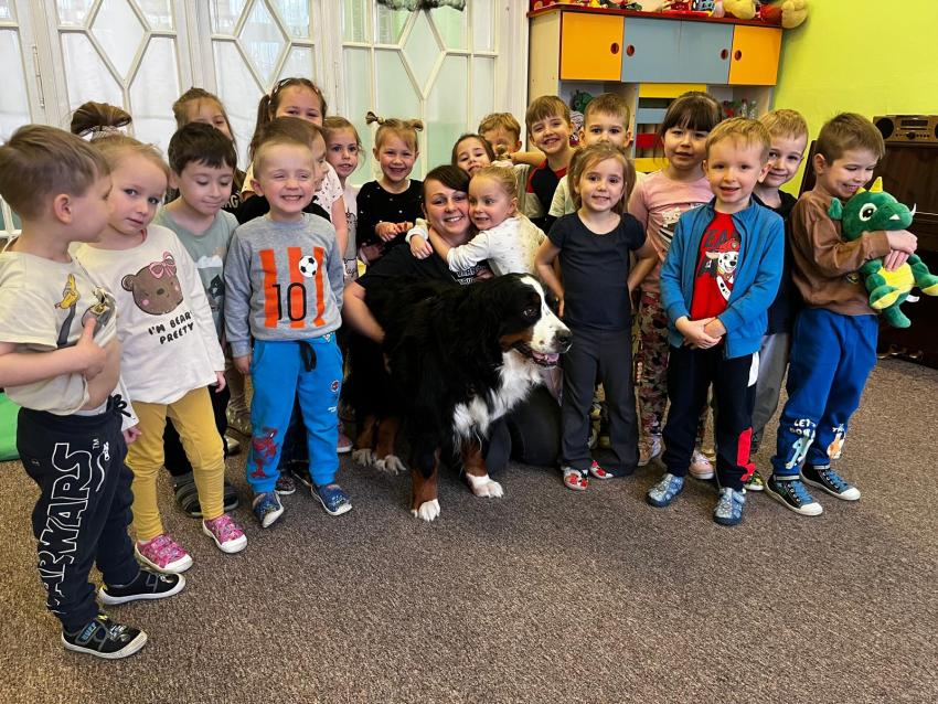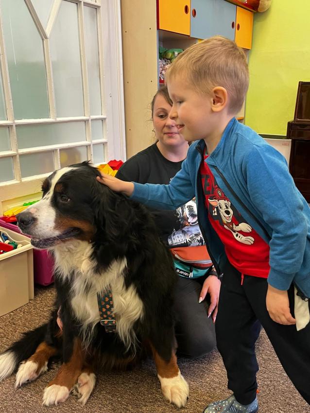 Pies berneński Bonita w naszym przedszkolu - oddział Żabki