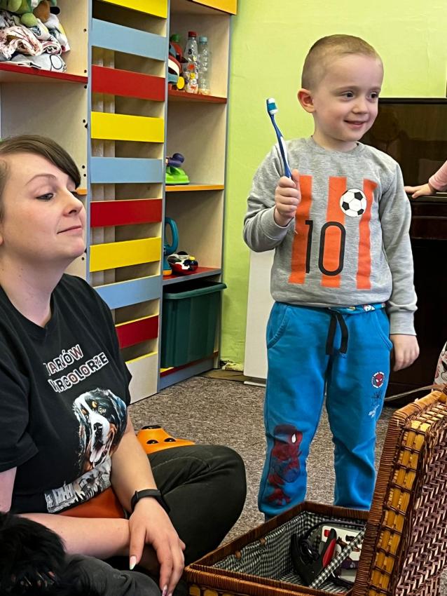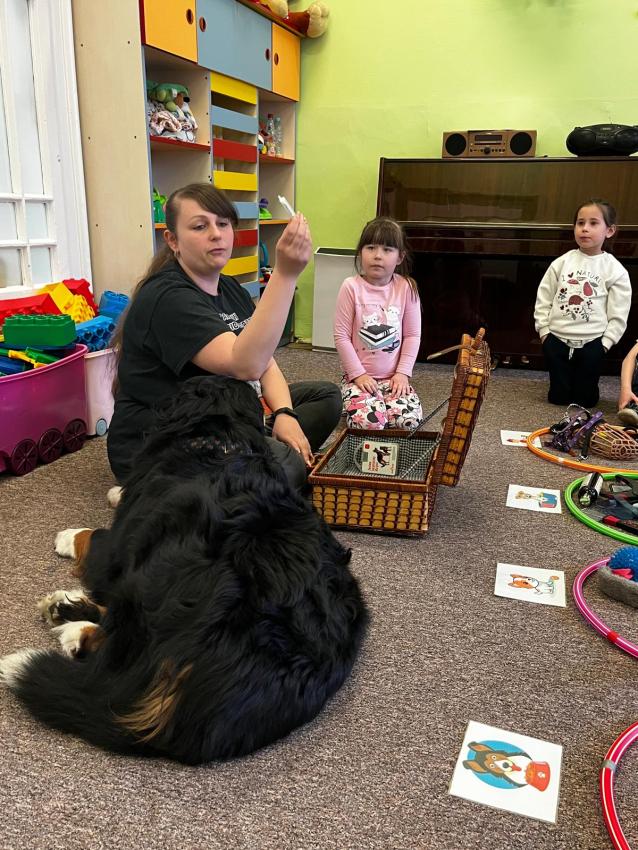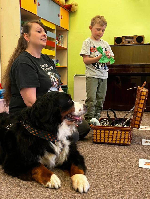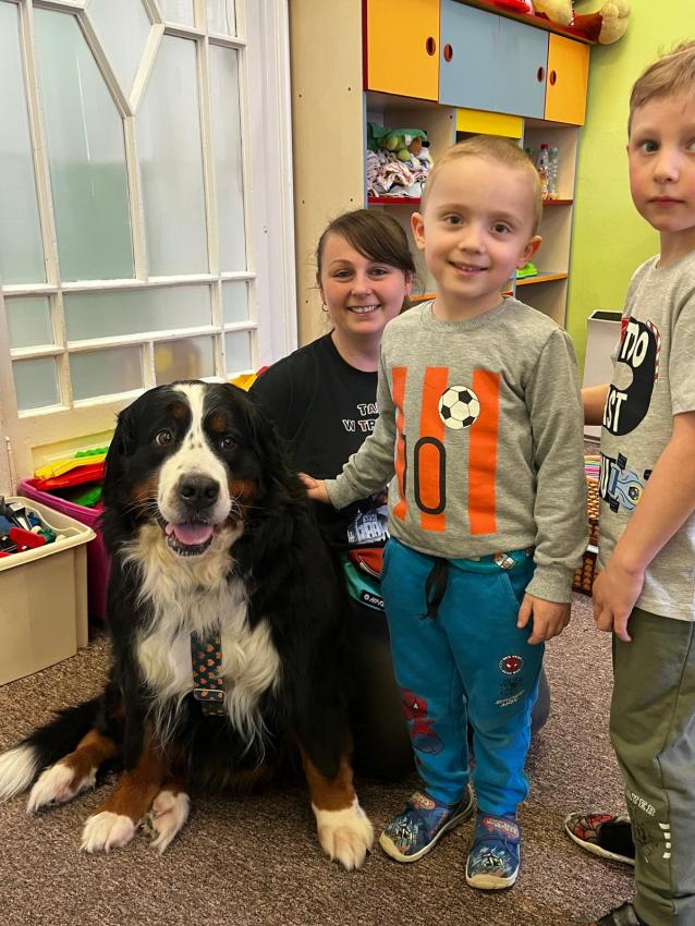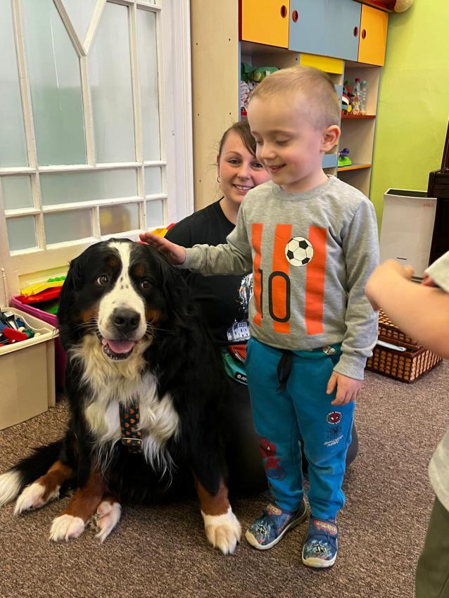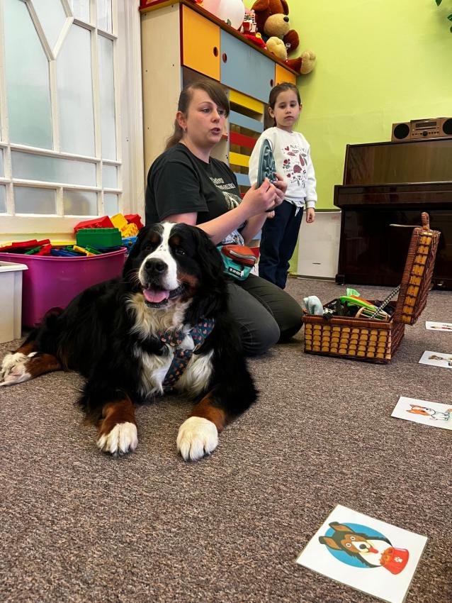 Pies berneński Bonita w naszym przedszkolu - oddział Żabki