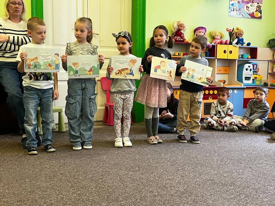 W naszym przedszkolu na zajęciach odwiedzili nas interesujący goście , był to pies Bonita i jego właścicielka Tarninowe Bermisie . W czasie tego spotkania dzieci uczyły się prawidłowych zachowań w bezpośrednim kontakcie z psem. Przedszkolaki dowiedziały się co to znaczy mieć zwierzę i jakie wiążą się z tym obowiązki: karmienie, pielęgnacja, spacery, zabawa i ? sprzątanie po swoim psie. Dzieci poznały zasady zachowania się w stosunku do psa którego nie znają. Zajęcia te sprawiły dzieciom wiele radości, były interesujące i pouczające.