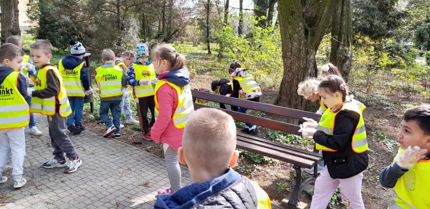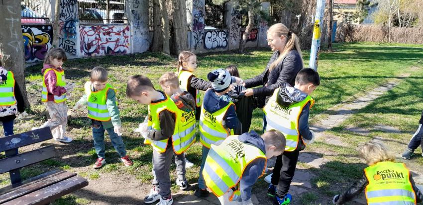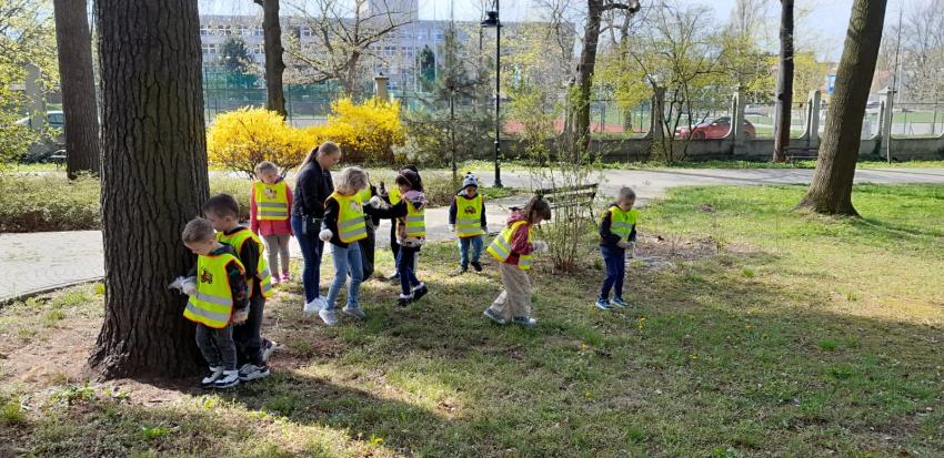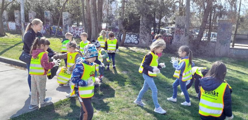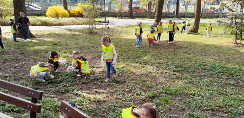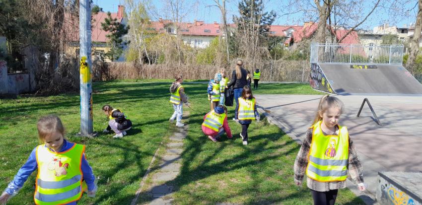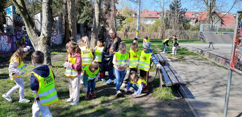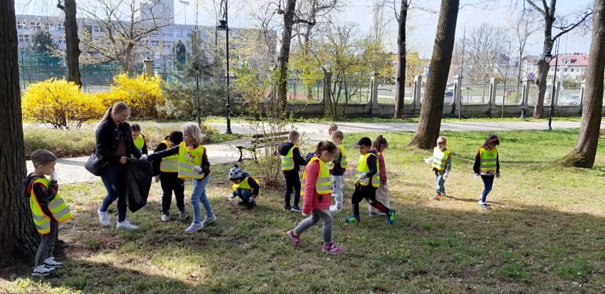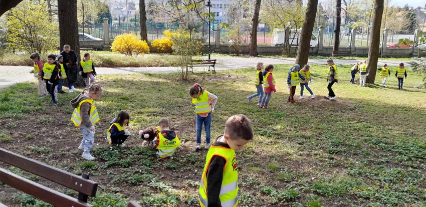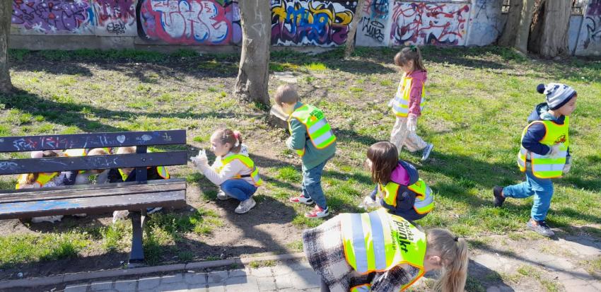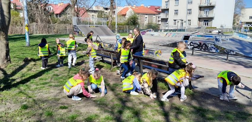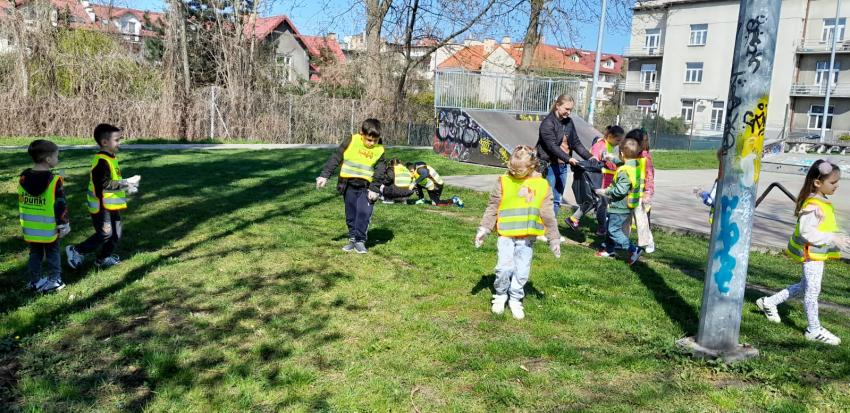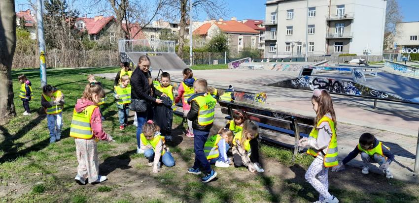 14.04.25 r dzieci z oddziału III wzięły udział w akcji ?Posprzątaj z Nami Tarnów?. Dzieci udały się do Parku Strzeleckiego oraz pobliskiego skateparku, gdzie wspólnymi siłami posprzątały zieleń. Wyjście to oprócz posprzątania naszego otoczenia miało na celu uwrażliwienie dzieci na dbanie o środowisko oraz poszanowanie przyrody.