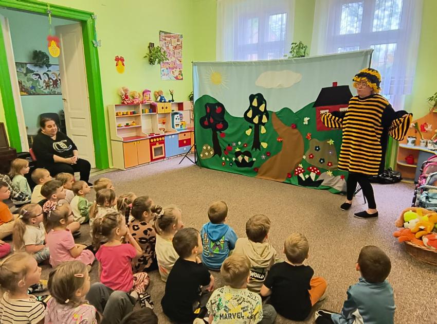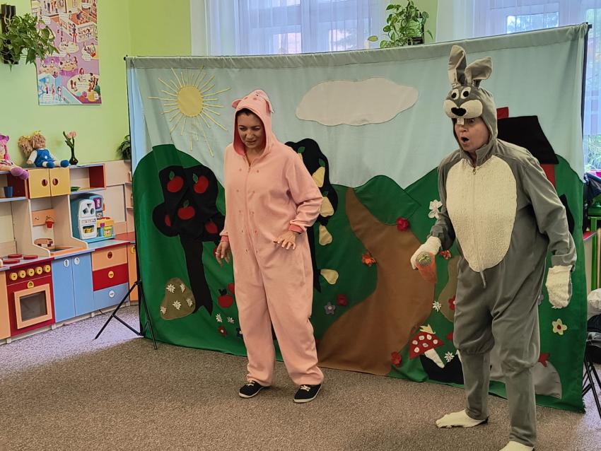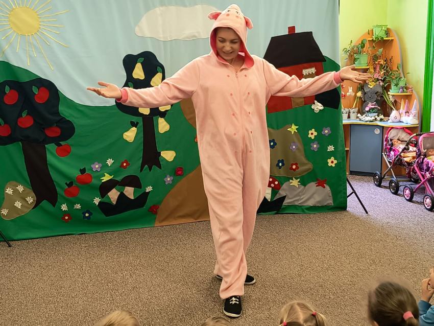 25.04.2025 w naszym przedszkolu gościł teatrzyk Skrzat z Krakowa. Oglądaliśmy przedstawienie " Prosiaczek brudasek". Bohaterowie Prosiaczek, Szop Pracz, Krowa, Piesek, Królik, Lis i Wilk mówili nam o przyjaźni i o tym , że należy być grzecznym. Musimy dbać o higienę, zdrowo się odżywiać i będziemy szczęśliwi. Przedstawienie bardzo się przedszkolakom podobało i wywołało uśmiech na dziecięcych buziach.
