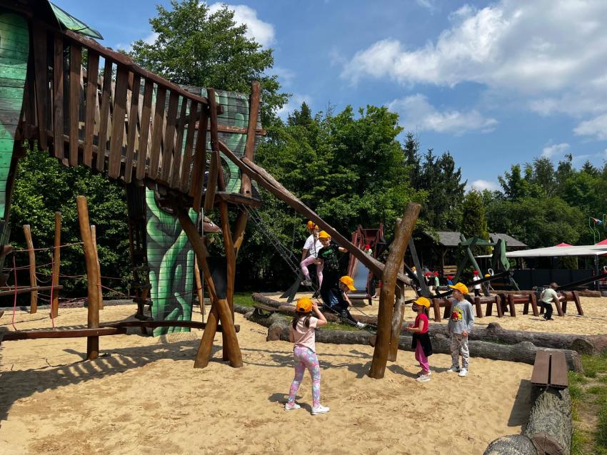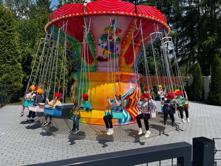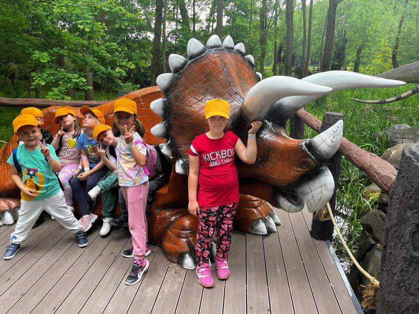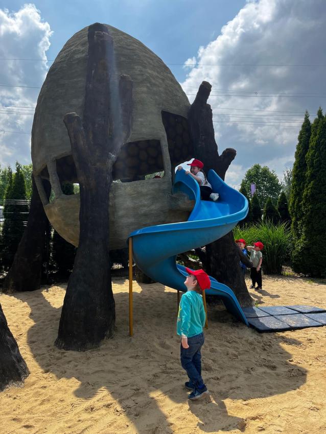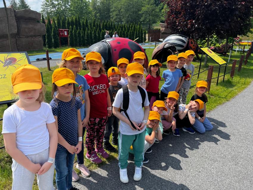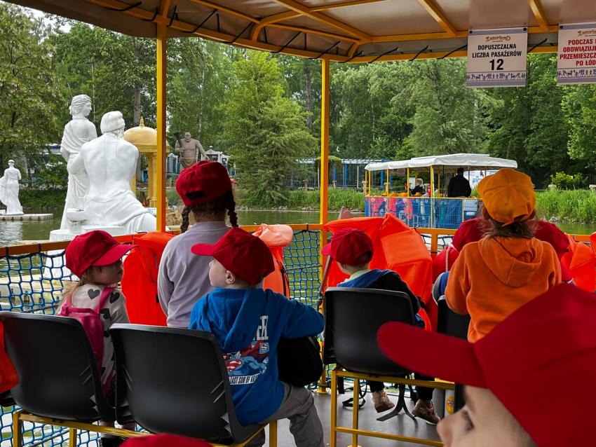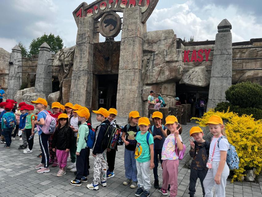 Przedszkolaki z naszego przedszkola udały się w dniu 22.05.2025 na pełną emocji i wrażeń, niepowtarzalną wycieczkę. Park ruchomych dinozaurów, park mitologii,park owadów, miasteczko ruchu drogowego to atrakcje naszej wycieczki. Naturalny ogród botaniczny z wiekowym drzewostanem to czas spotkania z prehistorycznymi dinozaurami. W parku mitologii płynąc statkiem przenieśliśmy się w krainę greckich wierzeń i herosów. To nie koniec naszych atrakcji spotkaliśmy 28 ogromnych owadów ludzkich rozmiarów. Po ogromnej dawce wiedzy dzieci czekała beztroska, pełna adrenaliny zabawa w Lunaparku- karuzele, symulatory, plac zabaw, trampoliny, gokarty. Pełni pozytywnych emocji, zmęczeni ale szczęśliwi wróciliśmy do domu.
