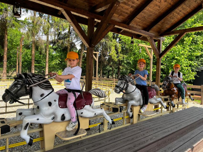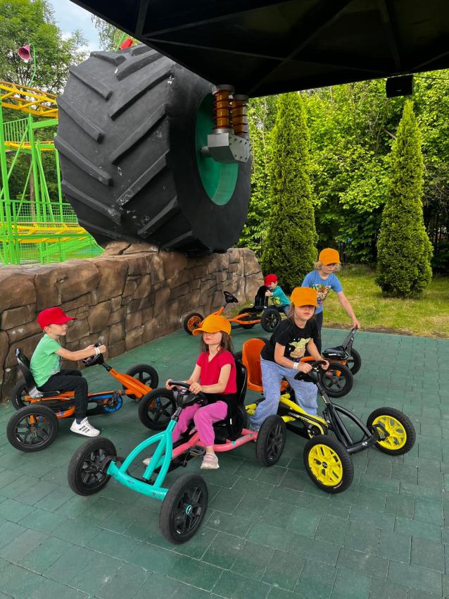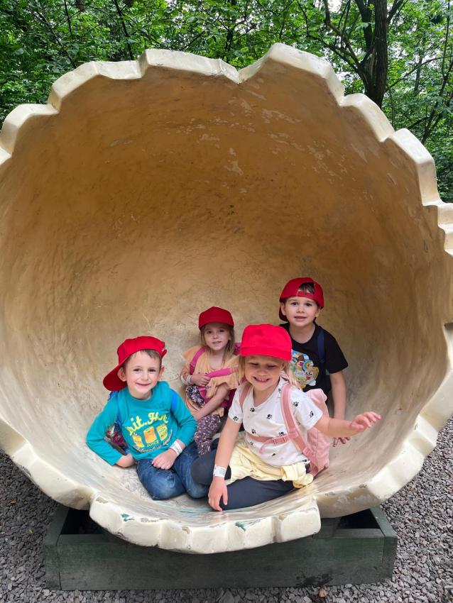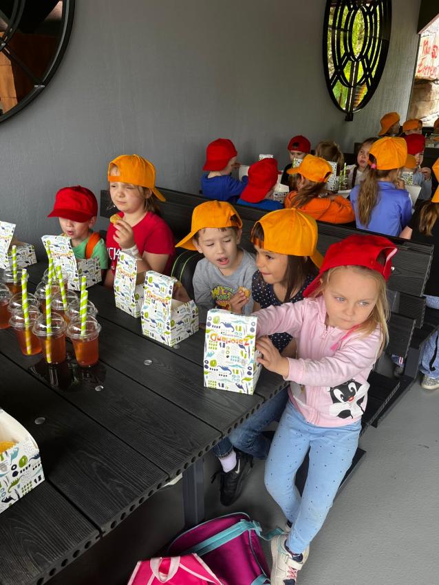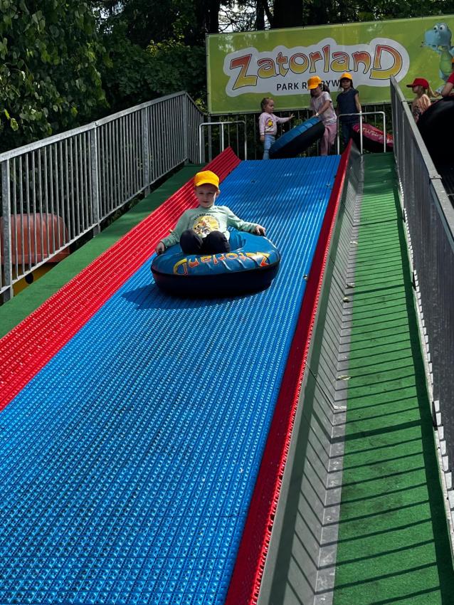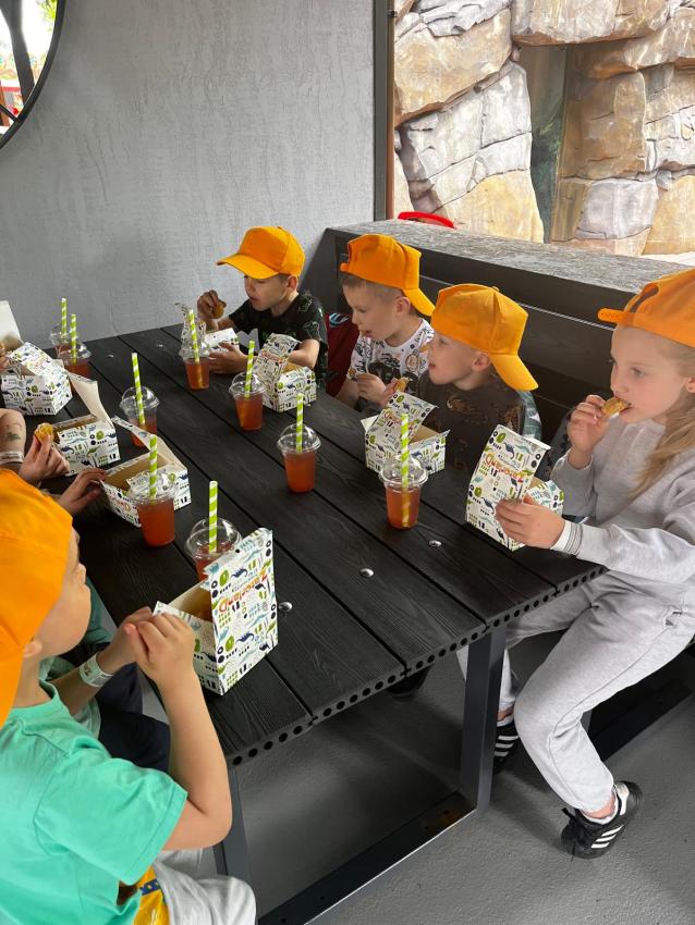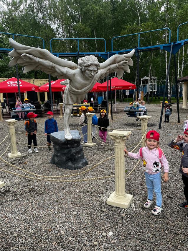 Przedszkolaki z naszego przedszkola udały się w dniu 22.05.2025 na pełną emocji i wrażeń, niepowtarzalną wycieczkę. Park ruchomych dinozaurów, park mitologii,park owadów, miasteczko ruchu drogowego to atrakcje naszej wycieczki. Naturalny ogród botaniczny z wiekowym drzewostanem to czas spotkania z prehistorycznymi dinozaurami. W parku mitologii płynąc statkiem przenieśliśmy się w krainę greckich wierzeń i herosów. To nie koniec naszych atrakcji spotkaliśmy 28 ogromnych owadów ludzkich rozmiarów. Po ogromnej dawce wiedzy dzieci czekała beztroska, pełna adrenaliny zabawa w Lunaparku- karuzele, symulatory, plac zabaw, trampoliny, gokarty. Pełni pozytywnych emocji, zmęczeni ale szczęśliwi wróciliśmy do domu.