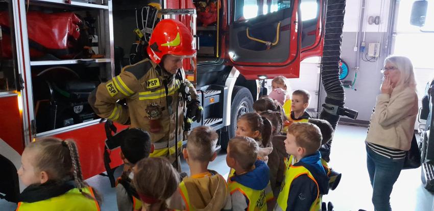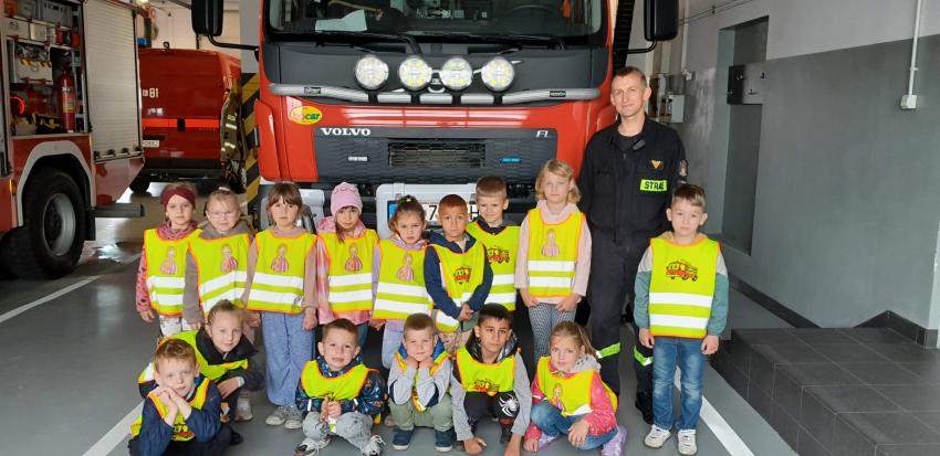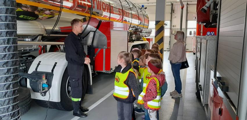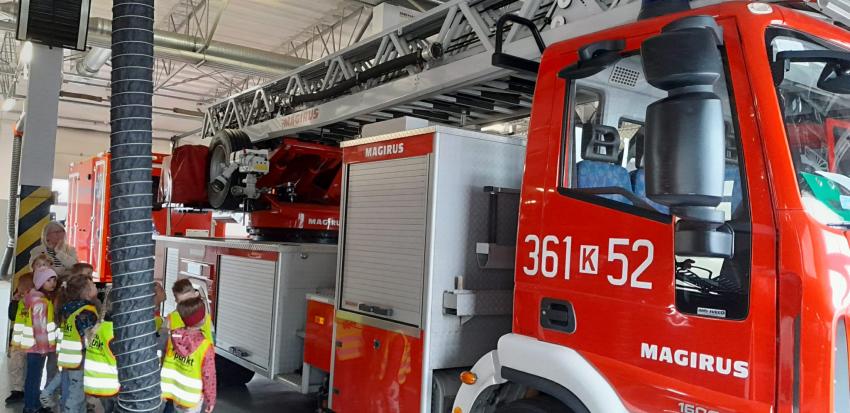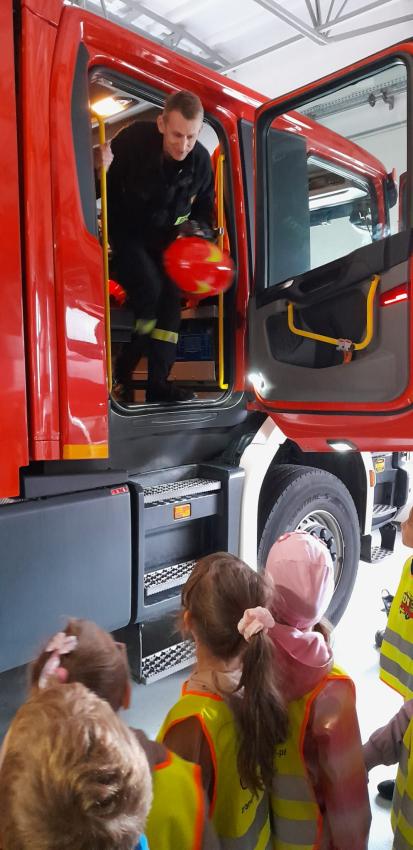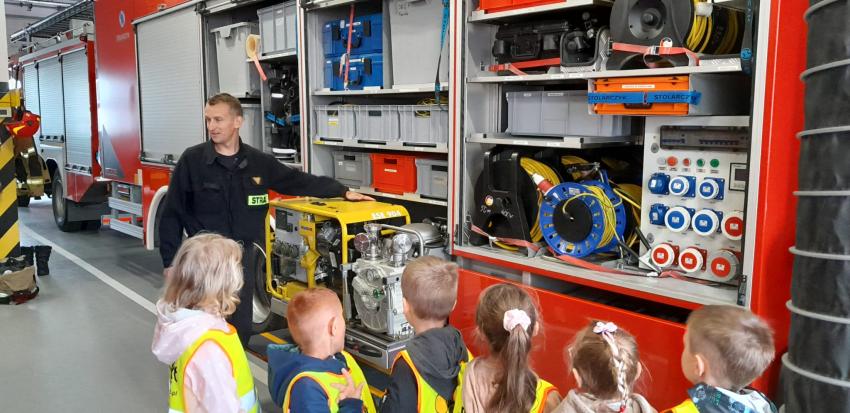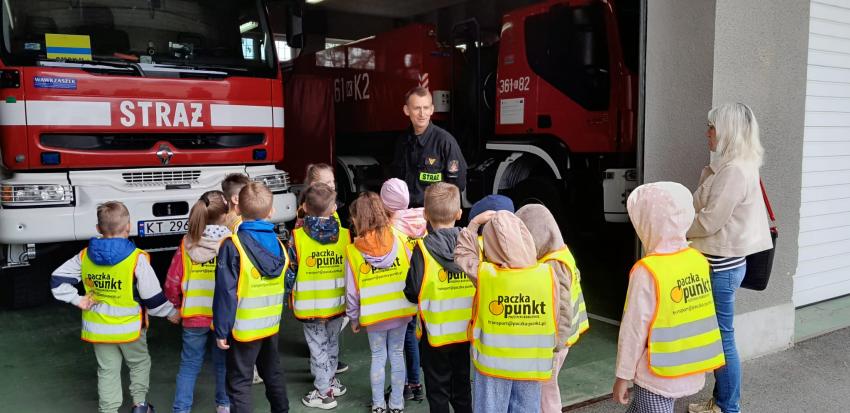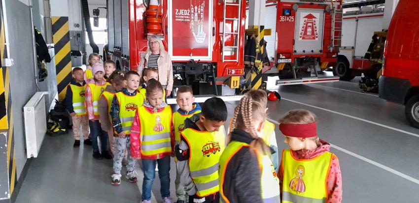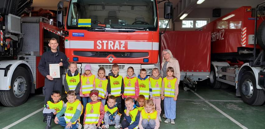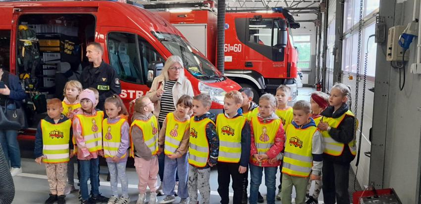 Dnia 27.05 dzieci z oddziału lll ,,Żyrafy" wybrały się na wycieczkę do Straży Pożarnej. Dzięki życzliwości Panów Strażaków przedszkolaki mogły z bliska obejrzeć samochody i sprzęt pożarniczy. W trakcie rozmowy ze strażakiem dowiedziały się dużo o trudnej, odpowiedzialnej i niebezpiecznej pracy strażaków. Z wycieczki przedszkolaki wróciły pełne niezapomnianych wrażeń wspomnień.