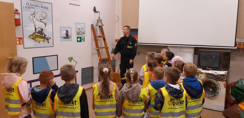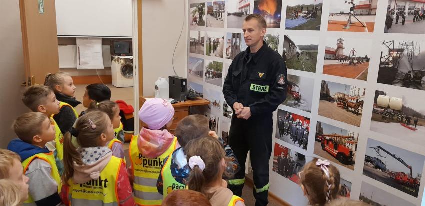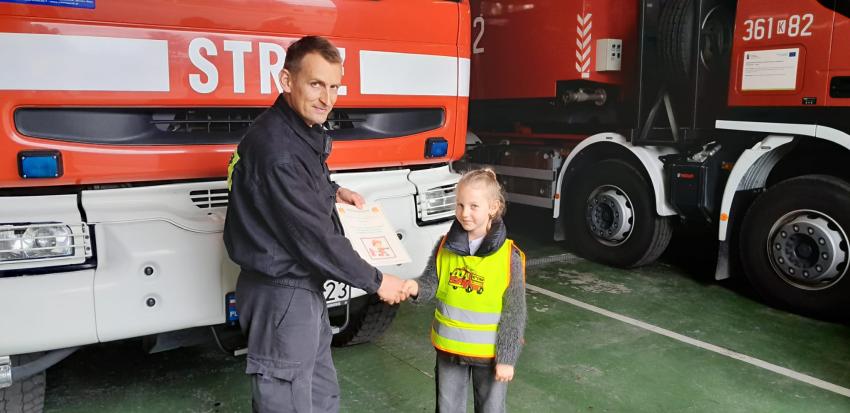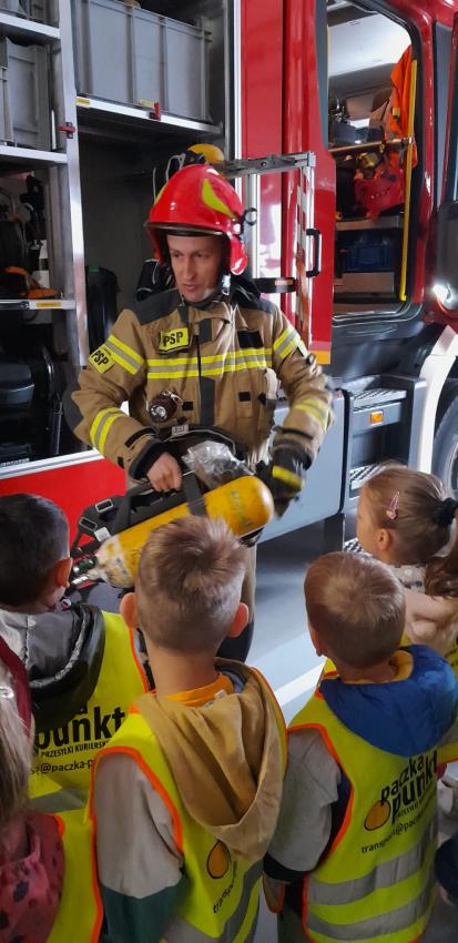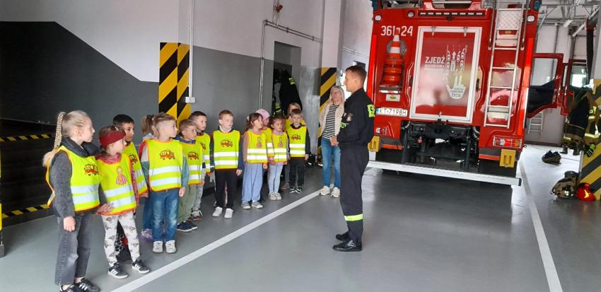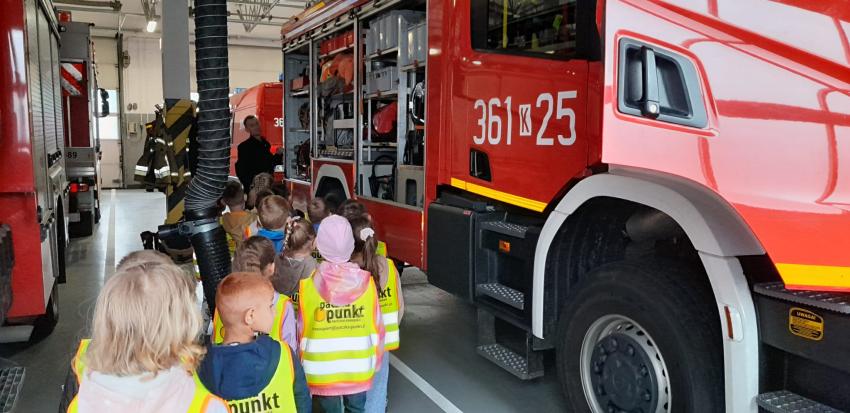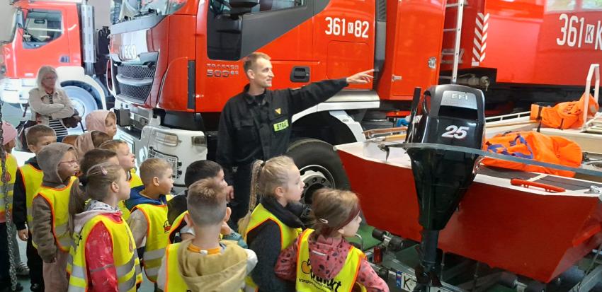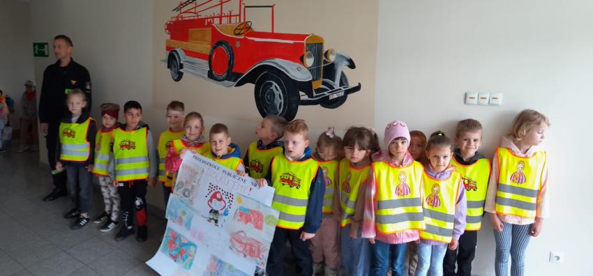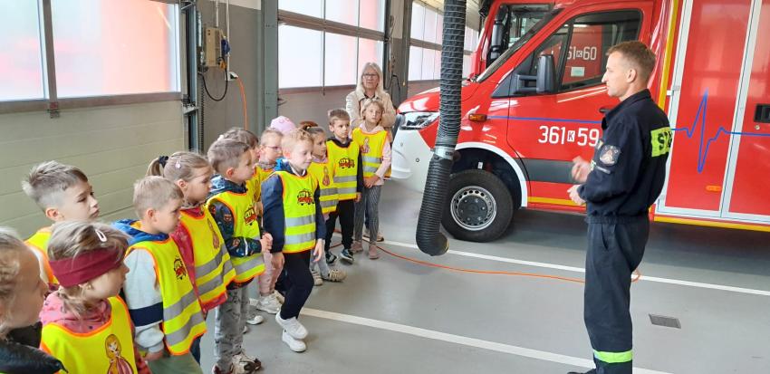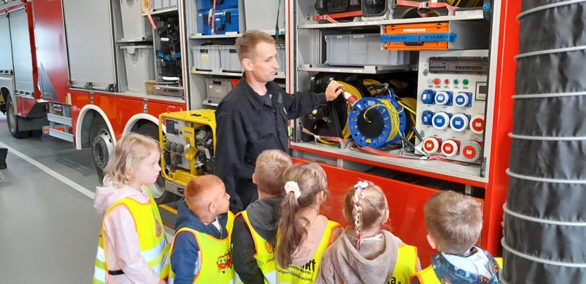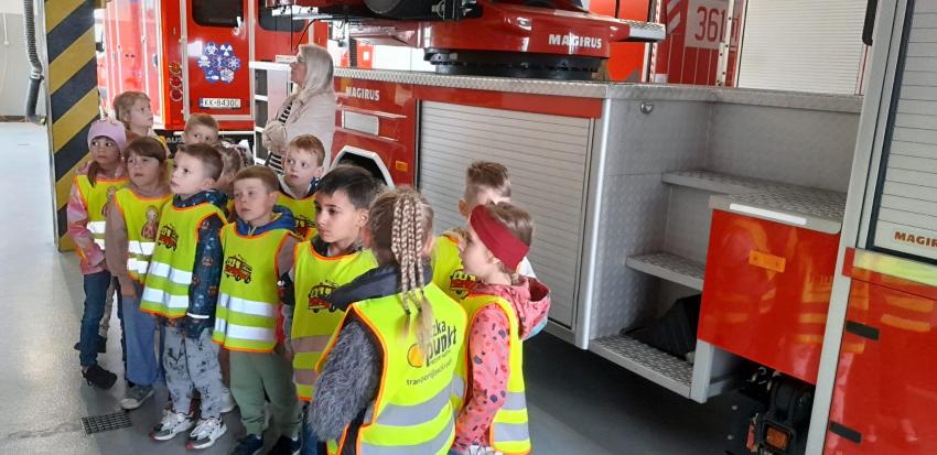 Dnia 27.05 dzieci z oddziału lll ,,Żyrafy" wybrały się na wycieczkę do Straży Pożarnej. Dzięki życzliwości Panów Strażaków przedszkolaki mogły z bliska obejrzeć samochody i sprzęt pożarniczy. W trakcie rozmowy ze strażakiem dowiedziały się dużo o trudnej, odpowiedzialnej i niebezpiecznej pracy strażaków. Z wycieczki przedszkolaki wróciły pełne niezapomnianych wrażeń wspomnień.