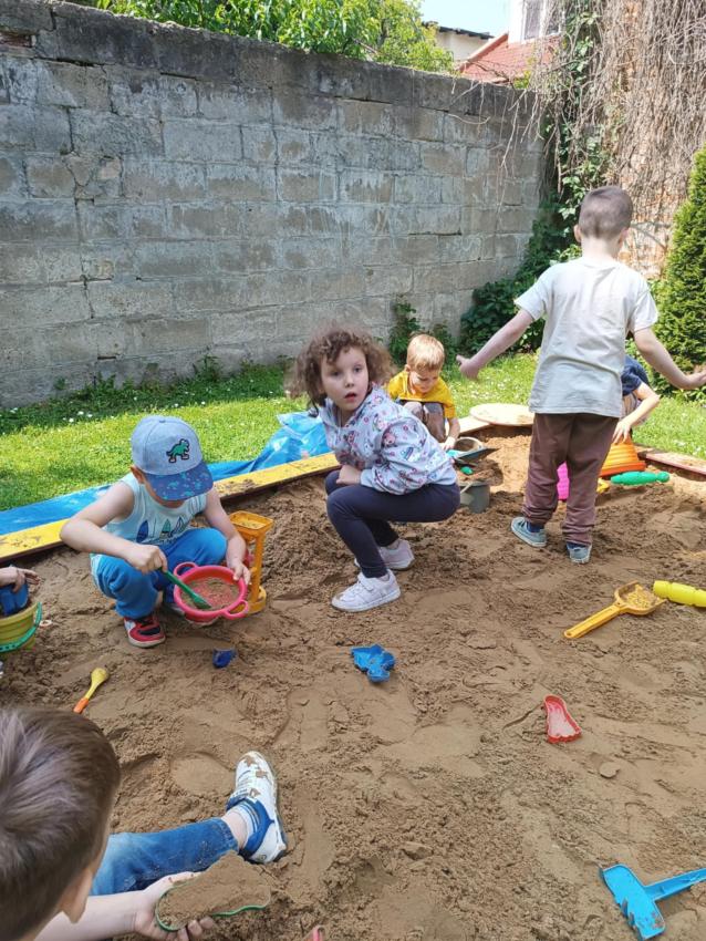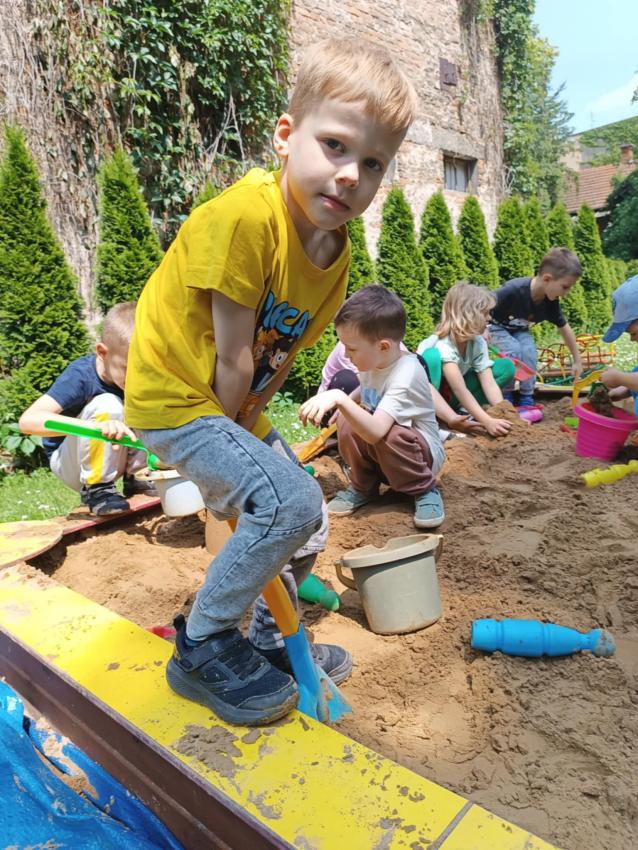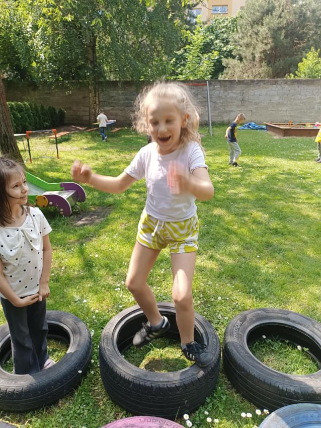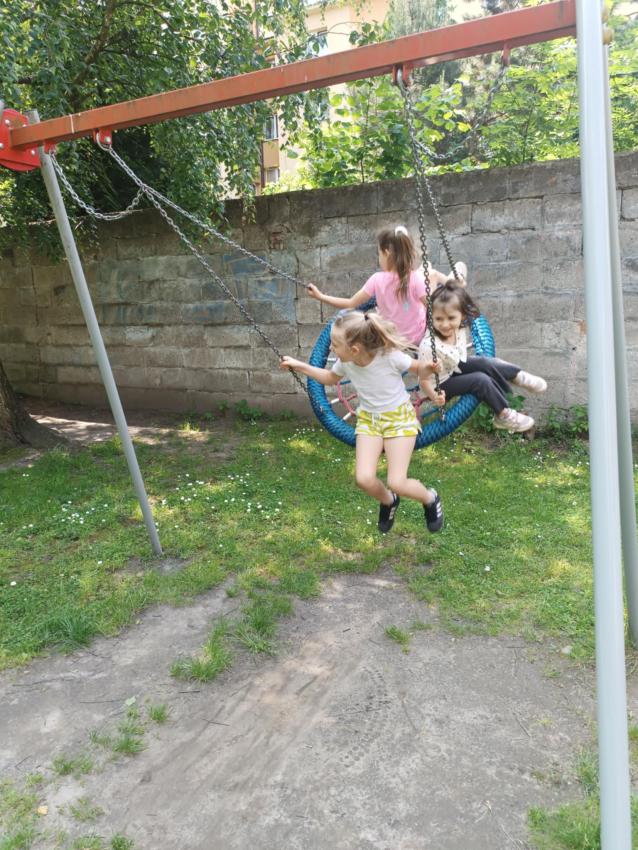 Popołudniowe zabawy w ogrodzie przedszkolnym najstarszej grupy,,Żyrafek".