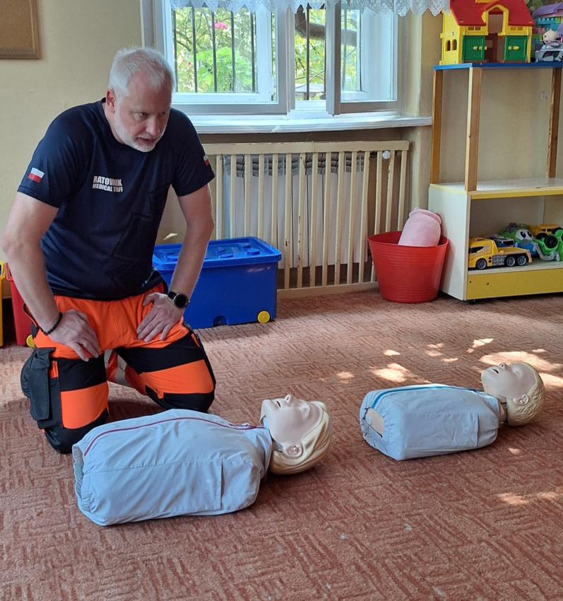 Realizując zadania z zakresu Standardów Ochrony Małoletnich dzieci z naszego przedszkola uczestniczyły w warsztatach " Pierwsza pomoc". Przedszkolaki zdobyły wiedzę teoretyczną oraz umiejętności praktyczne przekazane im przez ratownika medycznego stowarzyszenia Malta Służba Medyczna. Dzieci wiedzą, że należy dokonać oceny sytuacji i bezpieczeństwa, zapoznały się z ułożeniem poszkodowanego w pozycji bocznej bezpiecznej, zasadami resuscytacji, jak radzić sobie z krwotokiem z nosa. Utrwaliliśmy sobie numery alarmowe 999 i 112. Mamy nadzieję, że nasze działania zaowocują w przyszłości.