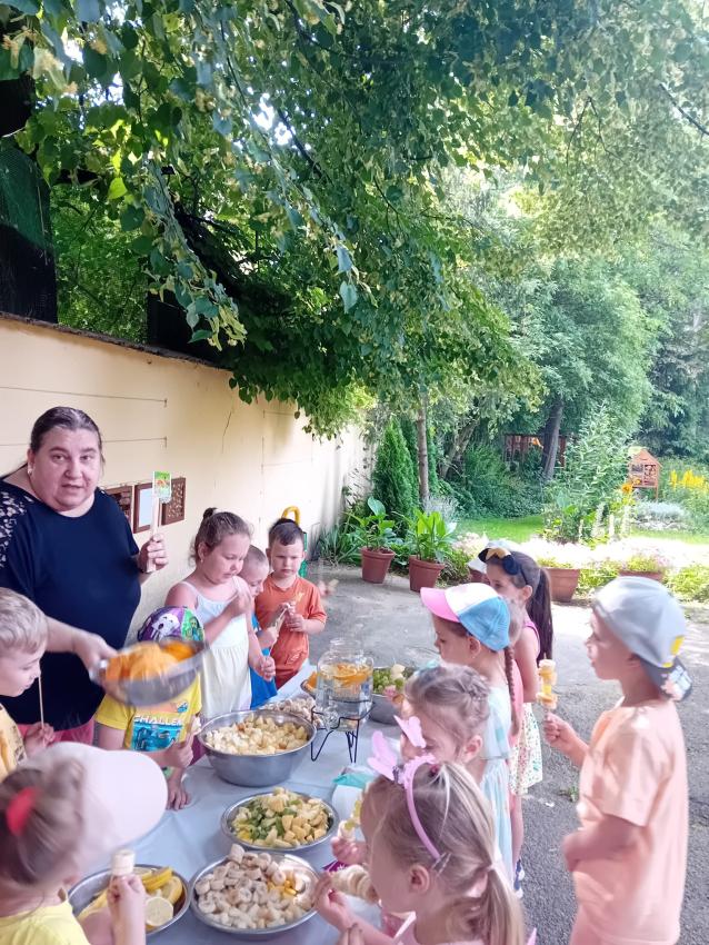 W dniu dzisiejszym przedszkolaki powitały LATO wierszem, piosenką i wspólną zabawą w ogrodzie przedszkolnym. Podchody, zabawy konstrukcyjne w piaskownicy, zabawy plastyczne towarzyszyły dzieciom tego dnia. Wykonały one owocowe szaszłyki oraz przepyszną, orzeźwiającą owocową lemoniadę z miętą. To był wspaniały dzień.