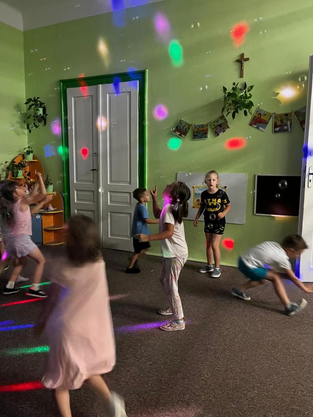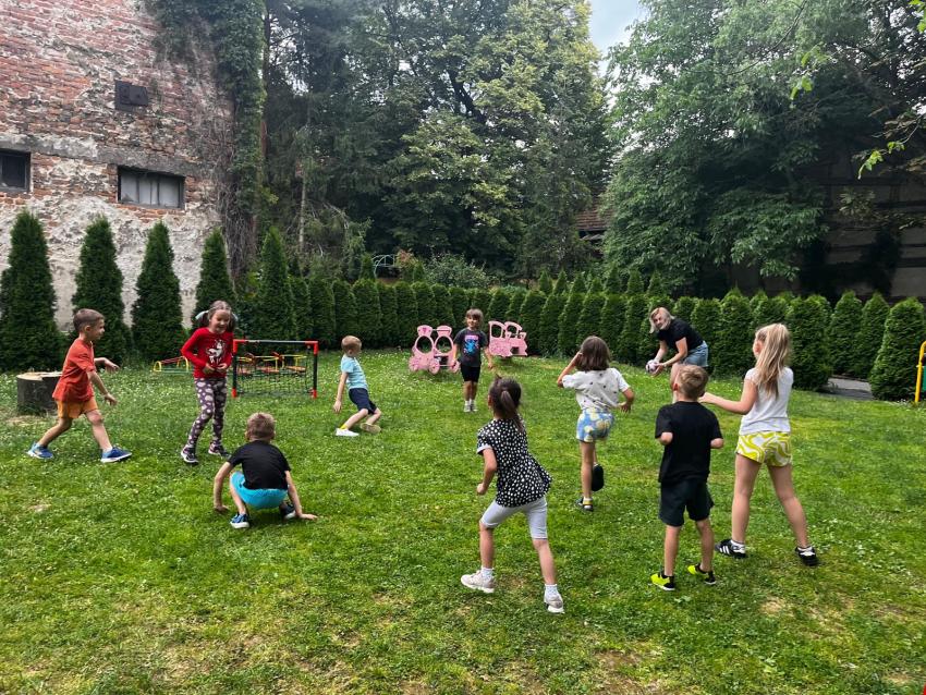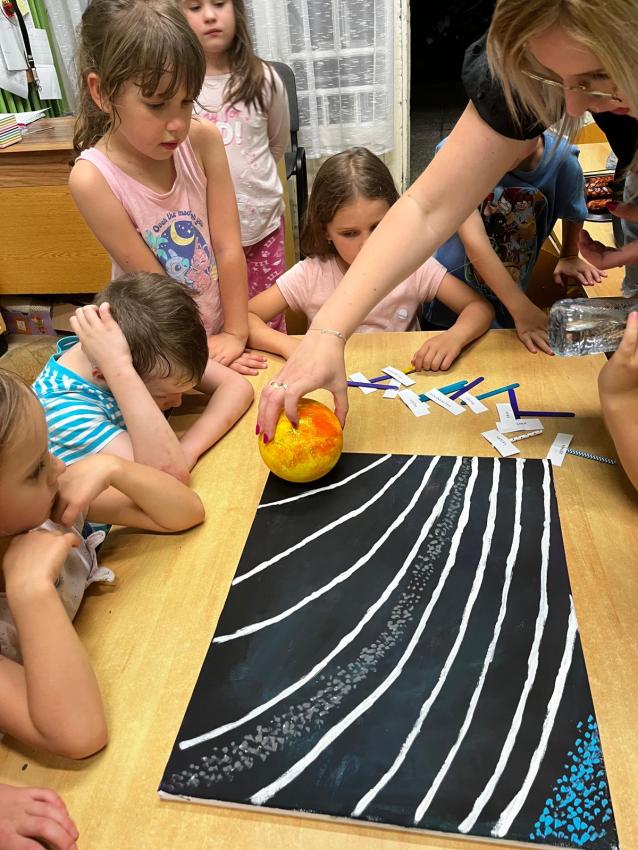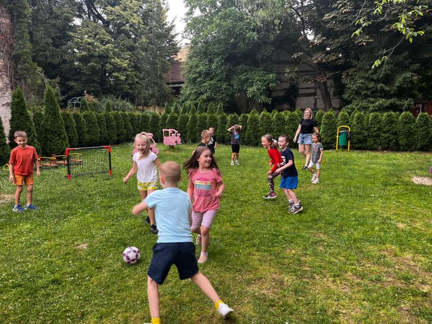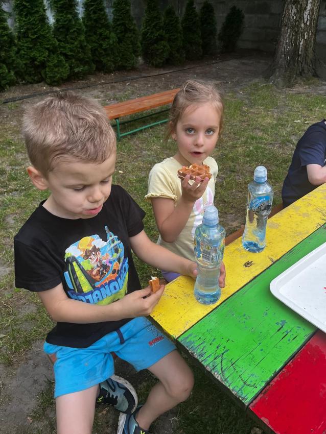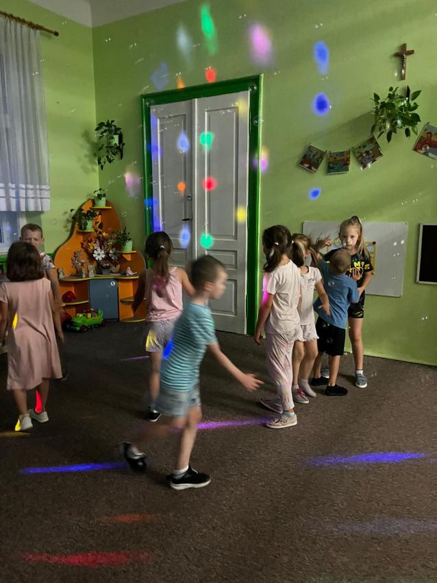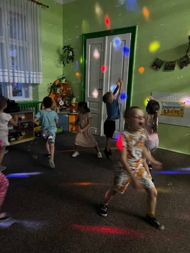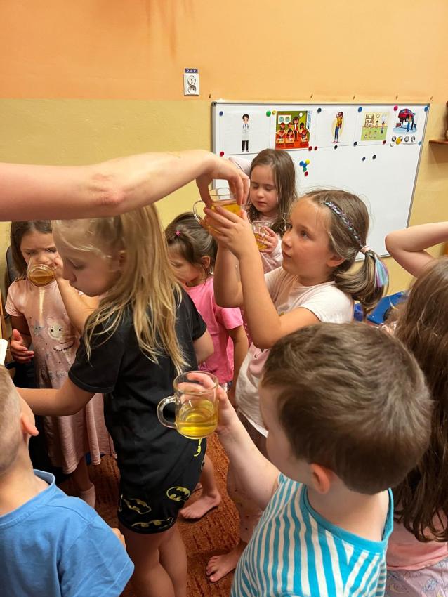 Ostatnie dni w przedszkolu, najstarszej grupy wiekowej, to niezwykły czas. Dla naszych najstarszych przedszkolaków została zorganizowana tzw. nocka w przedszkolu. Przedszkolaki złożyły przysięgę okrutnej zabawy. Dla niektórych była to pierwsza noc bez mamy, taty i bliskich, ale za to z kolegami, koleżankami i paniami z grupy przedszkolnej. Cała przygoda rozpoczęła się o godzinie 18.00 i trwała do 9.00 rano następnego dnia. Dzieci miały stroje sportowe w tym dniu i przyszły zaopatrzone w śpiwory, poduszeczki, piżamy i przytulanki. Była zumba w ogrodzie, kiełbaski z grilla, pyszne gofry, gry i zabawy sportowe, pokaz baniek mydlanych, dyskoteka w piżamkach, wykonanie pracy plastycznej przestrzennej ?układ słoneczny? oraz seans w przedszkolnym kinie. Oj działo się działo