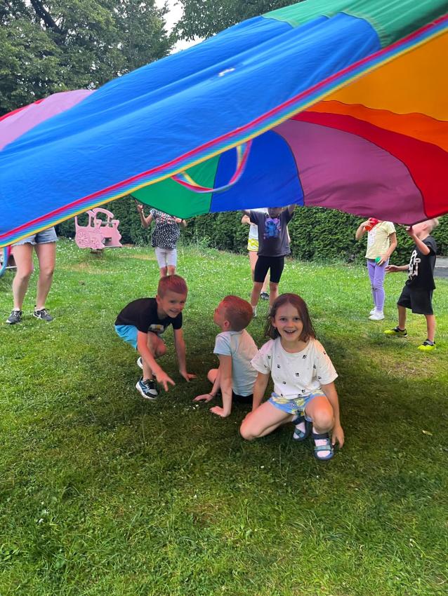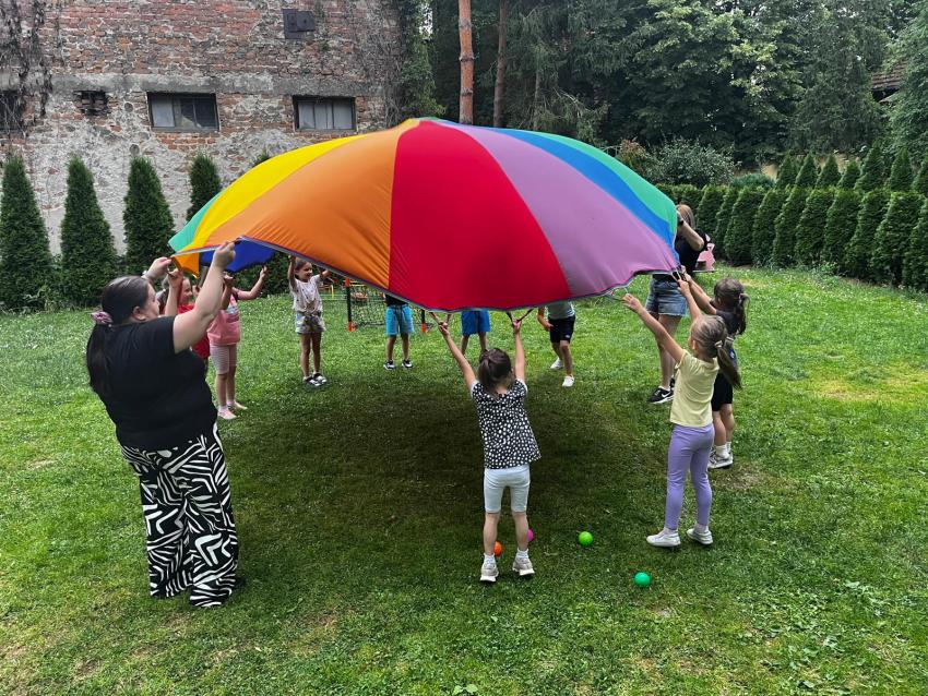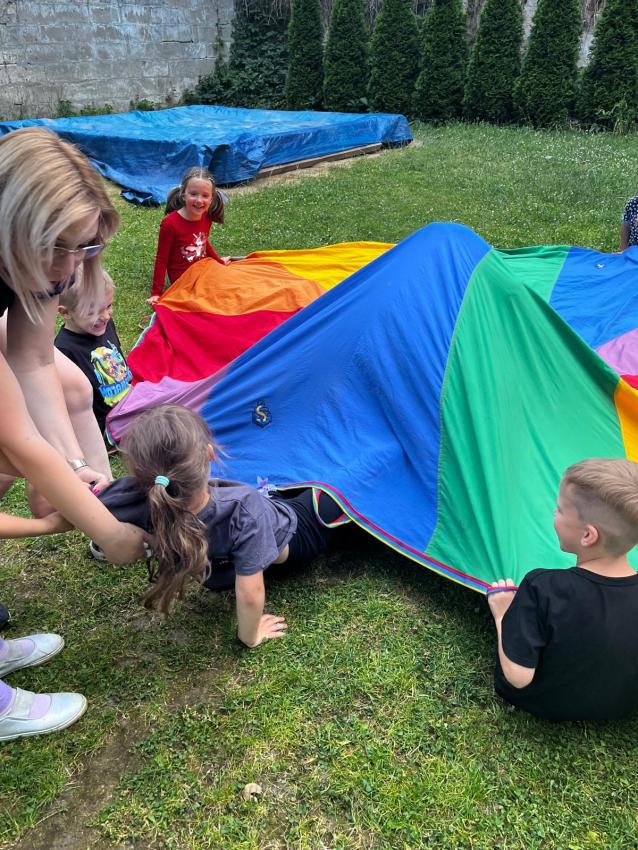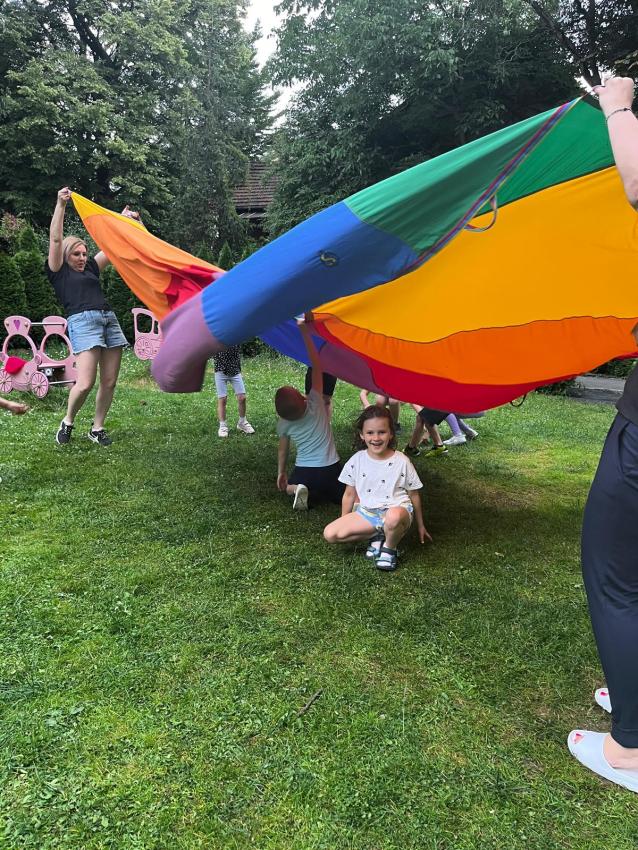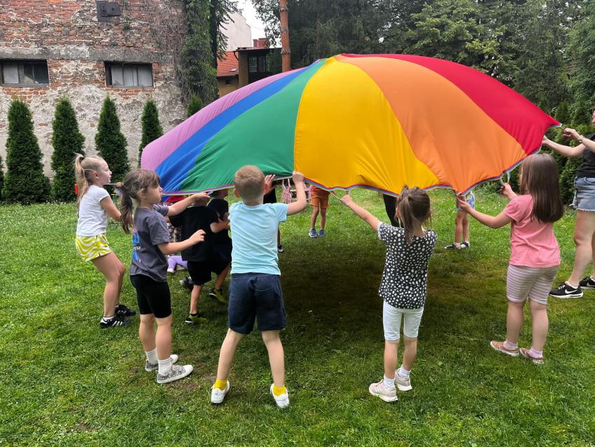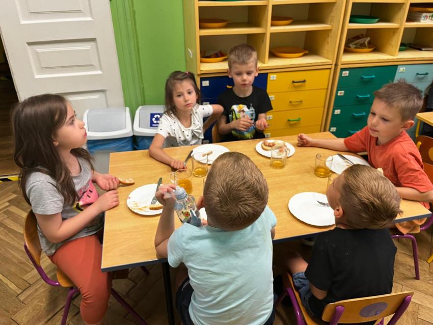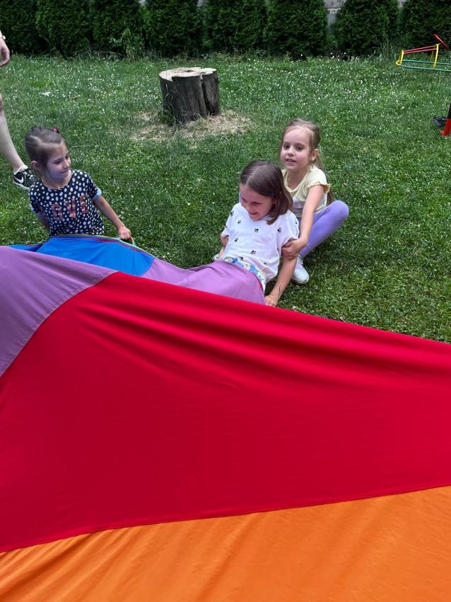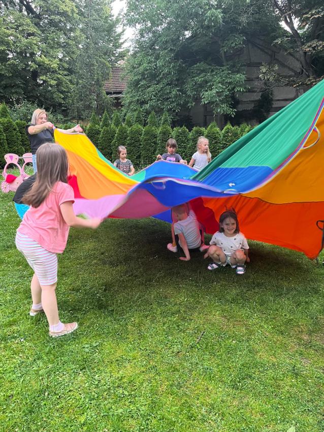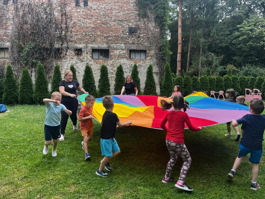 Ostatnie dni w przedszkolu, najstarszej grupy wiekowej, to niezwykły czas. Dla naszych najstarszych przedszkolaków została zorganizowana tzw. nocka w przedszkolu. Przedszkolaki złożyły przysięgę okrutnej zabawy. Dla niektórych była to pierwsza noc bez mamy, taty i bliskich, ale za to z kolegami, koleżankami i paniami z grupy przedszkolnej. Cała przygoda rozpoczęła się o godzinie 18.00 i trwała do 9.00 rano następnego dnia. Dzieci miały stroje sportowe w tym dniu i przyszły zaopatrzone w śpiwory, poduszeczki, piżamy i przytulanki. Była zumba w ogrodzie, kiełbaski z grilla, pyszne gofry, gry i zabawy sportowe, pokaz baniek mydlanych, dyskoteka w piżamkach, wykonanie pracy plastycznej przestrzennej ?układ słoneczny? oraz seans w przedszkolnym kinie. Oj działo się działo