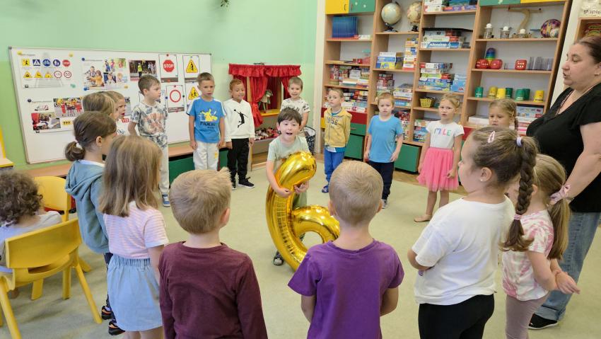 W miesiącu wrześniu urodziny w grupie Żyrafek obchodzi nasz kolega Adaś. Składamy mu najserdeczniejsze życzenia, spełnienia dziecięcych marzeń. Koledzy i koleżanki dziękują za słodką niespodziankę. Sto lat dla Adasia!