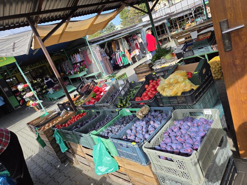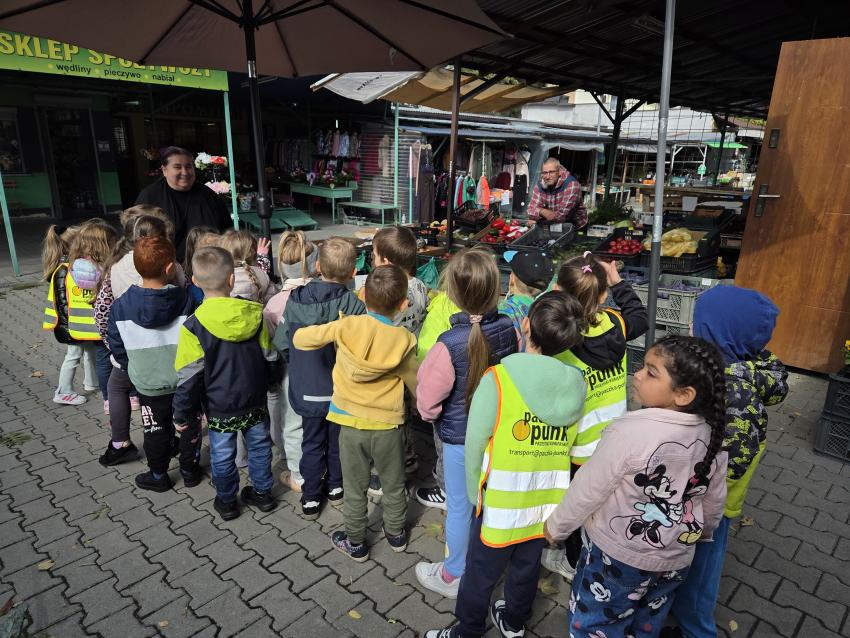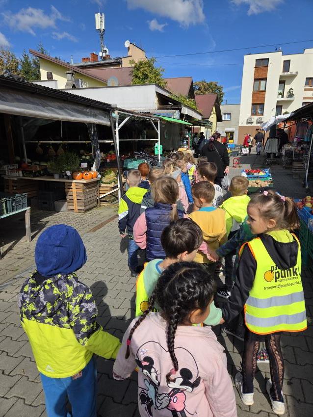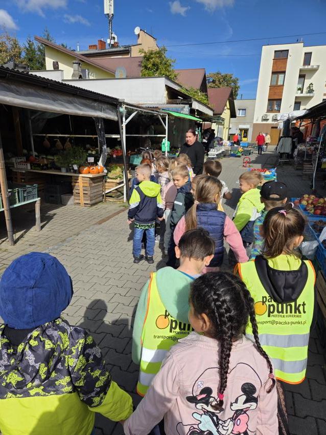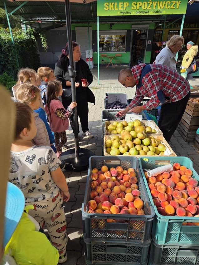 25.09.2025 dzieci z oddziału Żyrafki udały się na plac targowy. Podczas wycieczki przedszkolaki utrwaliły wiadomości zdobyte w przedszkolu, oglądały różne gatunki owoców i warzyw , porównywały ich wygląd, rozpoznawały i nazywały poszczególne owoce i warzywa.Dzieci przypomniały sobie o ich wartościach odżywczych niezbędnych dla funkcjonowania organizmu. Na koniec otrzymaliśmy od sprzedawcy słodkie śliweczki, które dzieci w przedszkolu zjadły z apetytem.