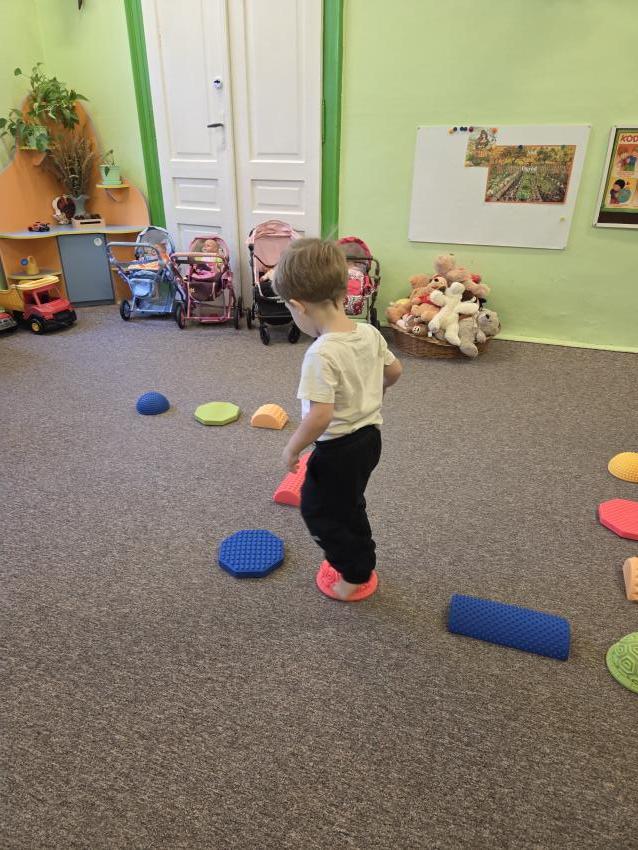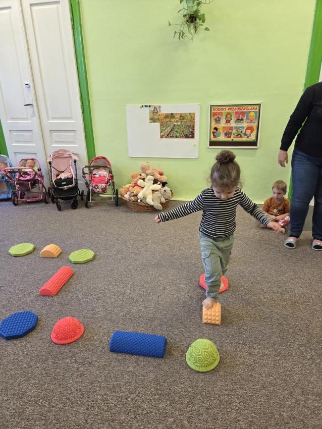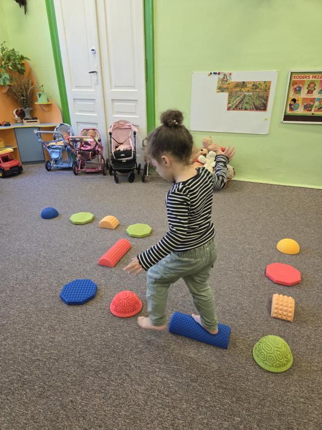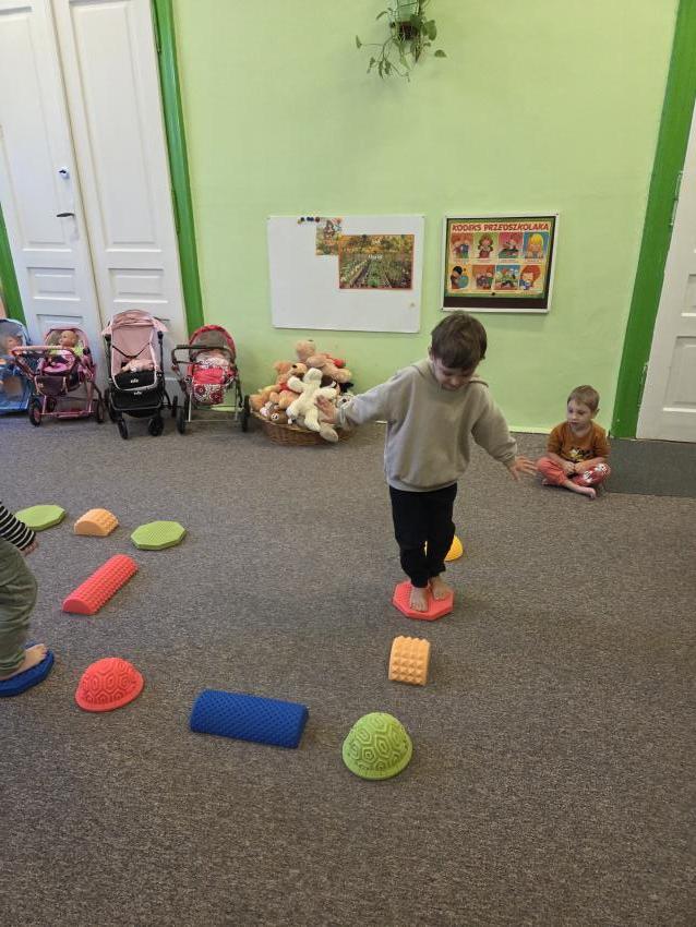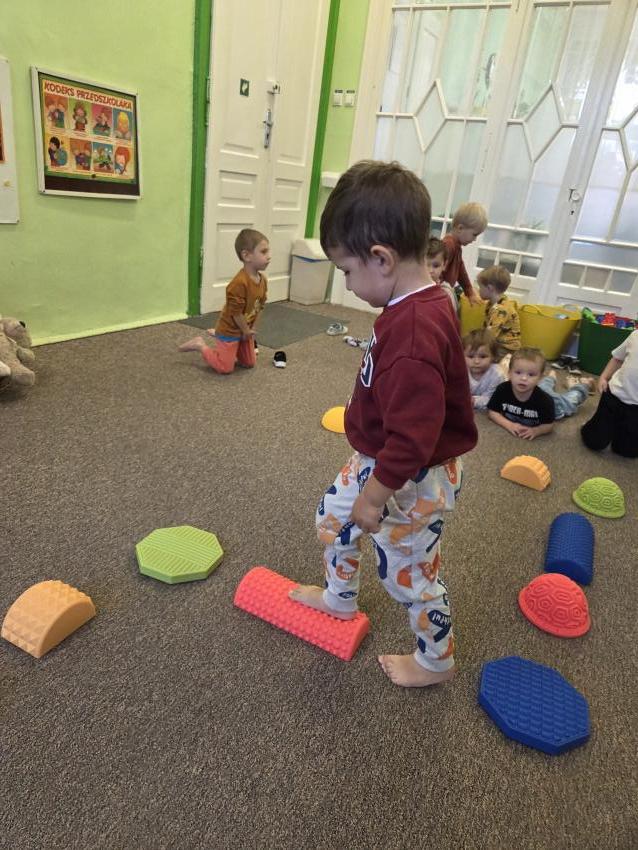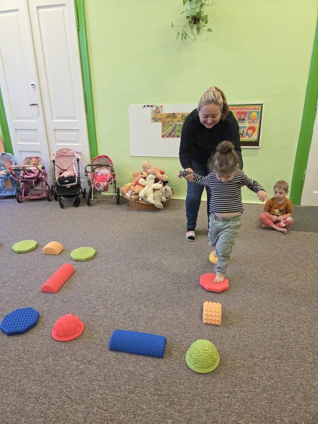Zajęcia z wykorzystaniem ścieżki sensorycznej. Celem zajęć z wykorzystaniem ścieżki sensorycznej jest wspieranie rozwoju dzieci poprzez stymulację zmysłów, rozwijanie świadomości ciała i otoczenia, poprawę koordynacji ruchowej, równowagi oraz integracji sensorycznej, a także umożliwienie nauki poprzez zabawę, eksplorację różnych faktur i kolorów.
