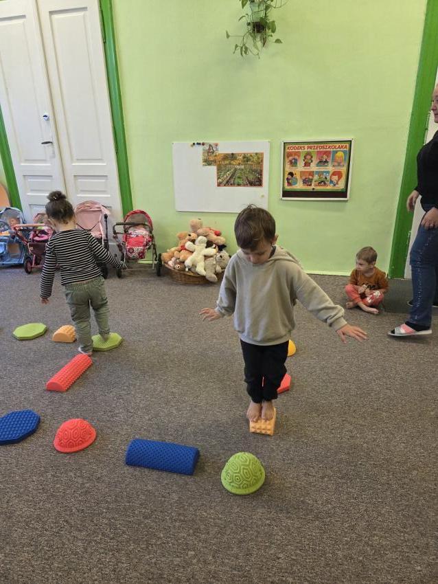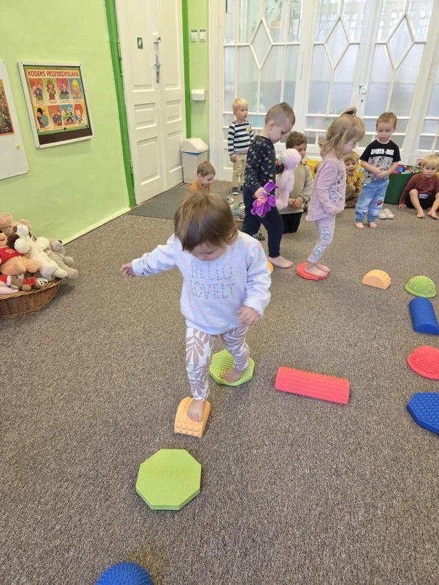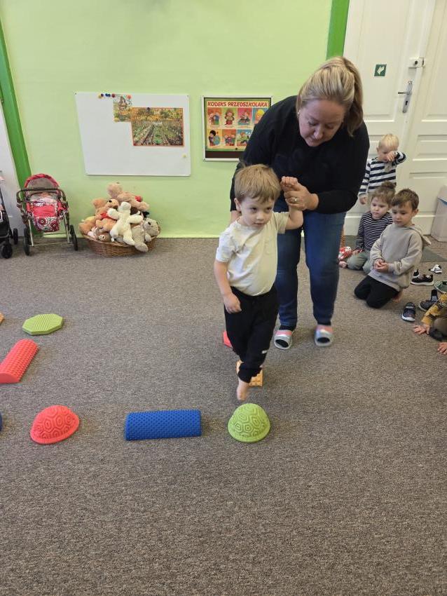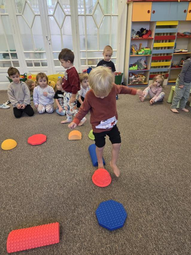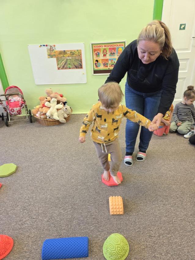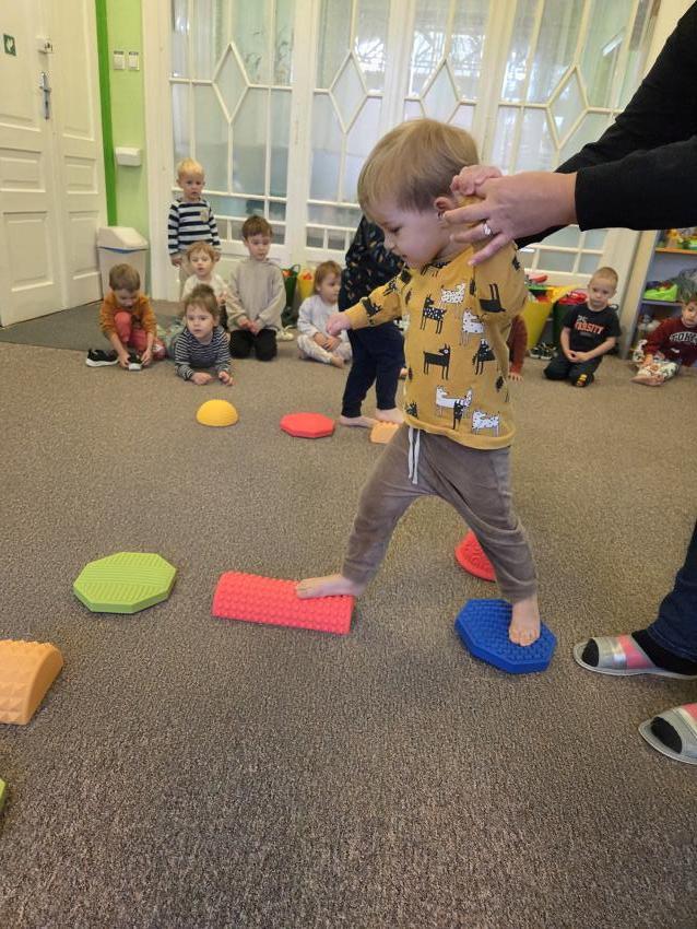 Zajęcia z wykorzystaniem ścieżki sensorycznej. Celem zajęć z wykorzystaniem ścieżki sensorycznej jest wspieranie rozwoju dzieci poprzez stymulację zmysłów, rozwijanie świadomości ciała i otoczenia, poprawę koordynacji ruchowej, równowagi oraz integracji sensorycznej, a także umożliwienie nauki poprzez zabawę, eksplorację różnych faktur i kolorów.