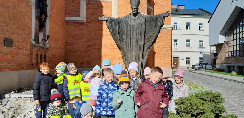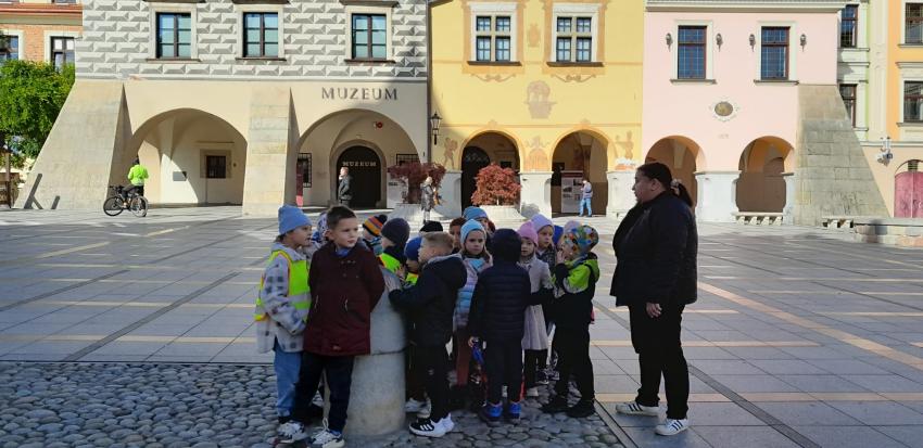 W dniu dzisiejszym w ramach realizacji zamierzeń programu własnego "Przedszkolak mały obywatel i patriota" przedszkolaki spacerowały ulicami starego miasta. Dzieci z oddziału III podziwiały renesansowe kamieniczki mieszczące się w samym sercu rynku, centralnie ulokowany Ratusz z 30 metrowa wieżą i najstarszym w Polsce ręcznie nakręcanym zegarem. Odbyliśmy spacer uroczymi uliczkami mijając muzea, pasaż odkryć, Tarnowskie Centrum Informacji, Biuro Informacji Turystycznej, lokalne kawiarenki czy restauracje. Podziwialiśmy jak piękna jest nasza Mała Ojczyzna jesienią.