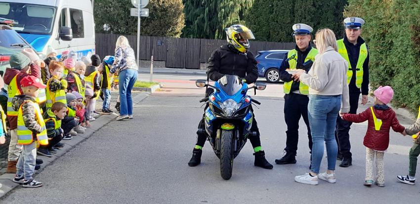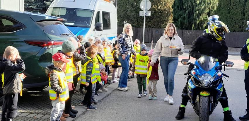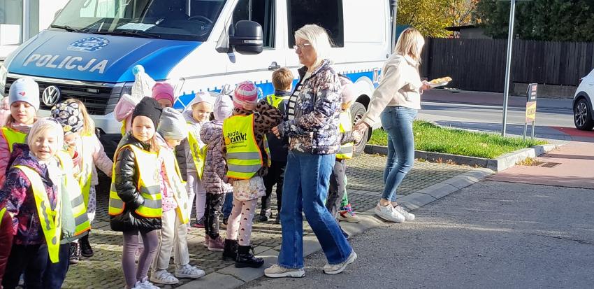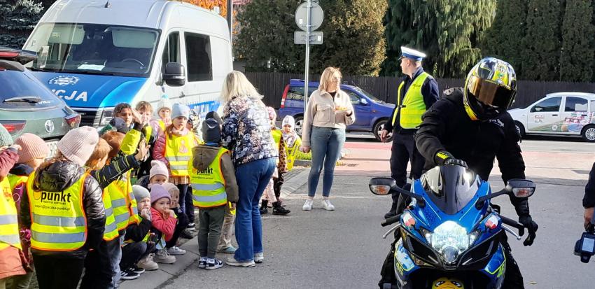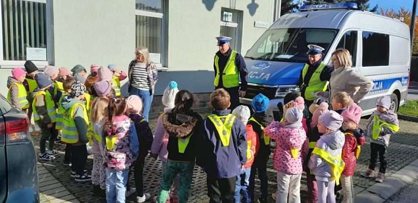 30.10 w czwartek dzieci z oddziału II i III wraz z Policjantami z Wydziału Ruchu Drogowego- Komendy Miejskiej Policji w Tarnowie uczestniczyły w działaniach edukacyjnych pod nazwą "owocowy patrol". Działania te miały na celu promowanie bezpiecznych zachowań wśród uczestników ruchu drogowego. Podczas spotkania policjanci przypomnieli dzieciom najważniejsze zasady bezpiecznego poruszania się po drogach. Dzięki takim działaniom dzieci nie tylko poszerzają swoją wiedzę o bezpieczeństwie, ale także uczą się zaufania i szacunku do służb mundurowych. Policjantom z Wydziału Ruchu Drogowego dziękujemy za poświęcony czas, cenne wskazówki oraz zaangażowanie w realizacji działań profilaktycznych na rzecz bezpieczeństwa naszych dzieci.