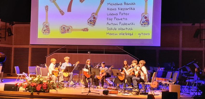 5.11.2025 Koncert w auli Zespołu Szkół Muzycznych w Tarnowie Przedszkolaki uczestniczyły w koncercie muzycznym "Muzyczna wyliczanka czyli od solisty do orkiestry". Mieliśmy przyjemność wysłuchać różnych utwór w wykonaniu uczniów i nauczycieli - solistów, zespoły i orkiestrę gitarową. Wśród wykonawców była absolwentka naszego przedszkola Amelka.