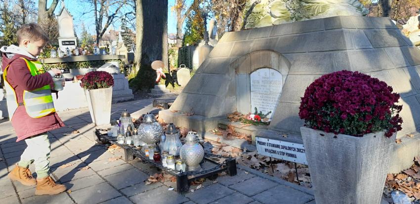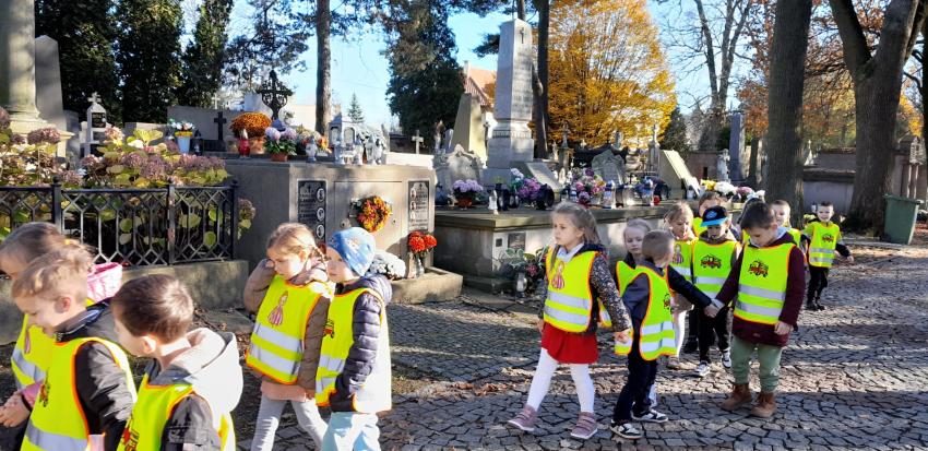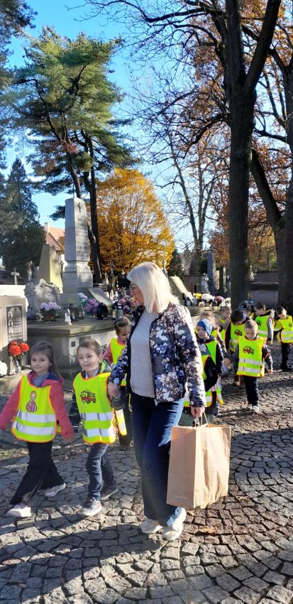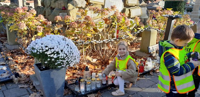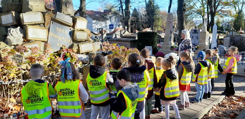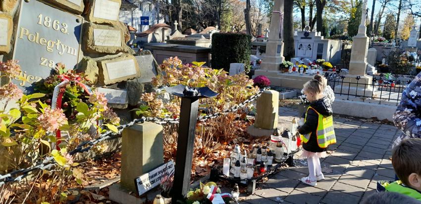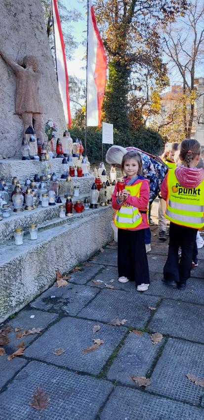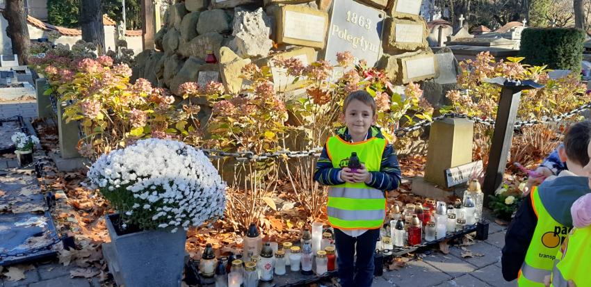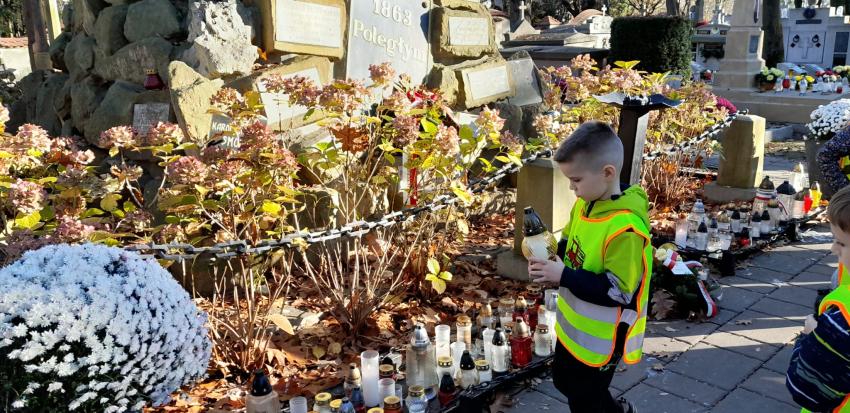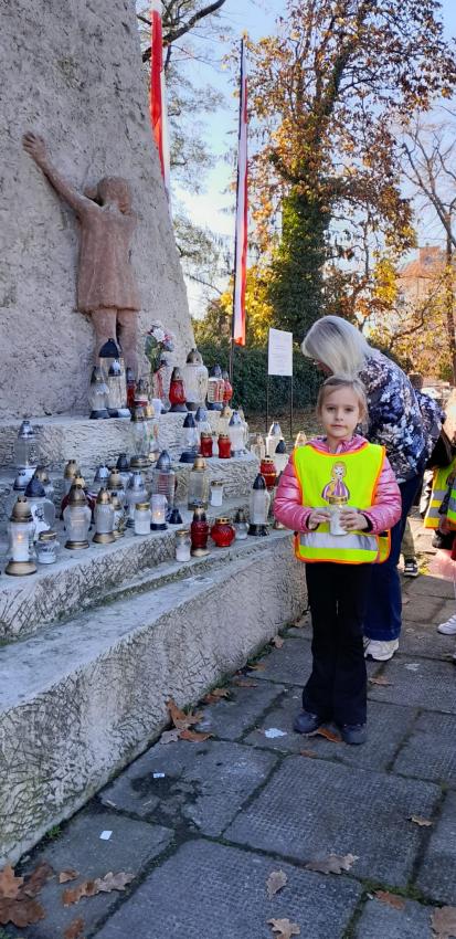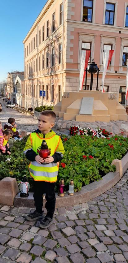Grupa ,,Żyrafek " po akademii z okazji 11 Listopada udała się na Stary Cmentarz oraz pod Grób Nieznanego Żołnierza zaświecić znicze żołnierzom poległym za naszą wolność.