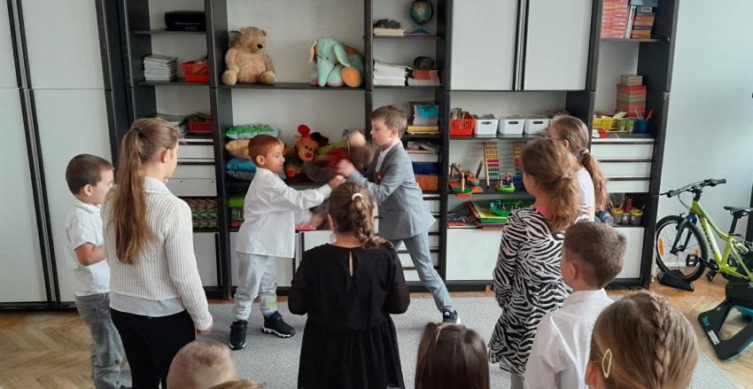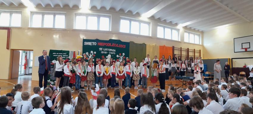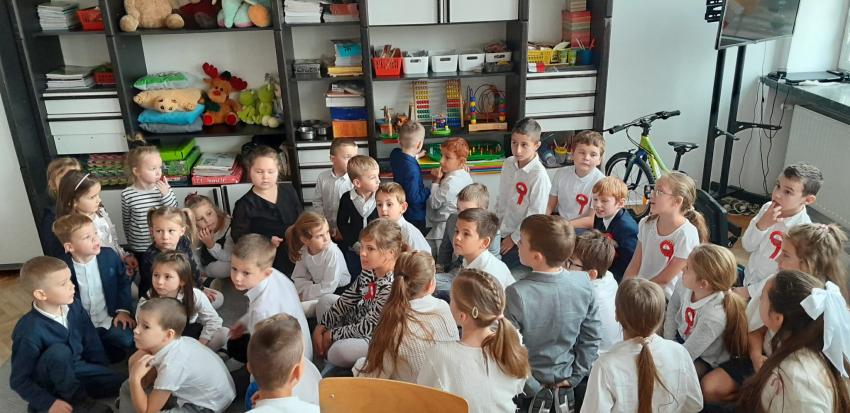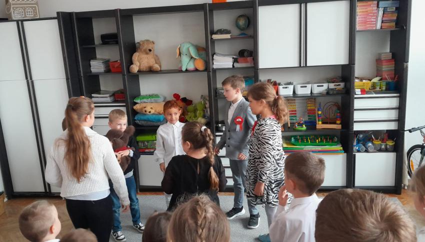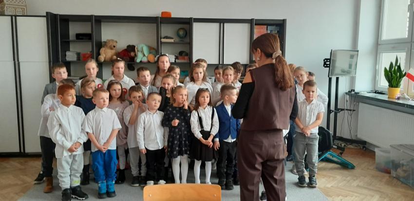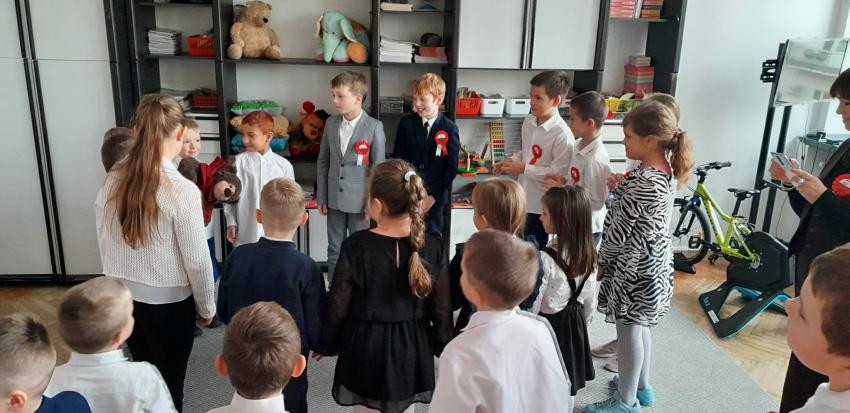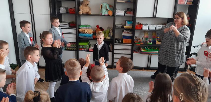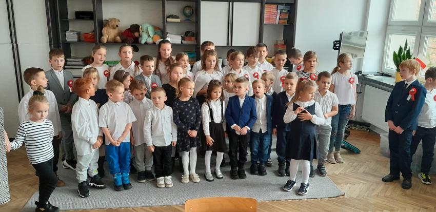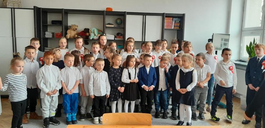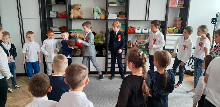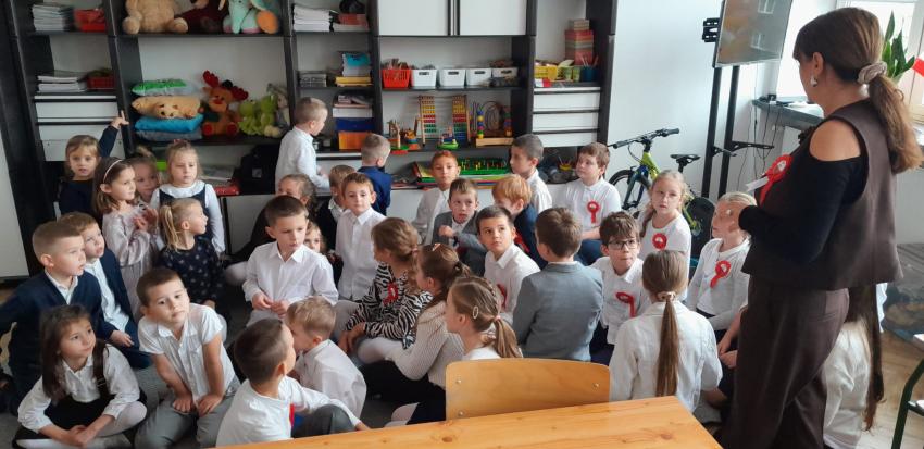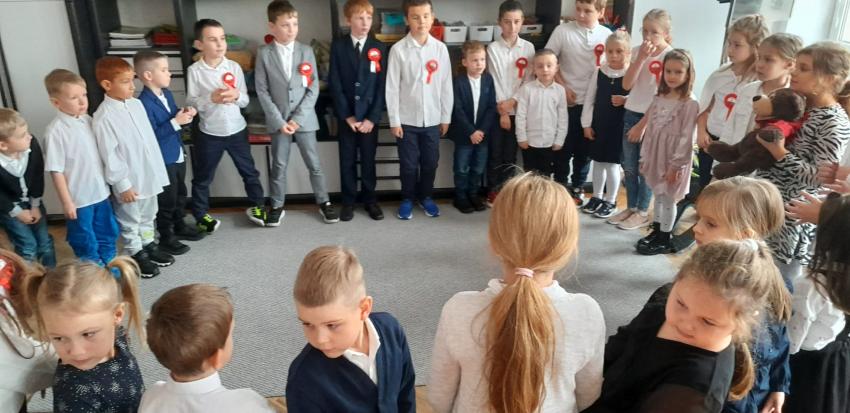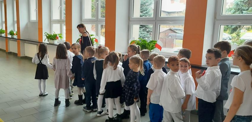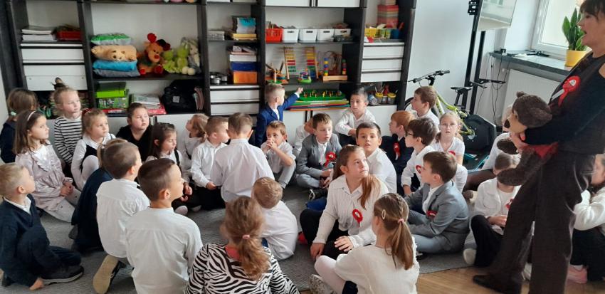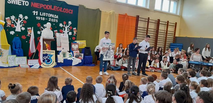 Dzieci z oddziału III Żyrafki uczestniczyły w uroczystej akademii z okazji Święta Niepodległości w Szkole Podstawowej Nr 3.